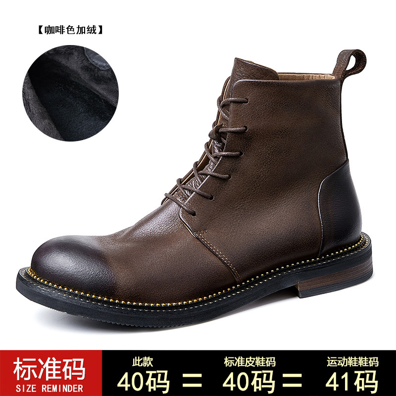 Высококачественные мужские кожаные ботинки на флисовой подкладке, британские ретро, Ботинки Martin ручной работы, мужские кожаные высокие мужские сапоги с большим носком