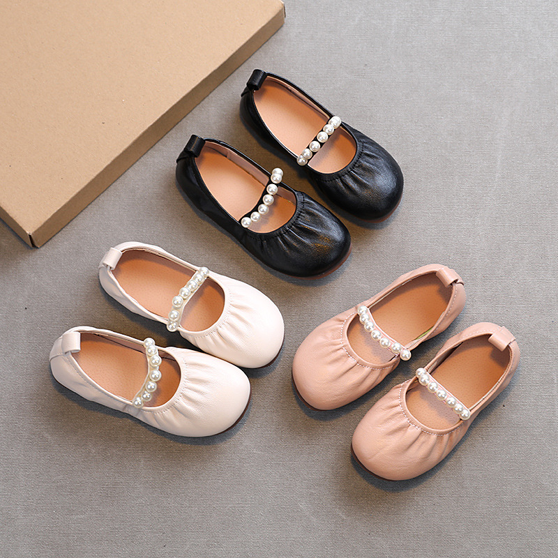 Кожаная обувь для девочек с мягкой подошвой в горох 2024 Весна и осень Новый корейский стиль, модная универсальная Однослойная обувь для девочек, детская обувь
