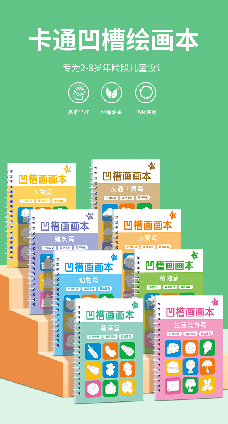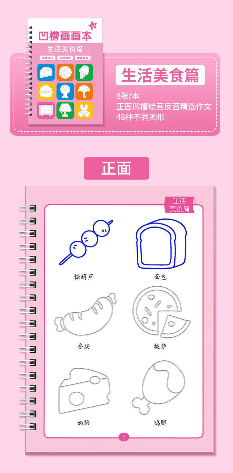 Детский детский сад, обучающий рисованию, детская книжка для рисования с канавками для детей 2–8 лет, копируйте раскрывающиеся слова, книжка для рисования с канавками, трансграничный полный набор из 5 книг для рисования с канавками, детская книжка для рисования с канавками