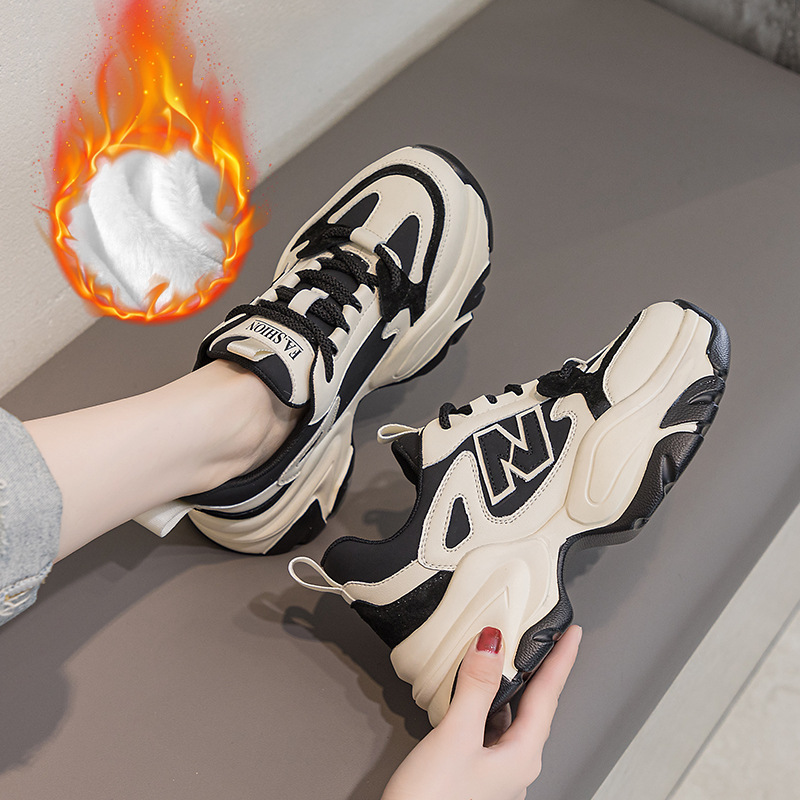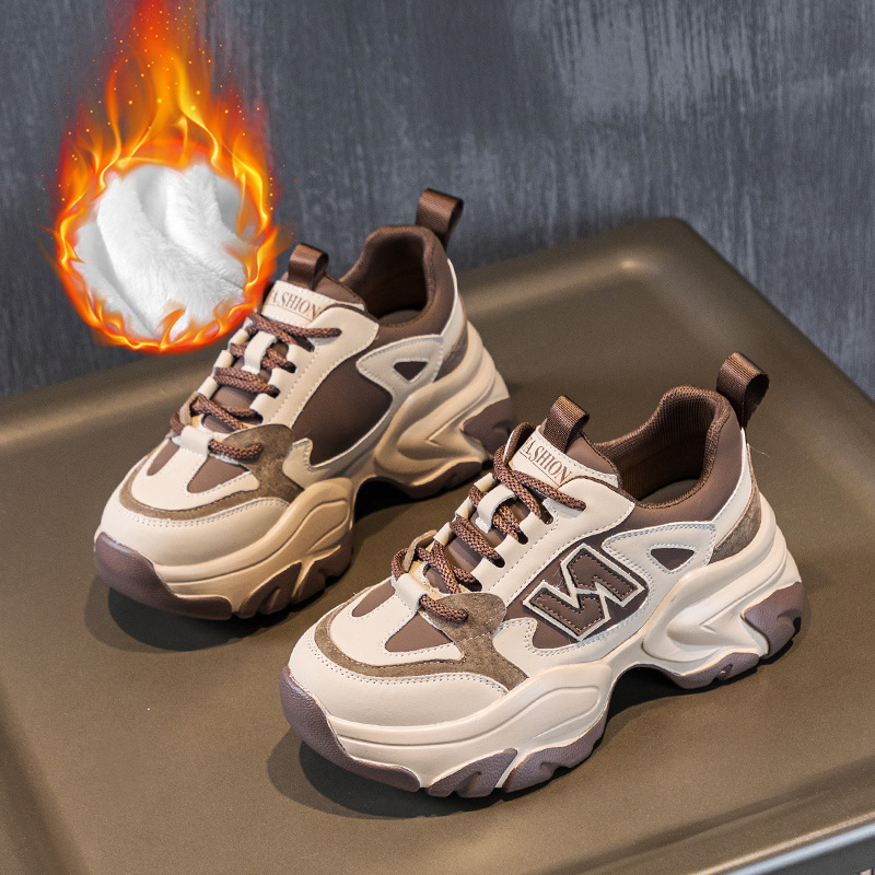 2024 осенне-зимняя новая обувь для папы на толстой подошве с флисовой подкладкой, теплая женская повседневная спортивная обувь из натуральной кожи, студенческая обувь