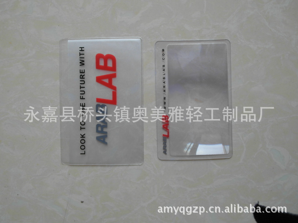本厂产生的系列PVC卡片放大镜,款式多样,可以根据客户的要求来定做各种尺寸的卡片放大镜,款式有名片放大镜、书签放大镜、阅读放大镜等等!