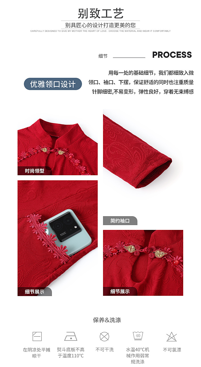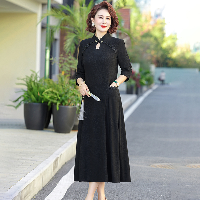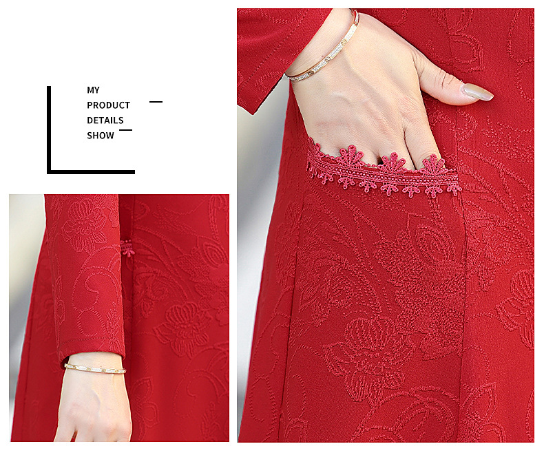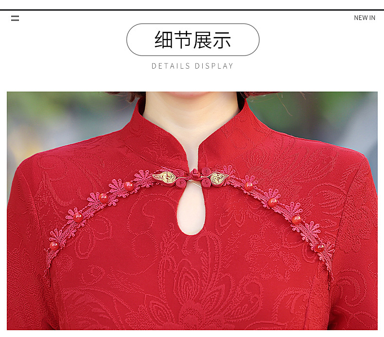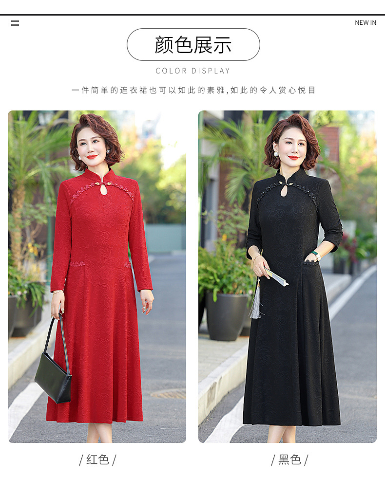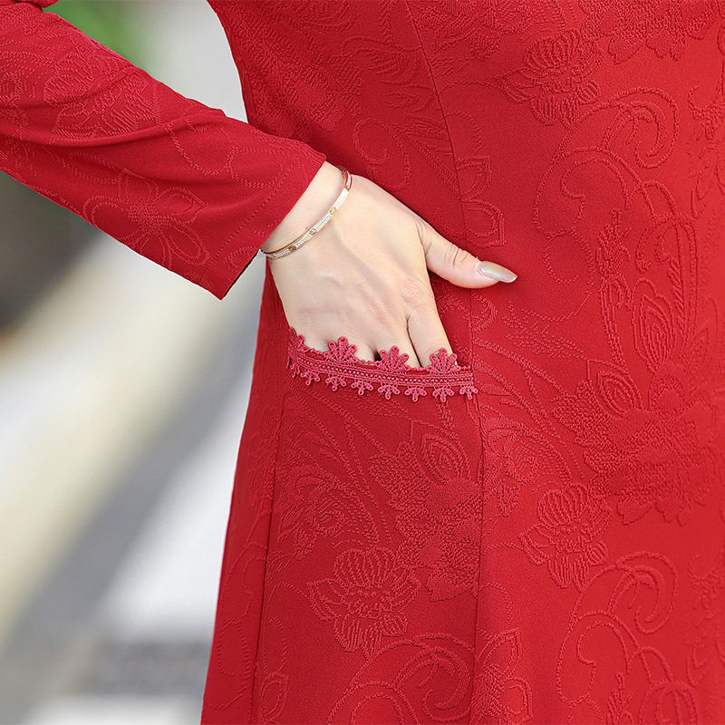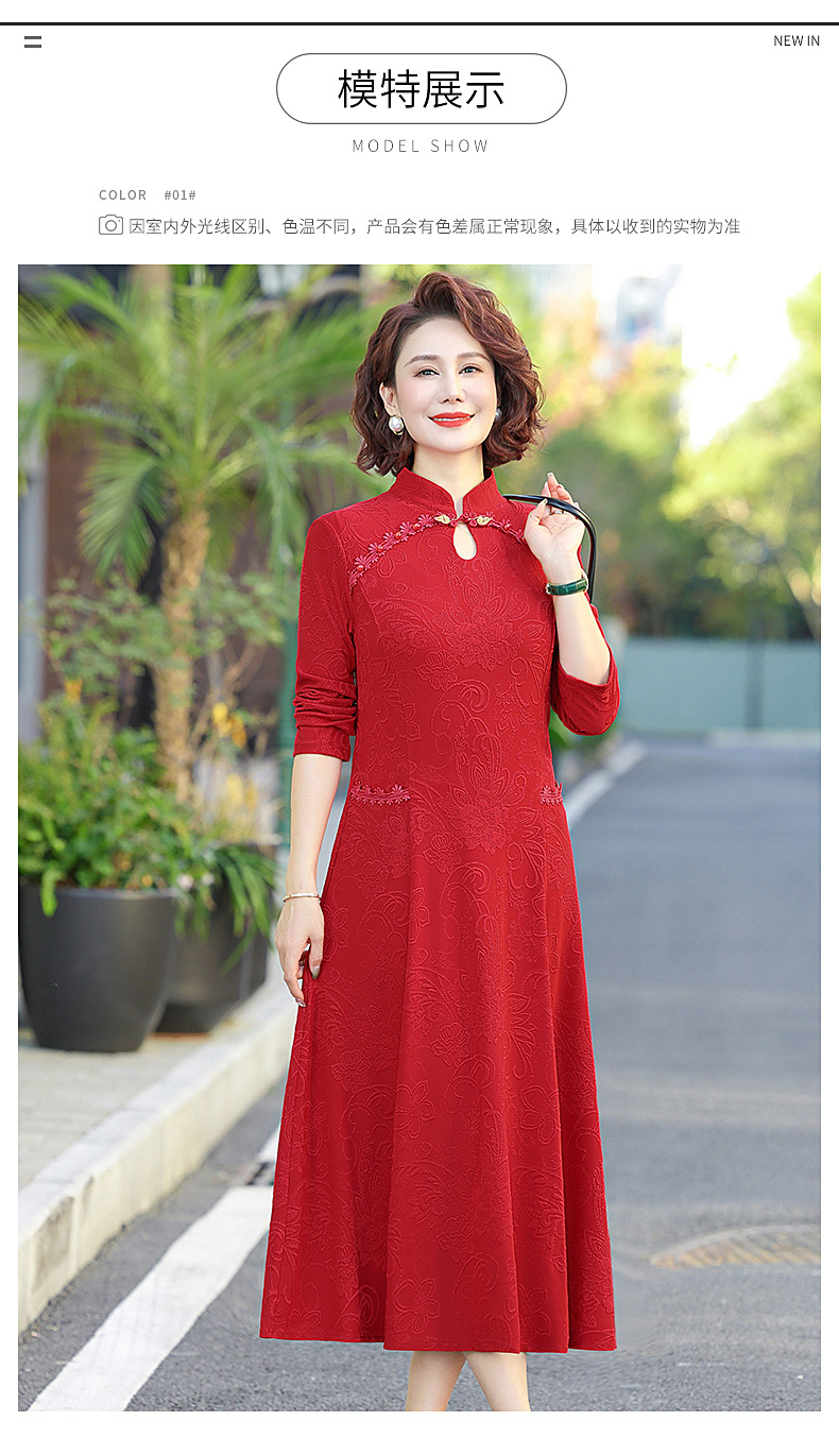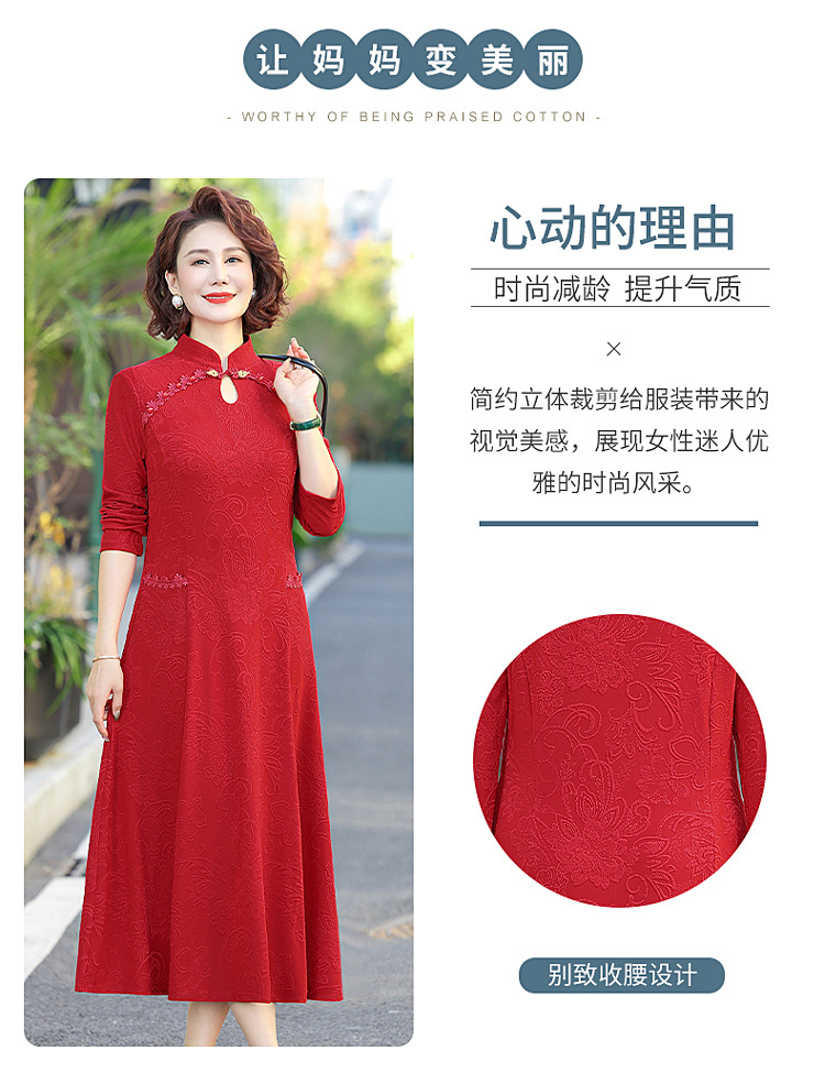 Мама среднего возраста носит весеннее Новое красное платье с длинным рукавом, улучшенное банкетное платье Cheongsam для 50-летних женщин среднего и пожилого возраста