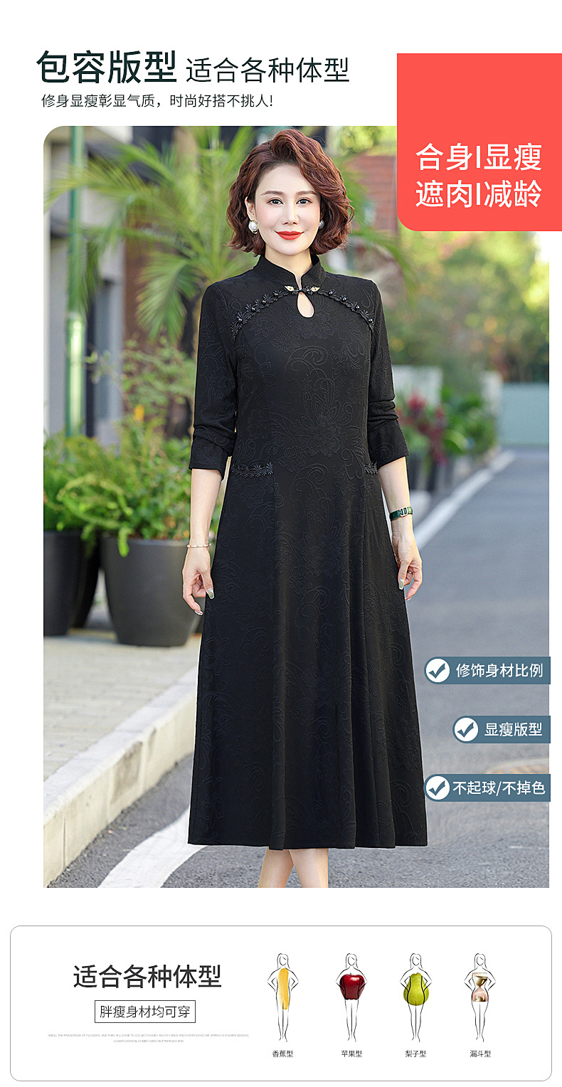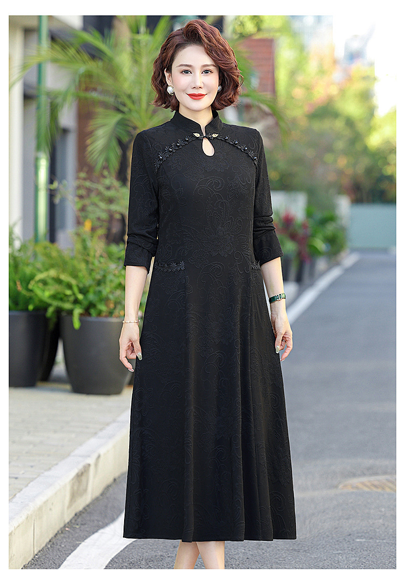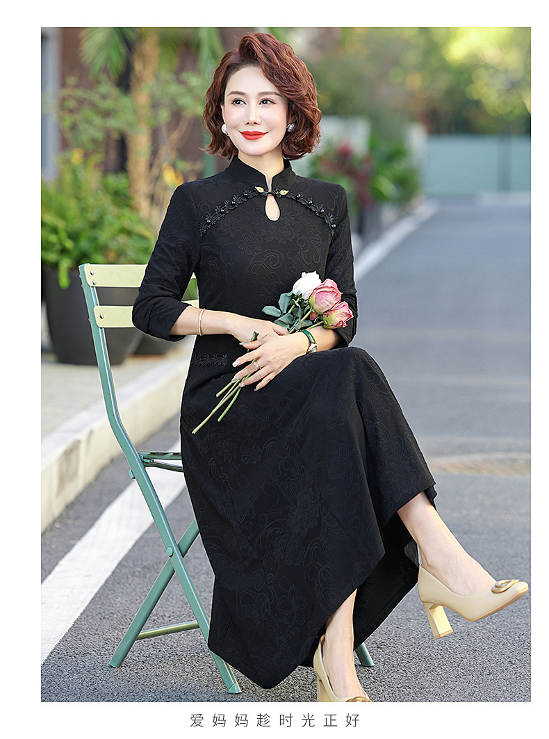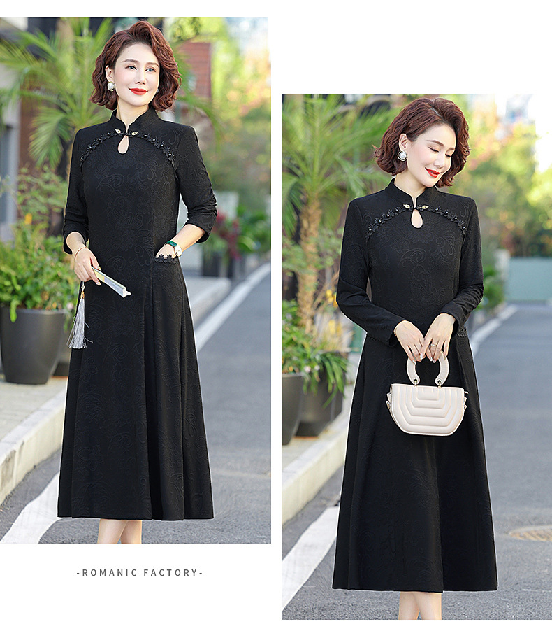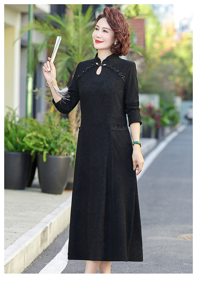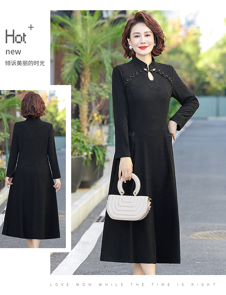 Мама среднего возраста носит весеннее Новое красное платье с длинным рукавом, улучшенное банкетное платье Cheongsam для 50-летних женщин среднего и пожилого возраста