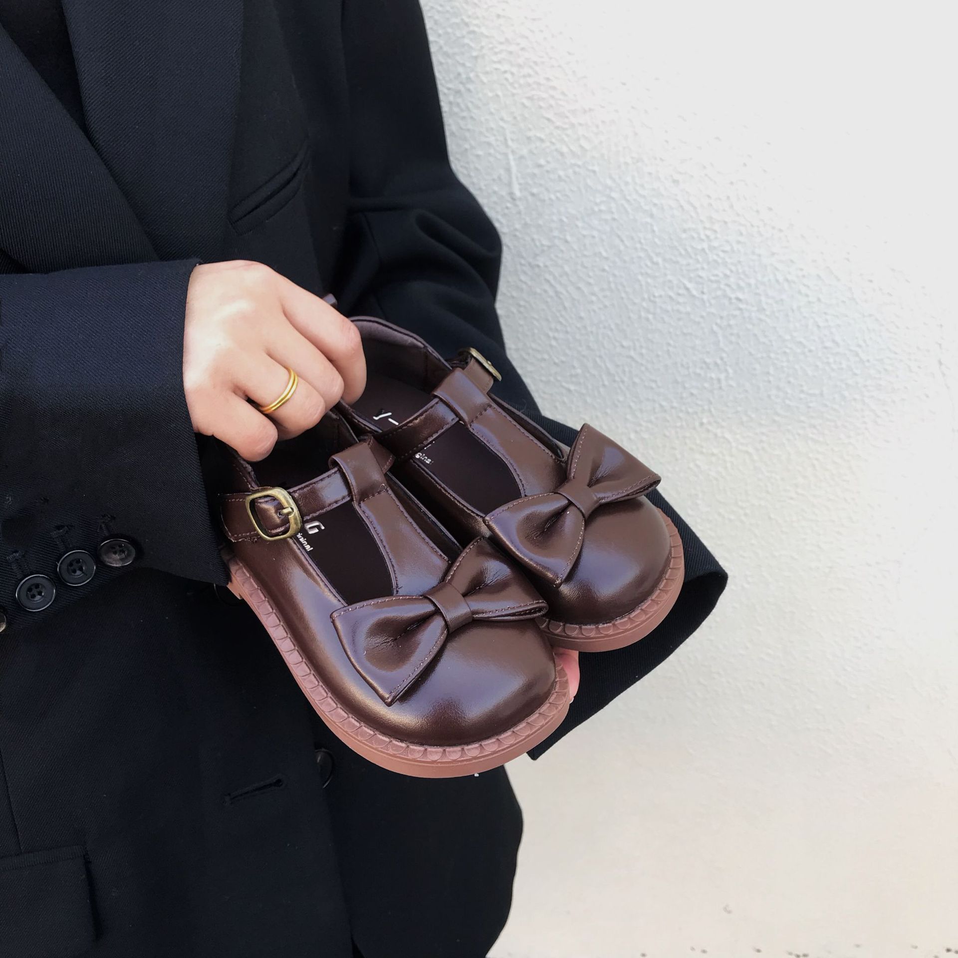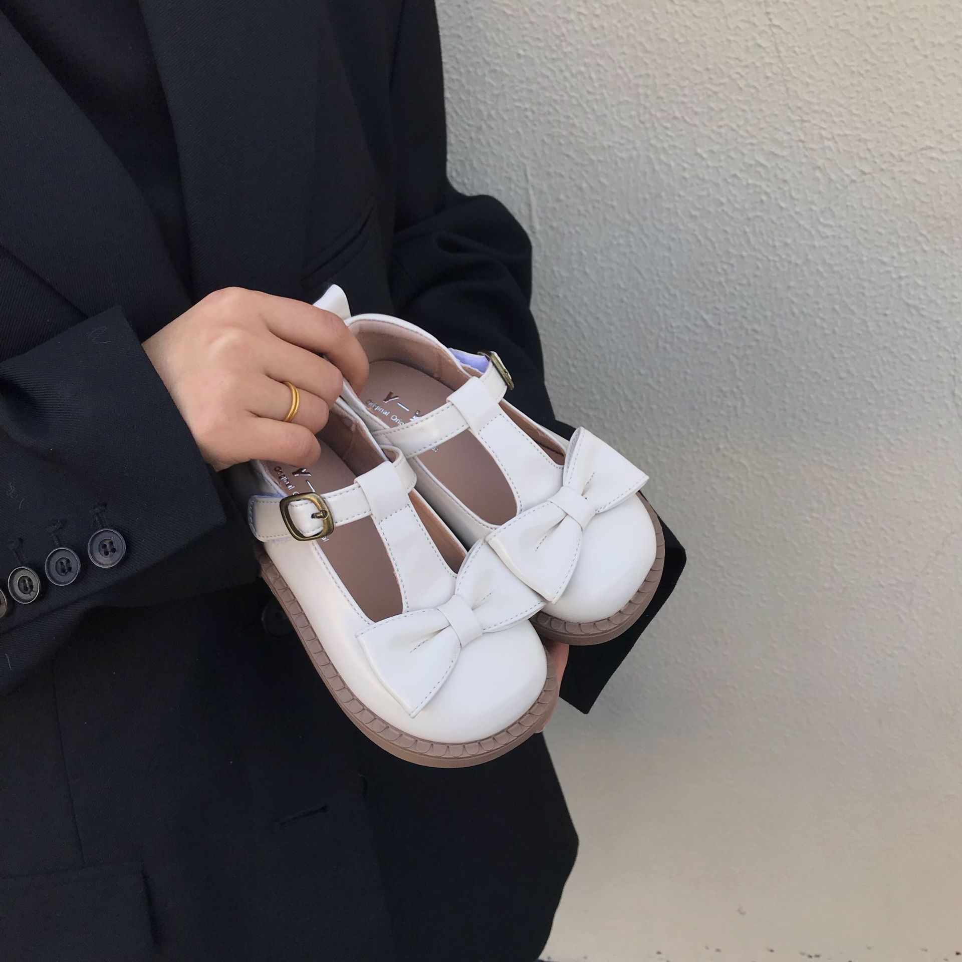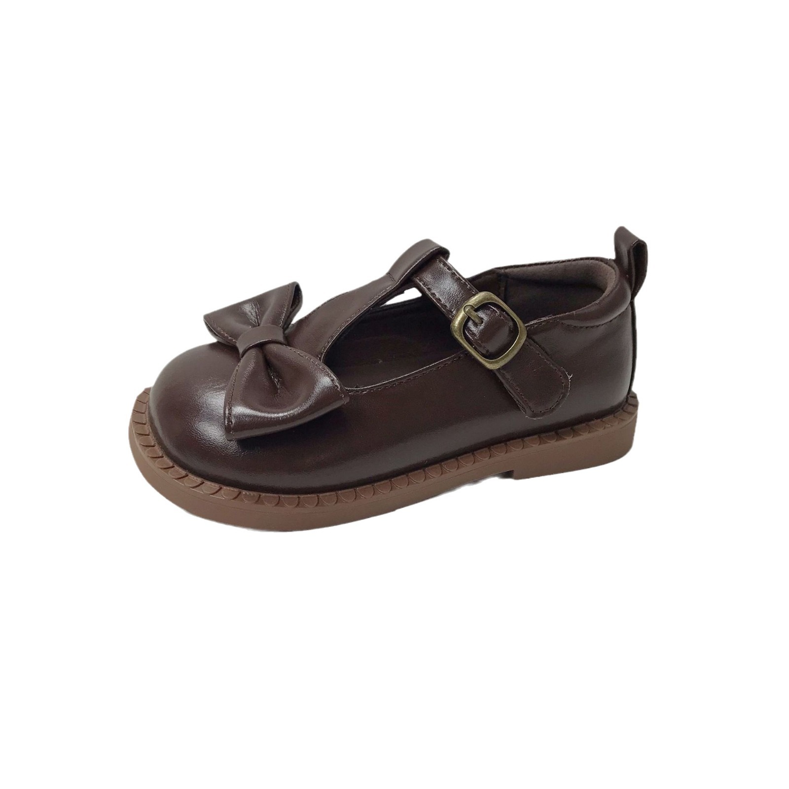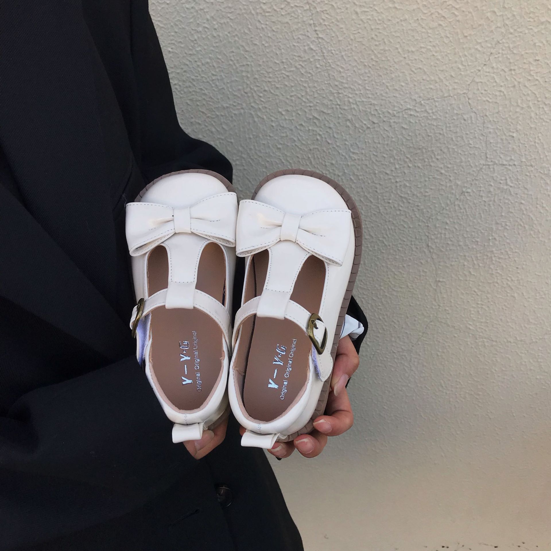 Детская кожаная обувь 2024 весна, новый корейский стиль, кожаная обувь Princess с Т-образным бантом для девочек, детская универсальная Однослойная обувь