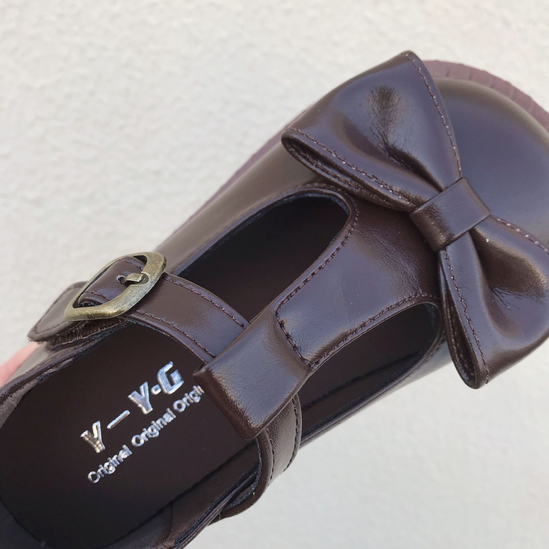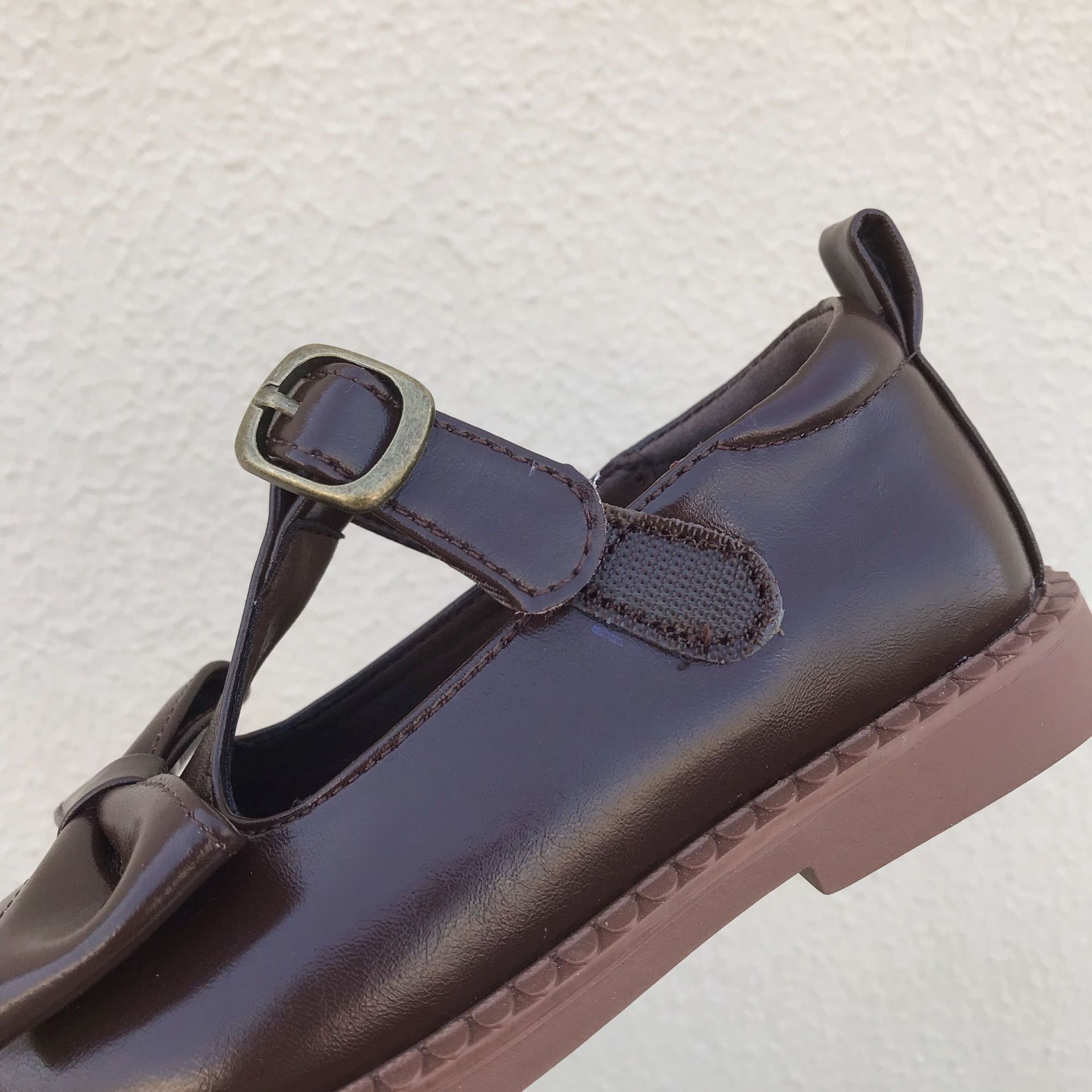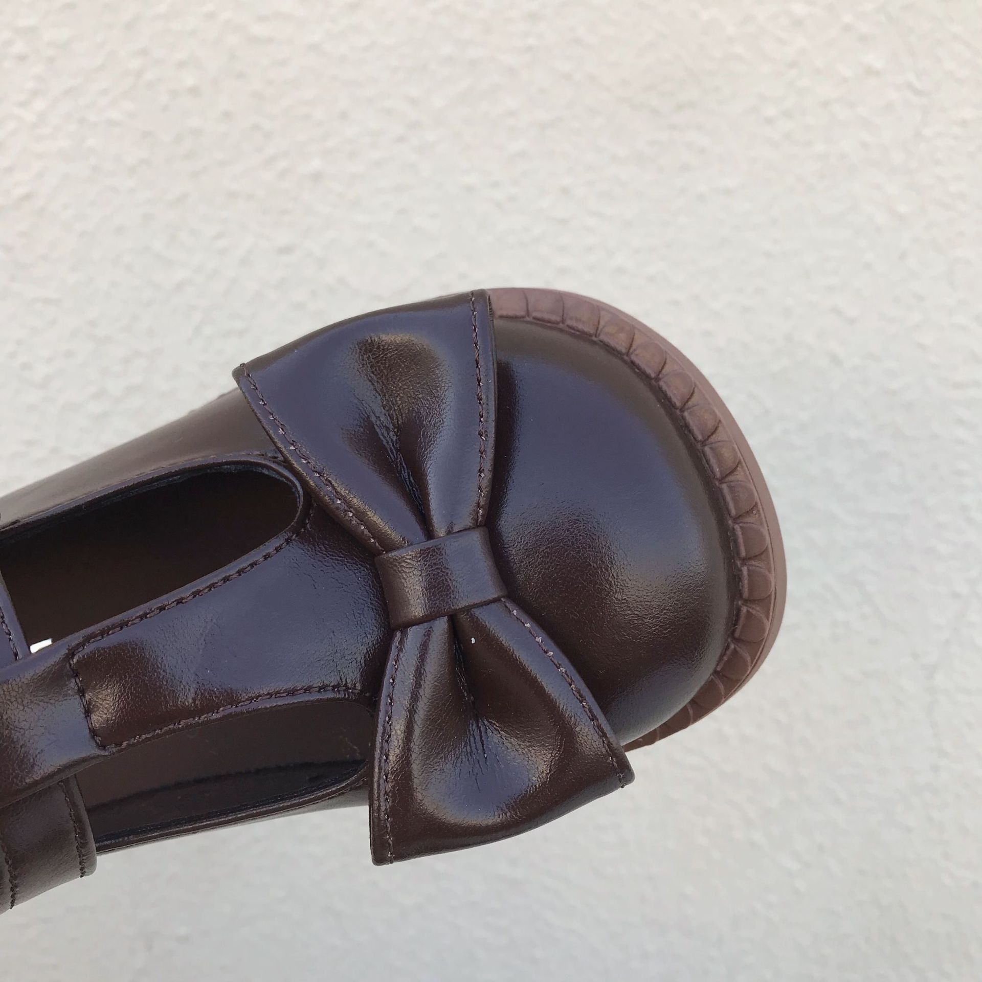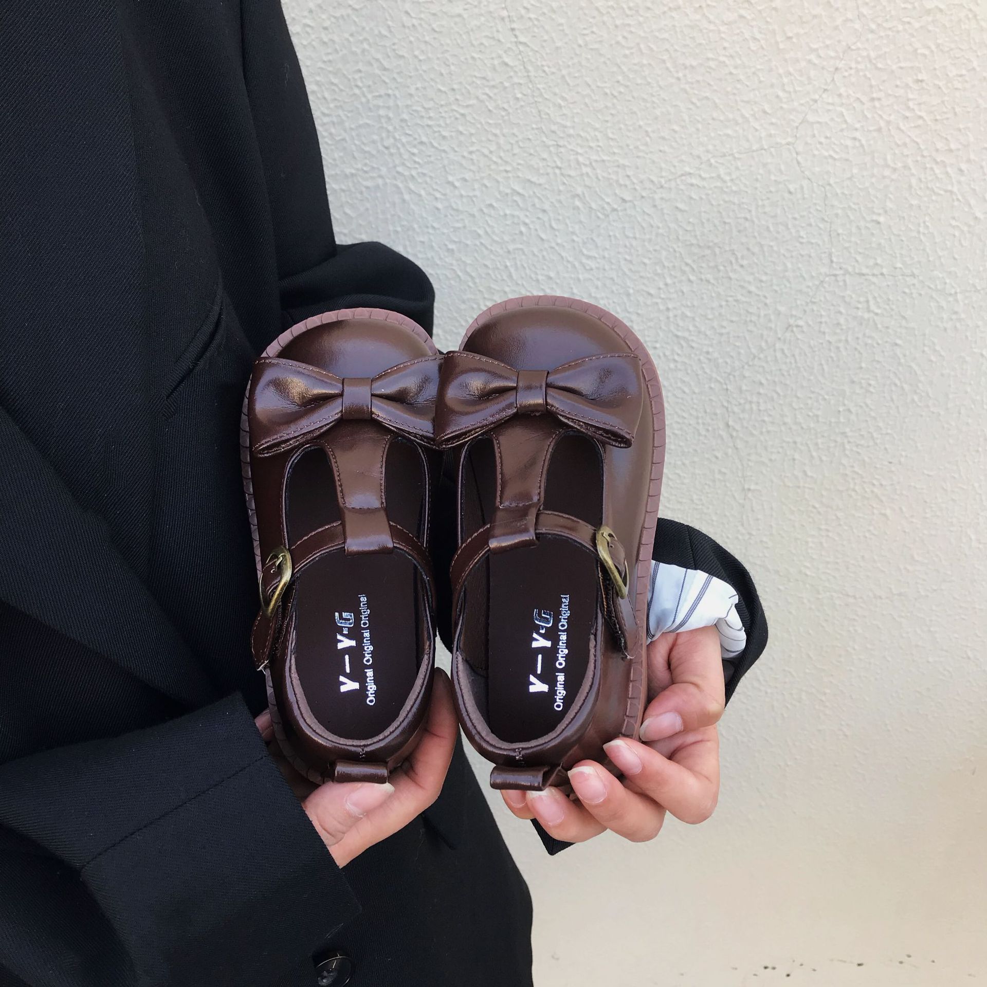 Детская кожаная обувь 2024 весна, новый корейский стиль, кожаная обувь Princess с Т-образным бантом для девочек, детская универсальная Однослойная обувь