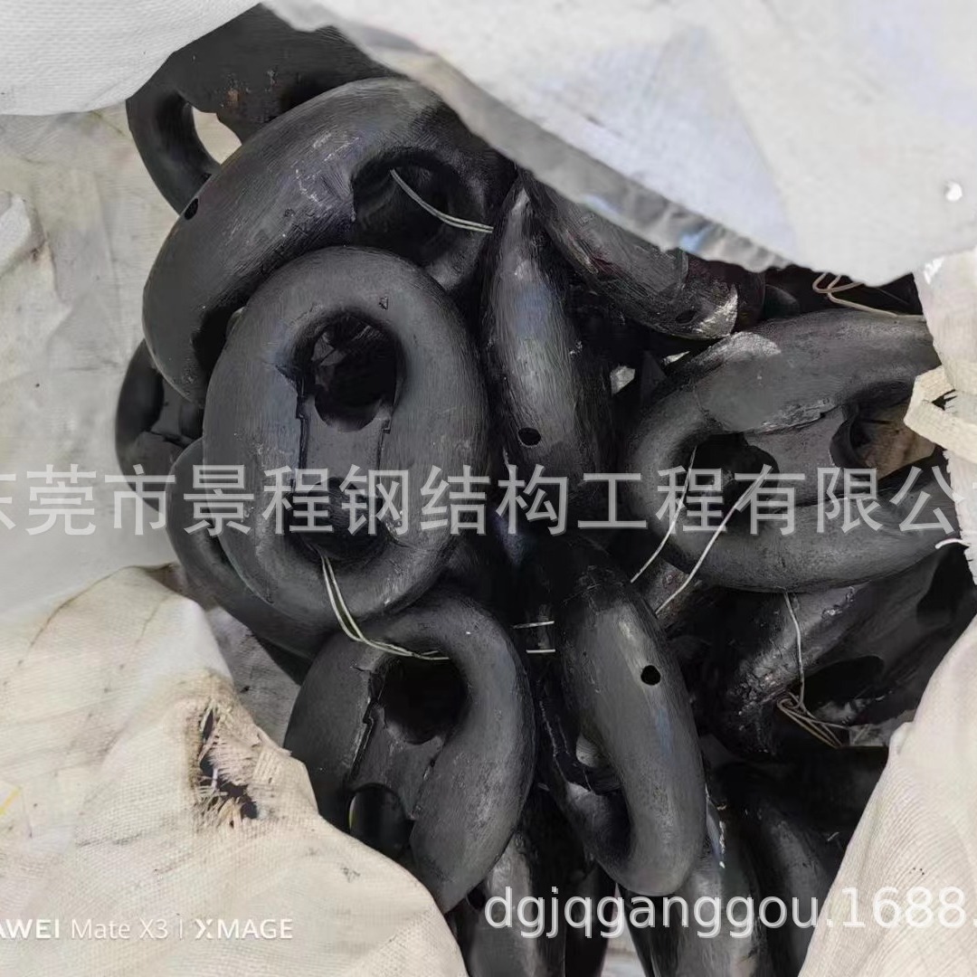 锚链按其制造方法分,有铸钢锚链、电焊锚链和锻造锚链等。铸钢锚链强度高,刚性好,变形小,耐磨,横档不易松动,使用寿命长,而且适于大规模生产。其缺点是工艺复杂,成本高,耐冲击性能较差。电焊锚链是用符合要求的圆钢材料弯制并焊接而成,具有生产工艺先进、简单,成本低,质量好等优点。锻造锚链具有较好的耐冲击韧性,但制造工艺复杂,成本高,质量不稳定。