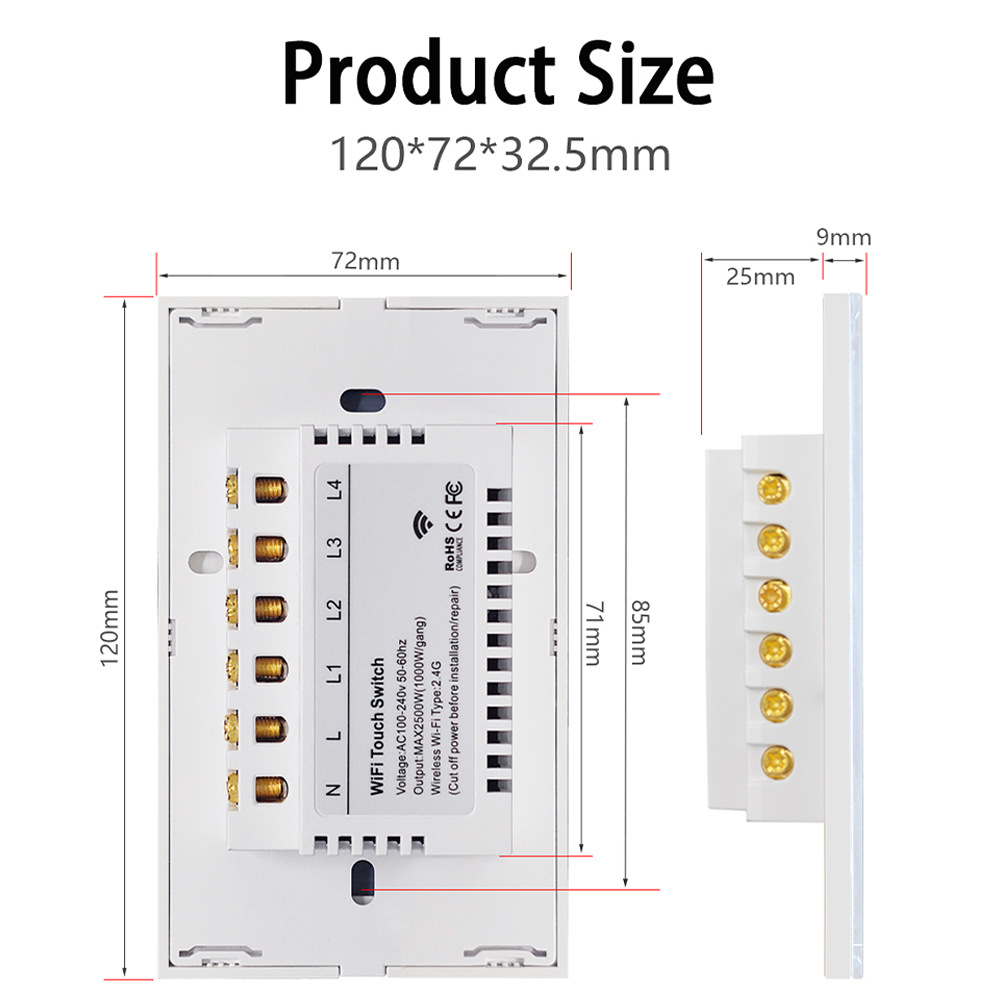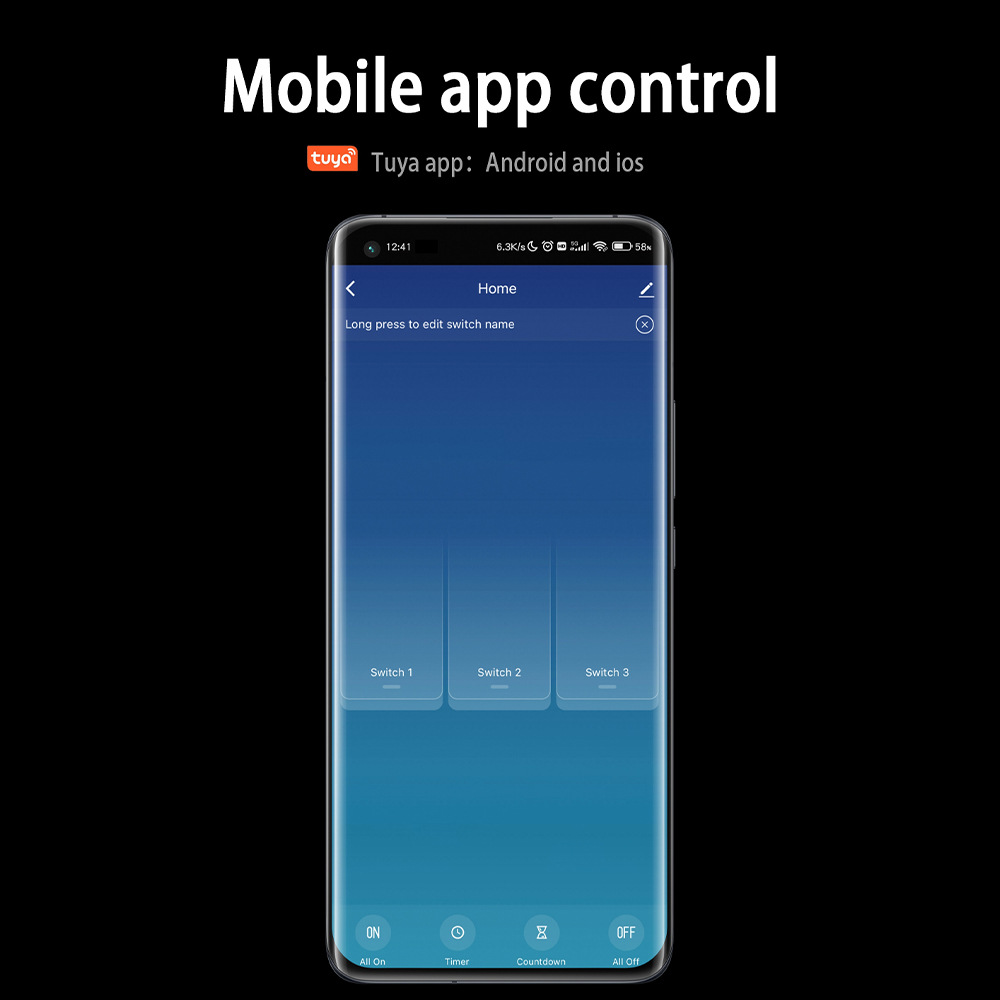 配网方式:1.上电自动进入配网模式。2.长按触摸按钮5秒,蓝灯闪烁,进入配网模式。