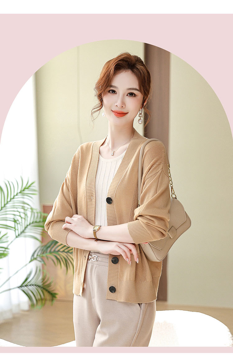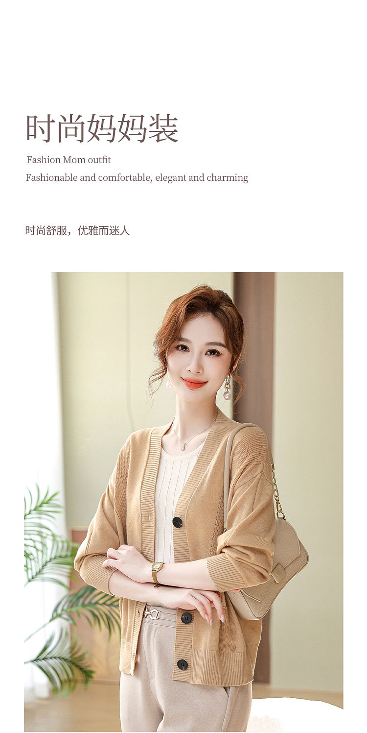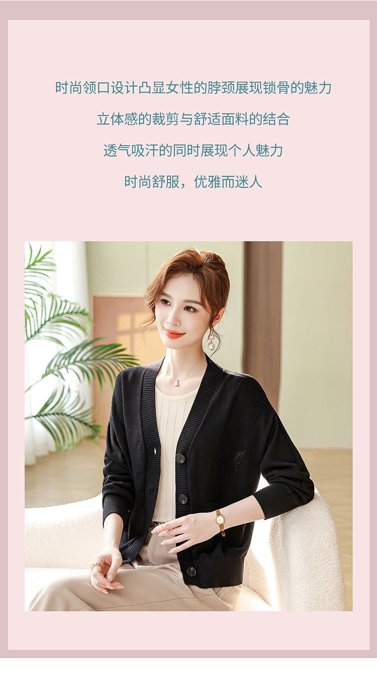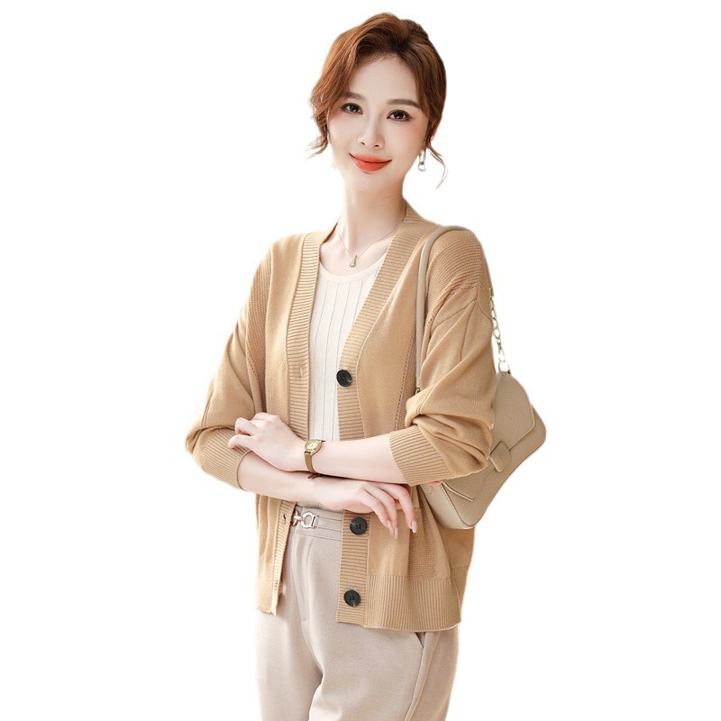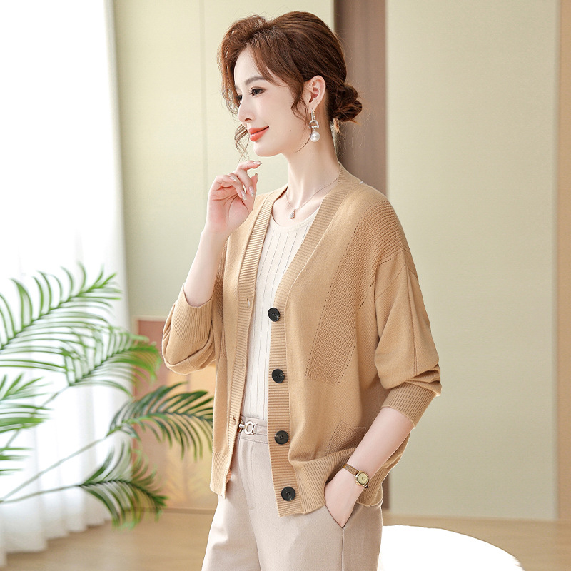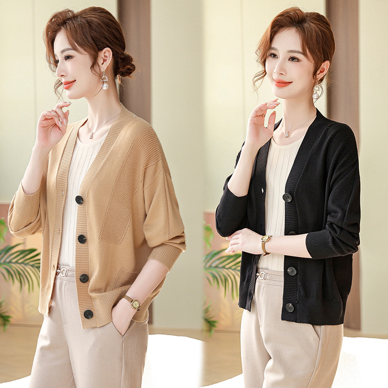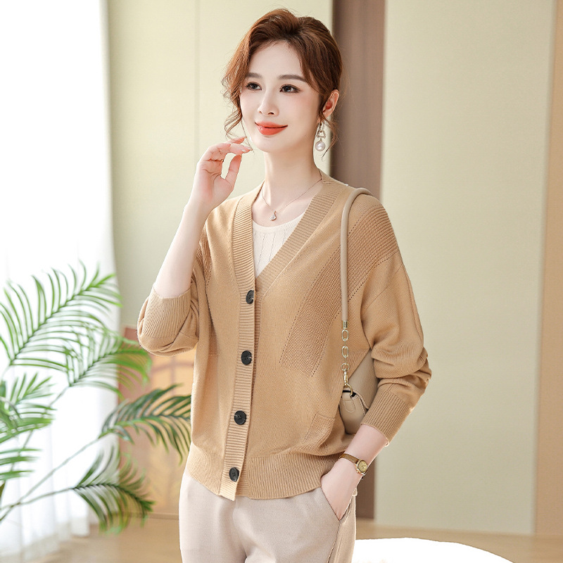 2024 Новый вязаный кардиган-пальто для мам среднего возраста, свободный женский кардиган больших размеров с V-образным вырезом, однотонный, подходящий ко всему в западном стиле