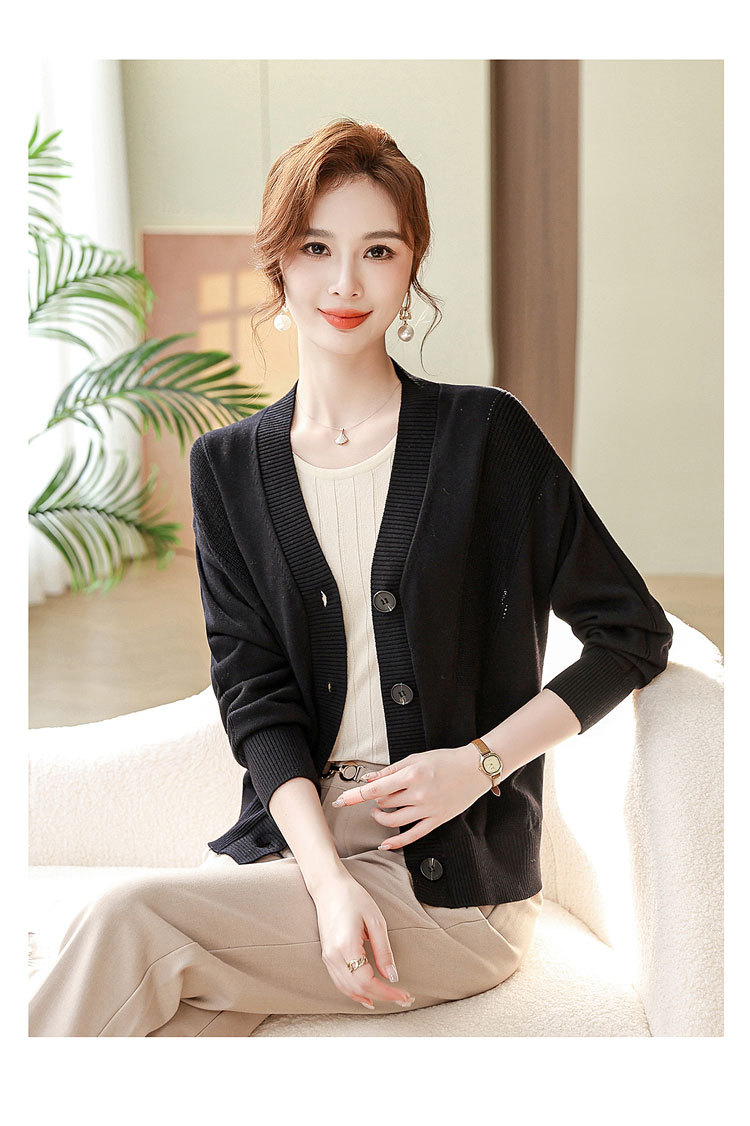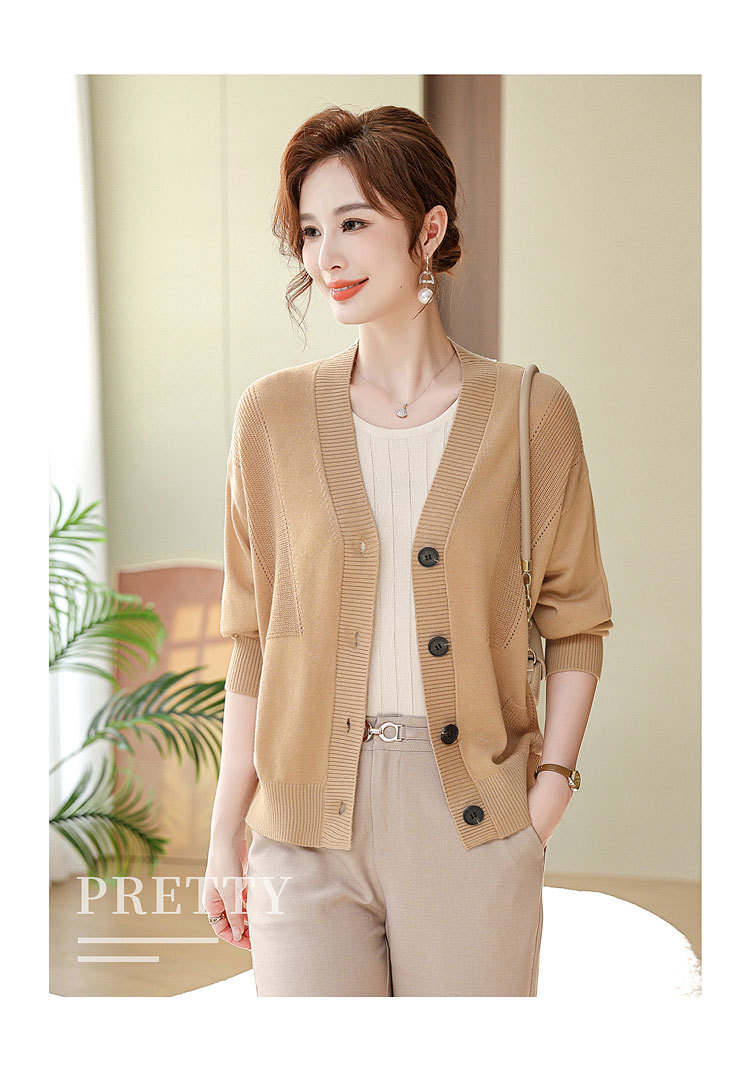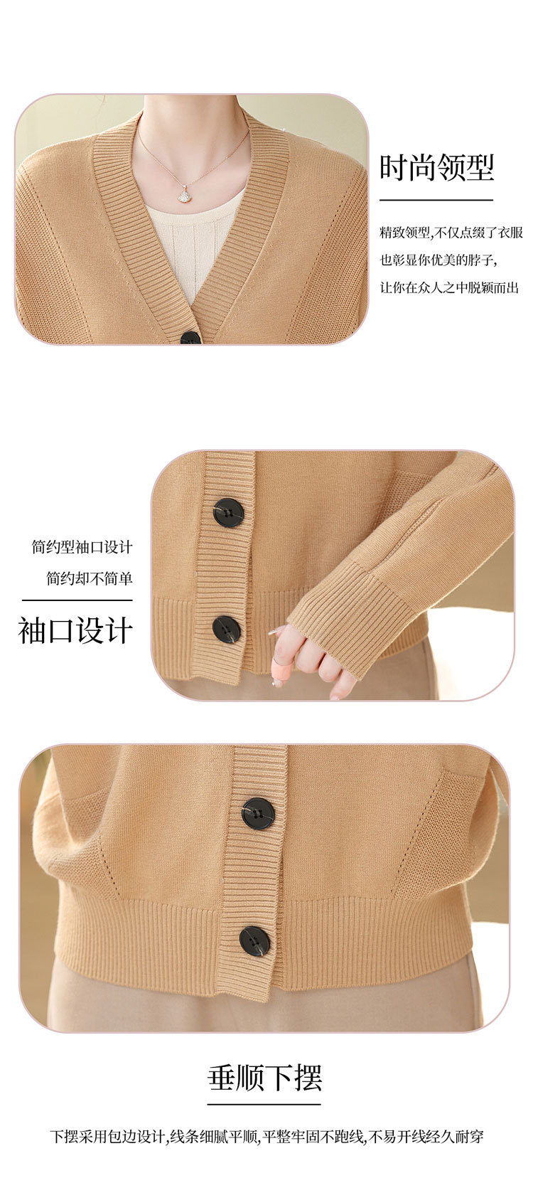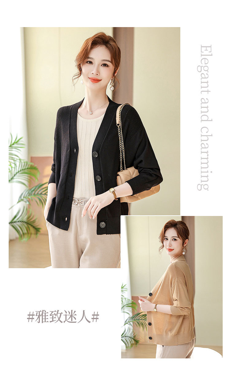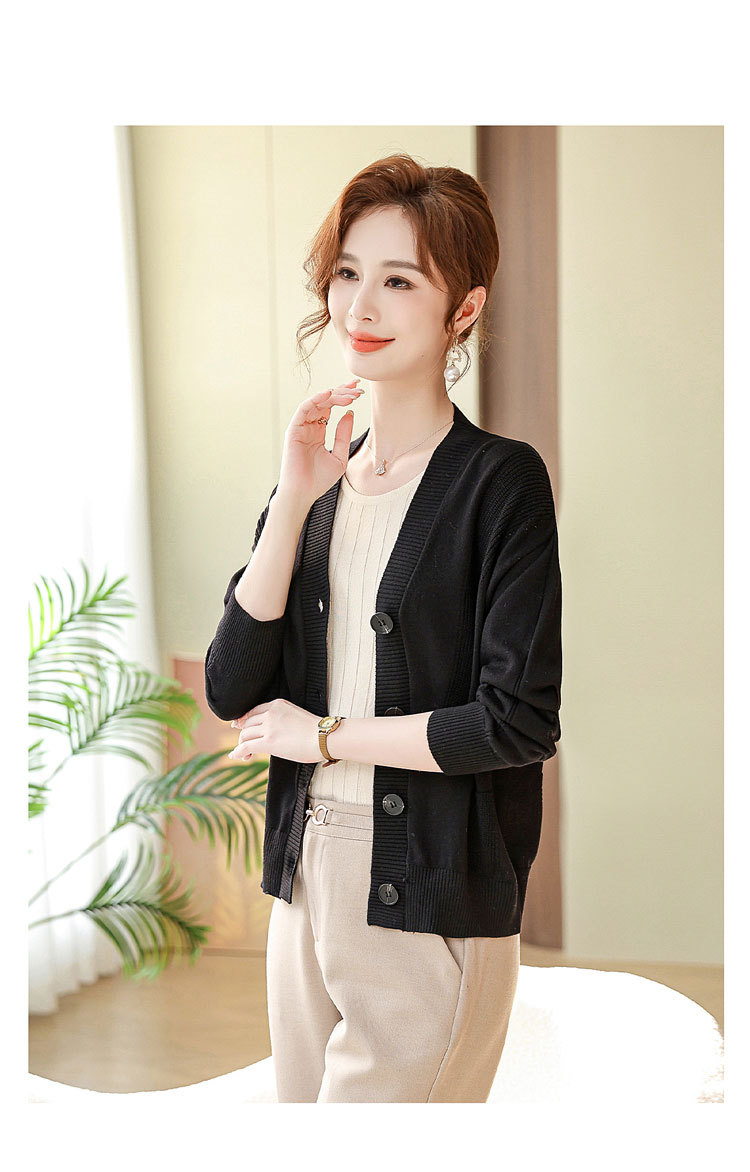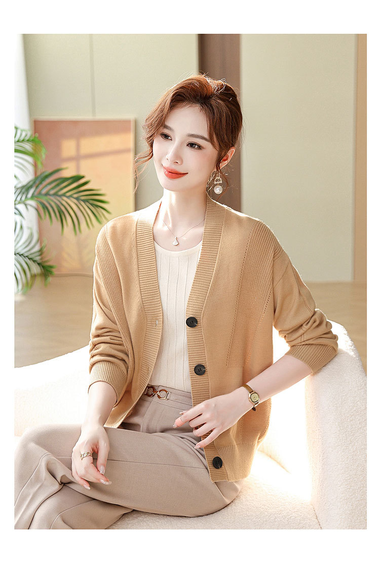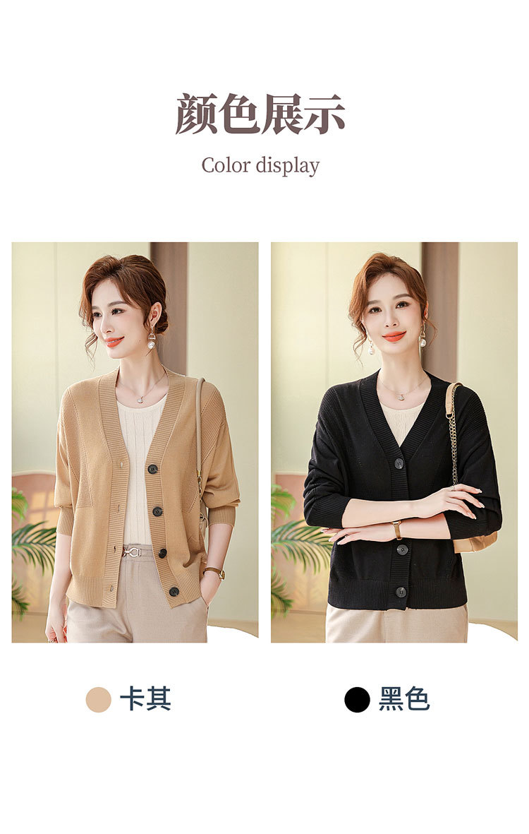 2024 Новый вязаный кардиган-пальто для мам среднего возраста, свободный женский кардиган больших размеров с V-образным вырезом, однотонный, подходящий ко всему в западном стиле