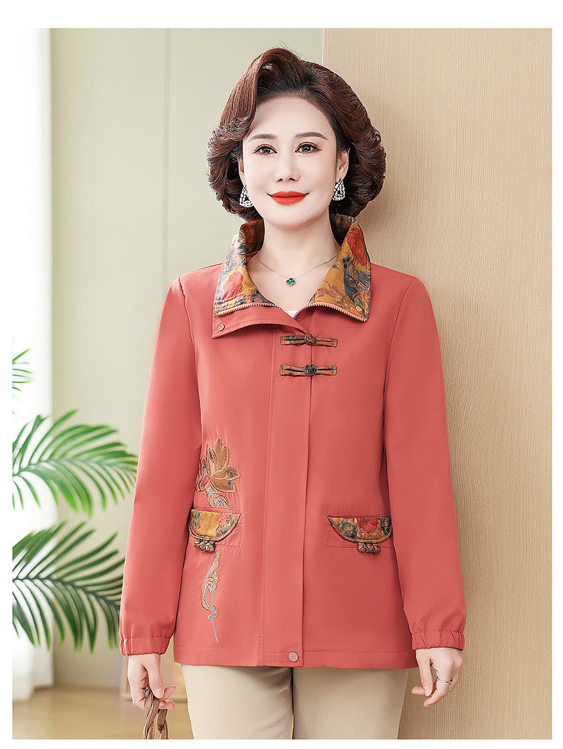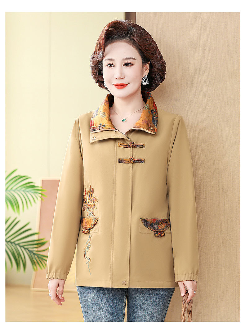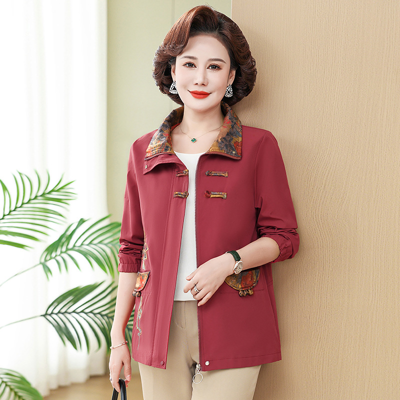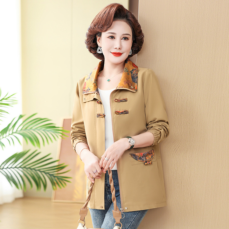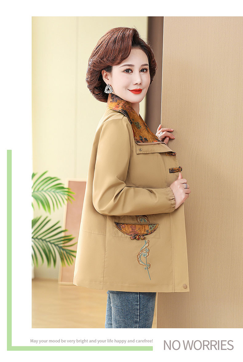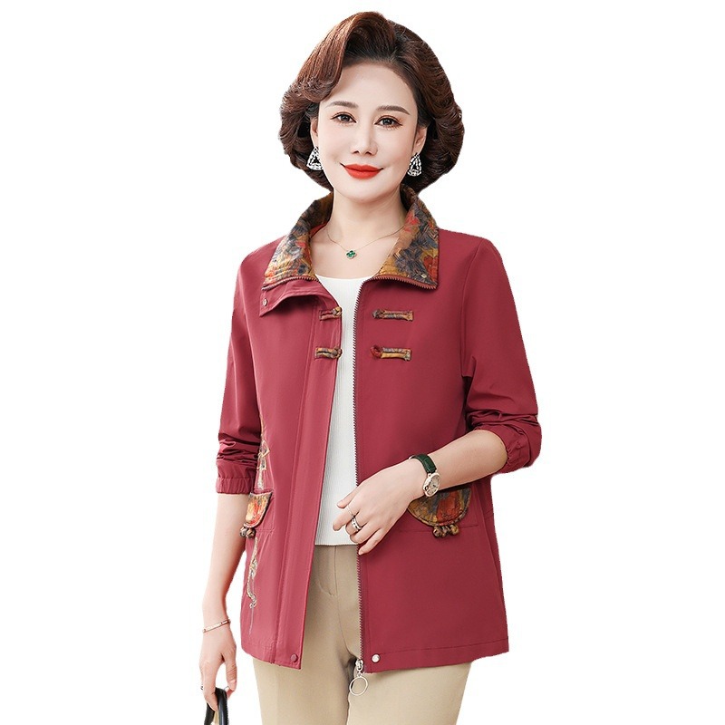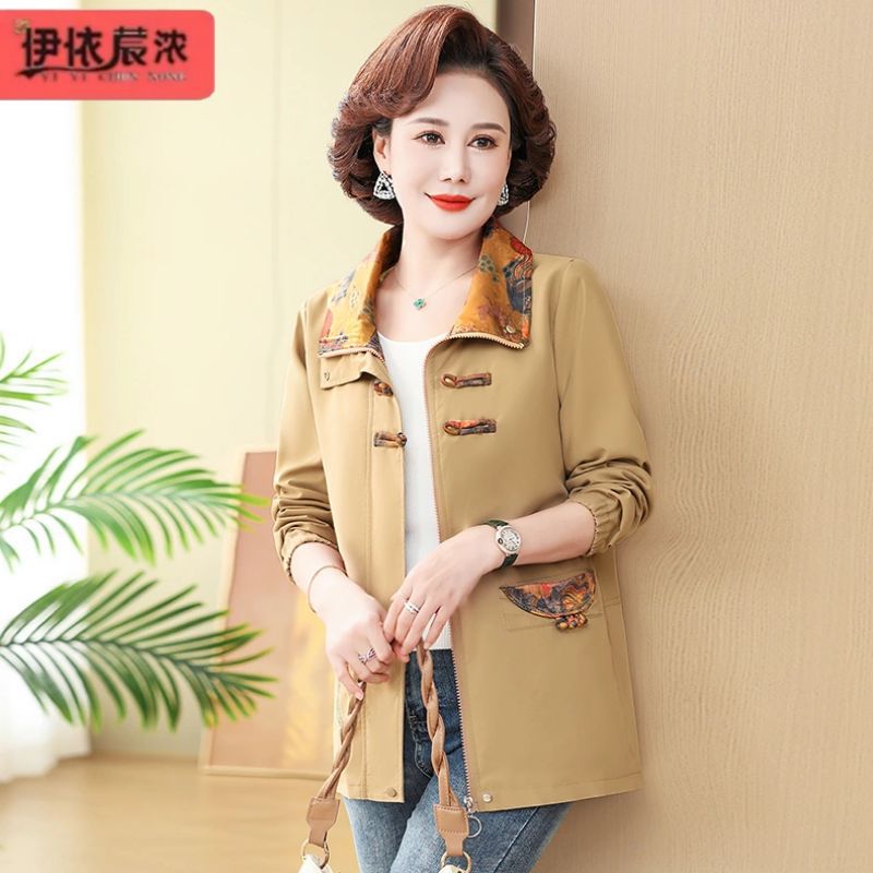 2024 Новое маминое пальто с лацканами для среднего и пожилого возраста, весенняя куртка на молнии в китайском стиле, свободная верхняя часть