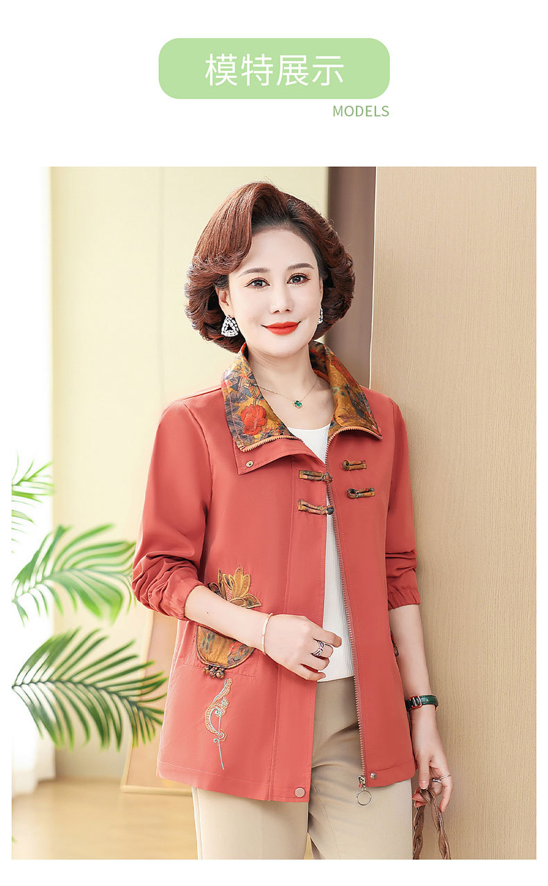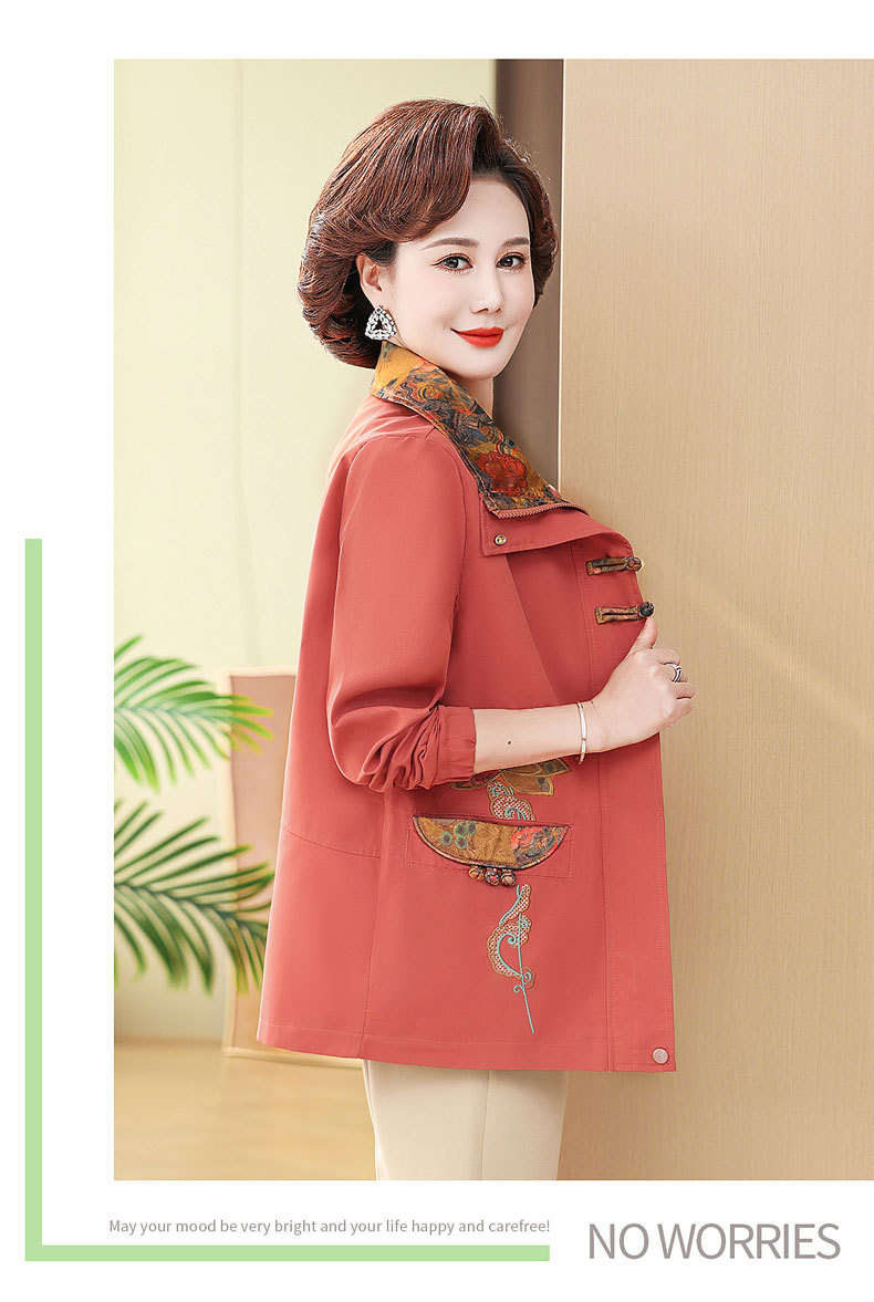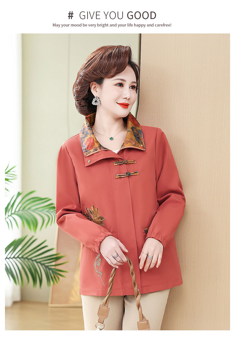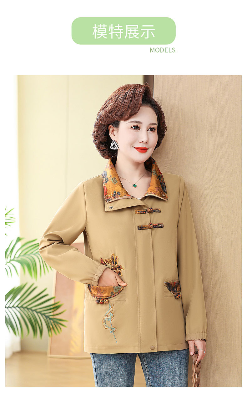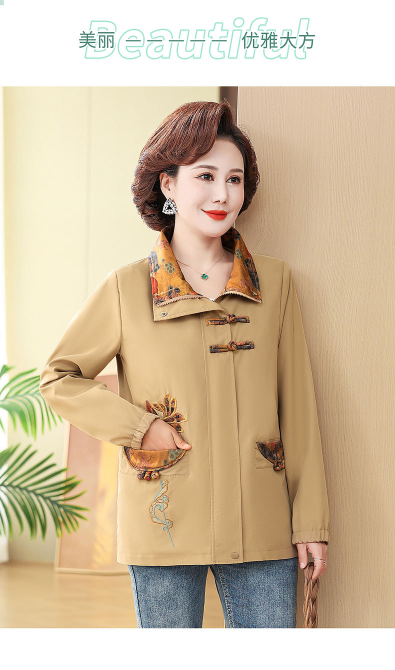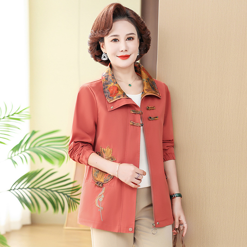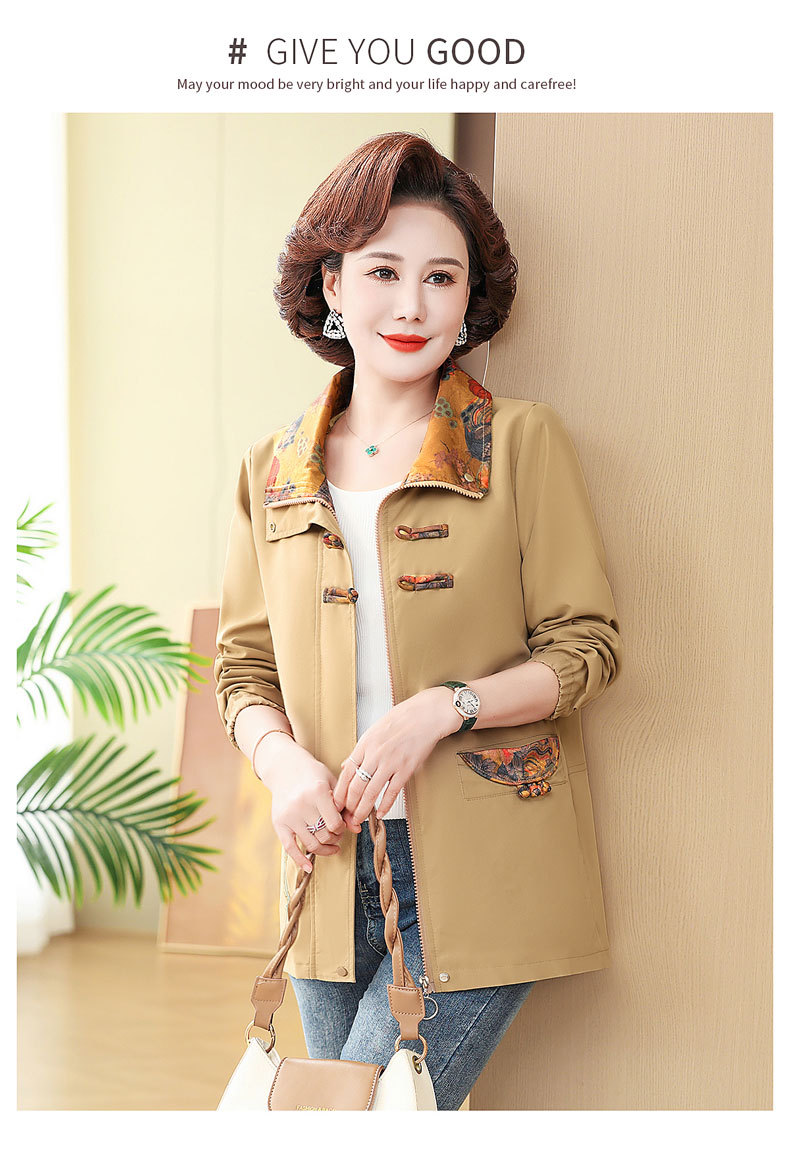 2024 Новое маминое пальто с лацканами для среднего и пожилого возраста, весенняя куртка на молнии в китайском стиле, свободная верхняя часть