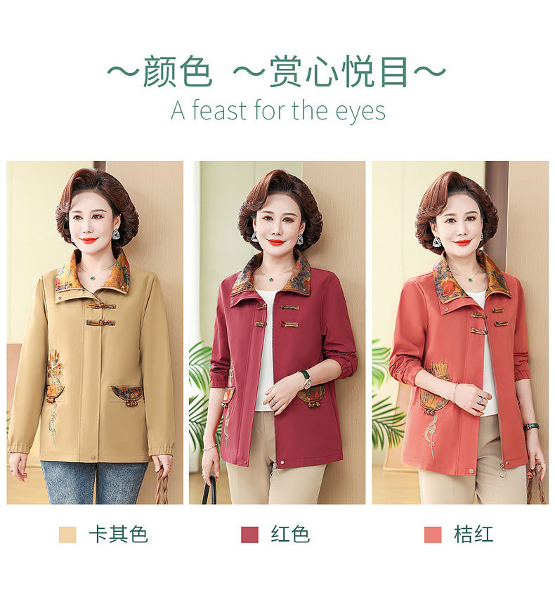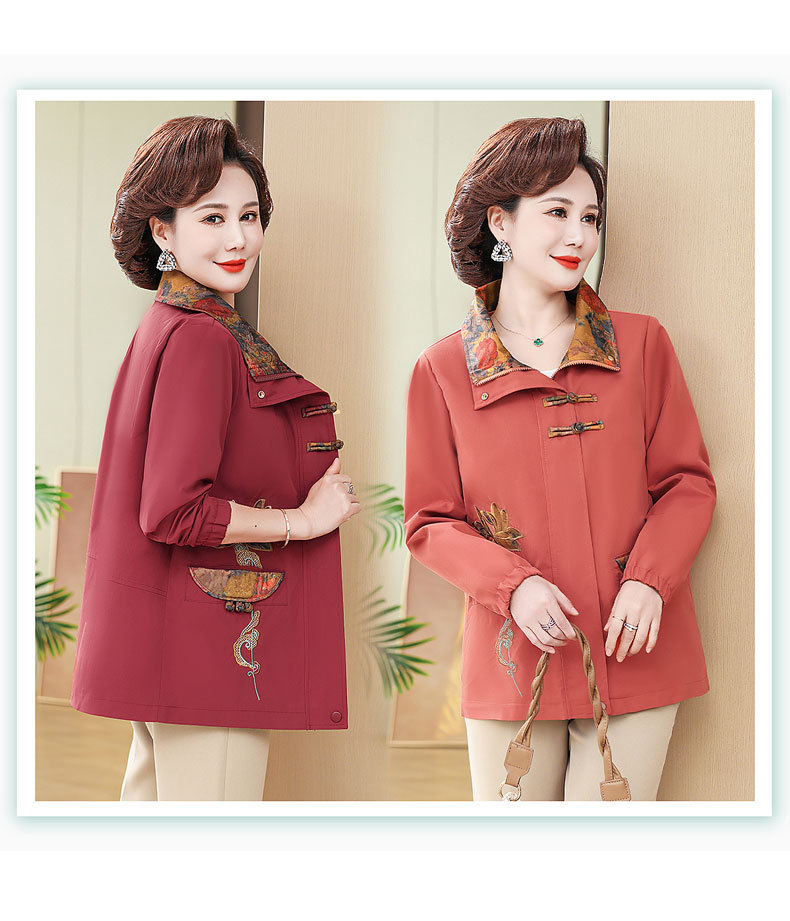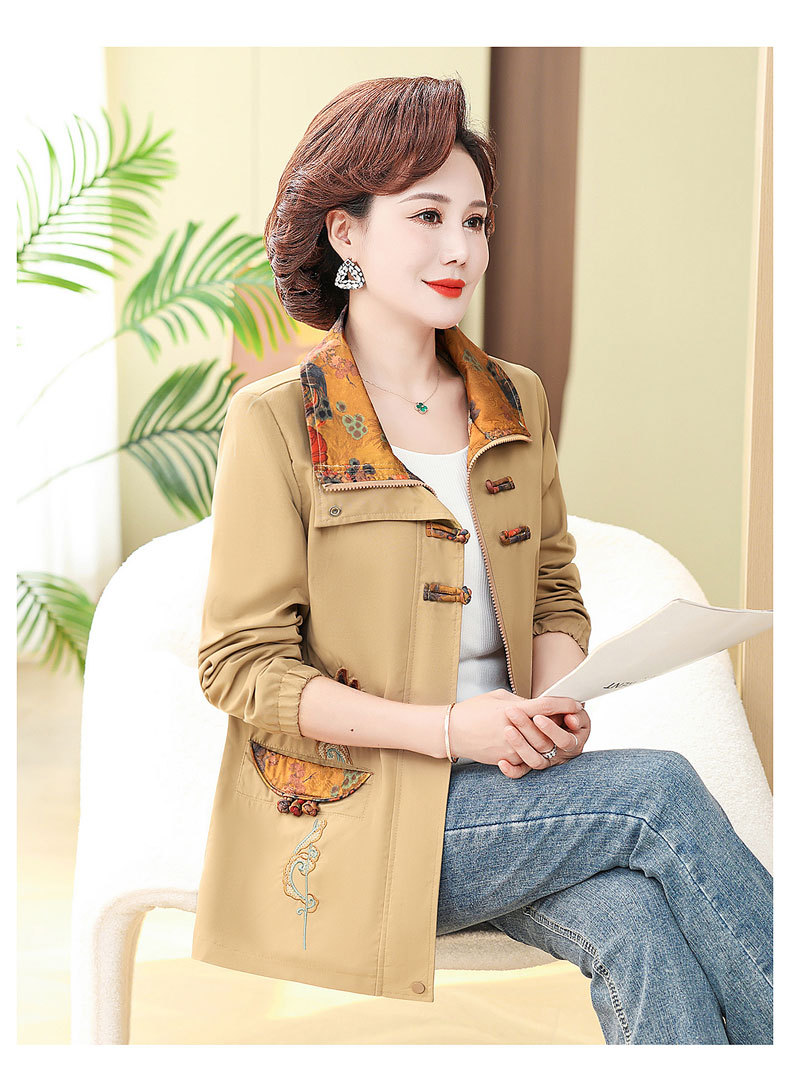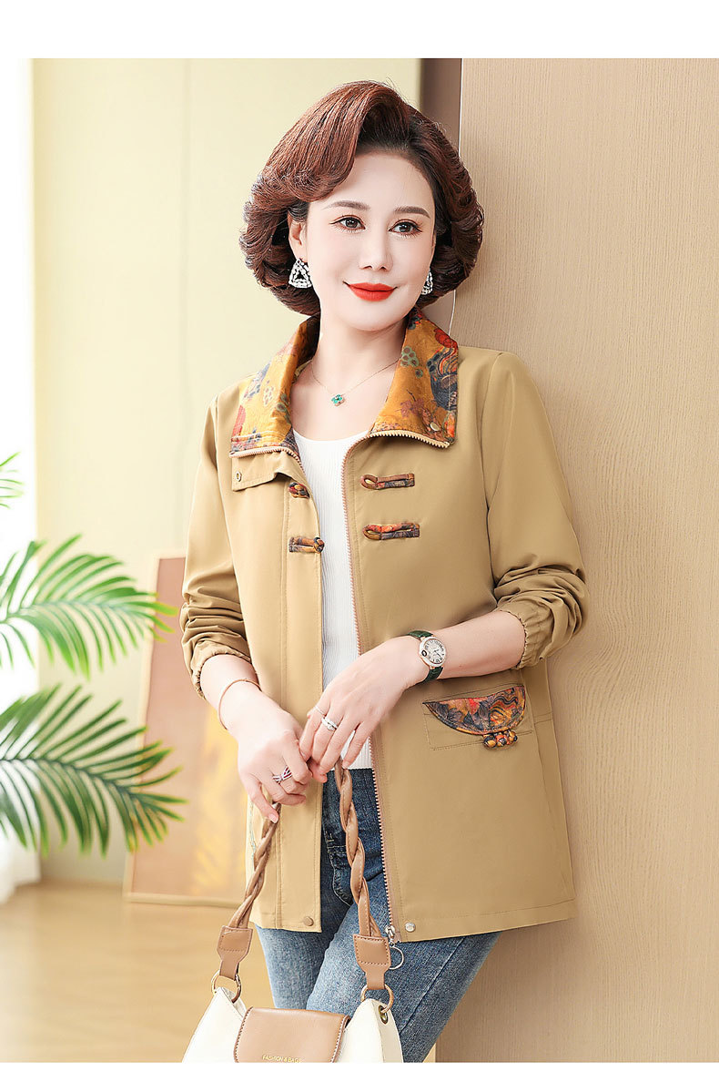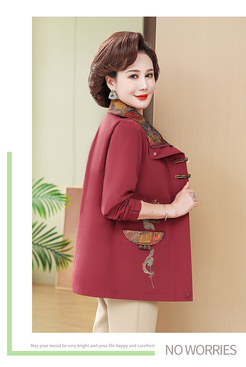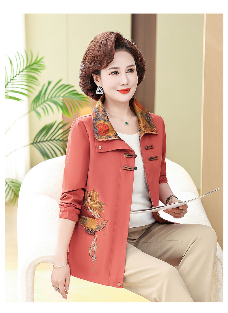 2024 Новое маминое пальто с лацканами для среднего и пожилого возраста, весенняя куртка на молнии в китайском стиле, свободная верхняя часть