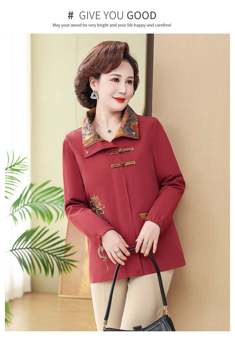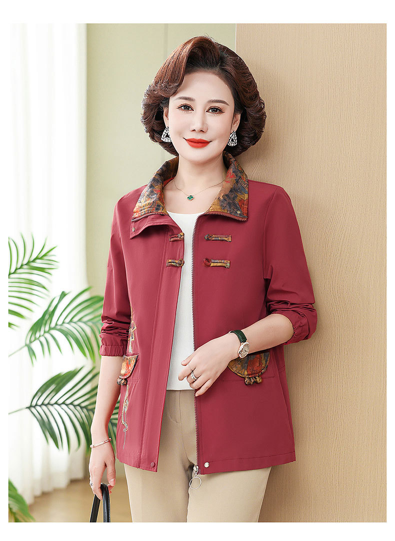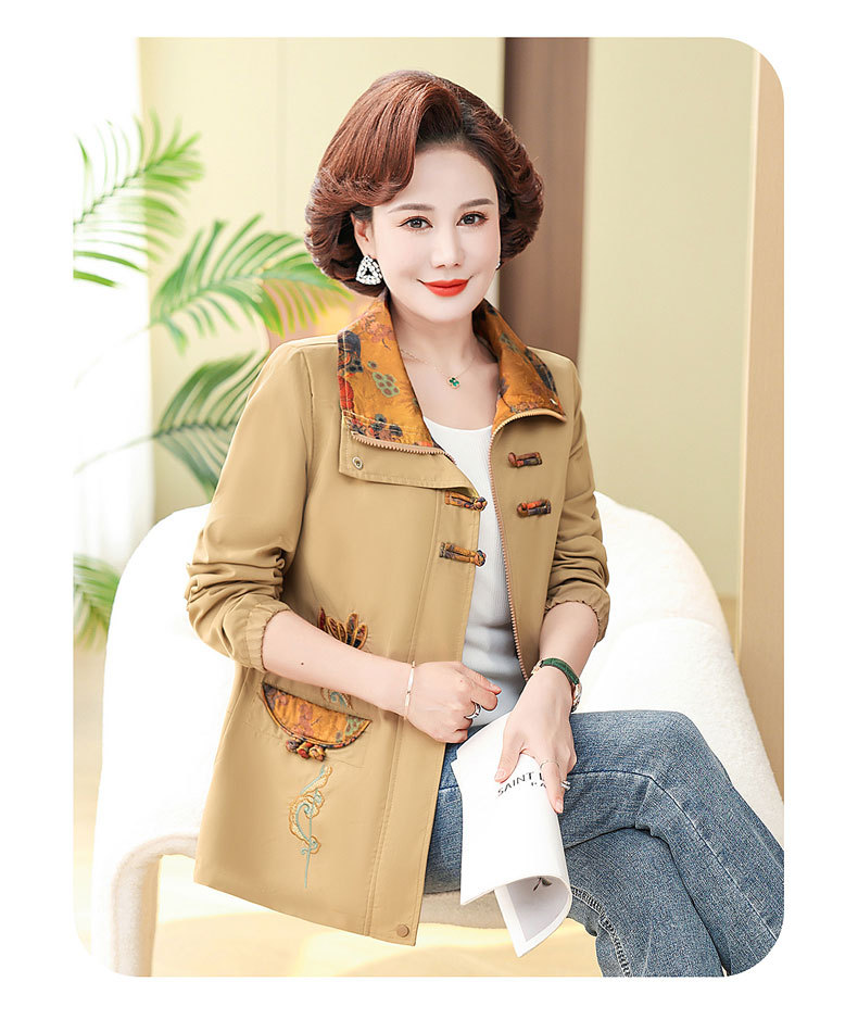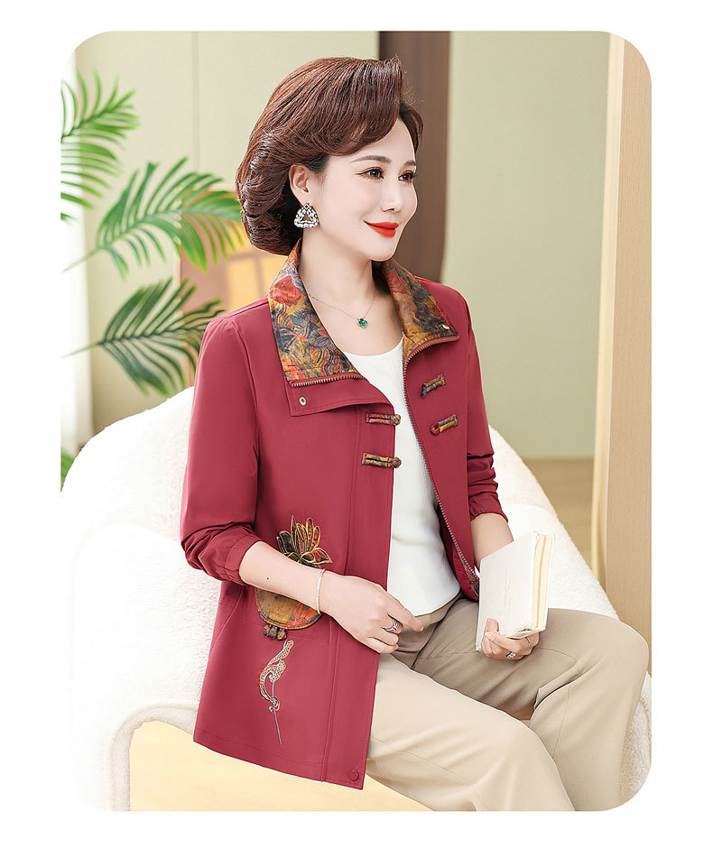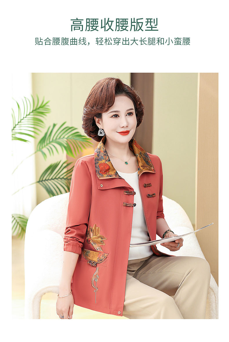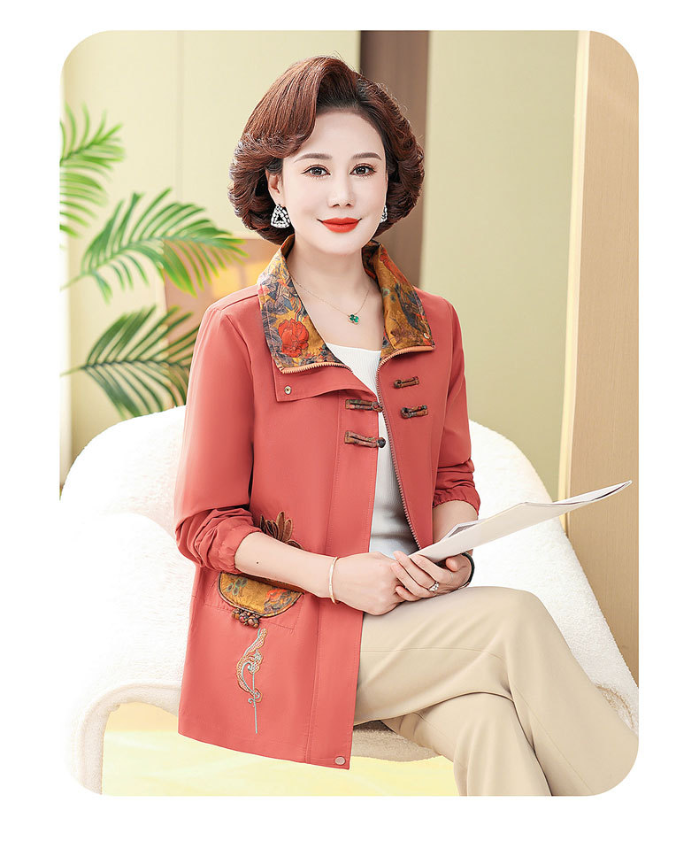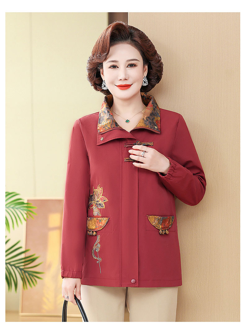 2024 Новое маминое пальто с лацканами для среднего и пожилого возраста, весенняя куртка на молнии в китайском стиле, свободная верхняя часть