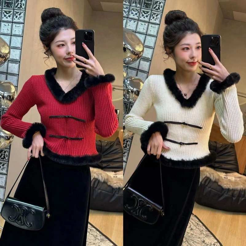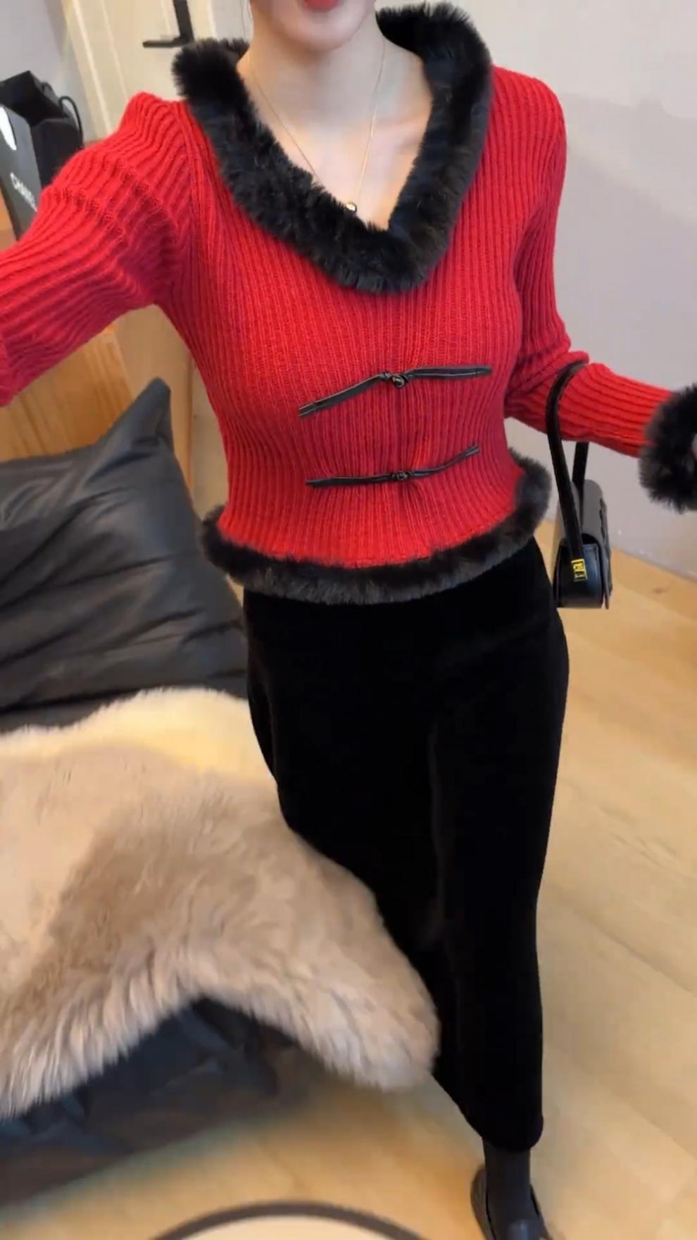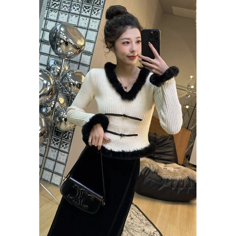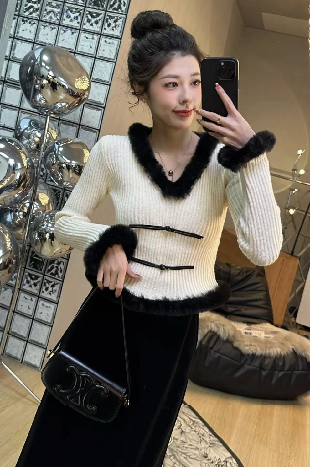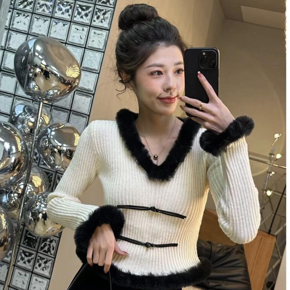 Дизайн сплошной цвет сшитый шерстяной V-образный свитер