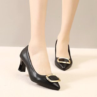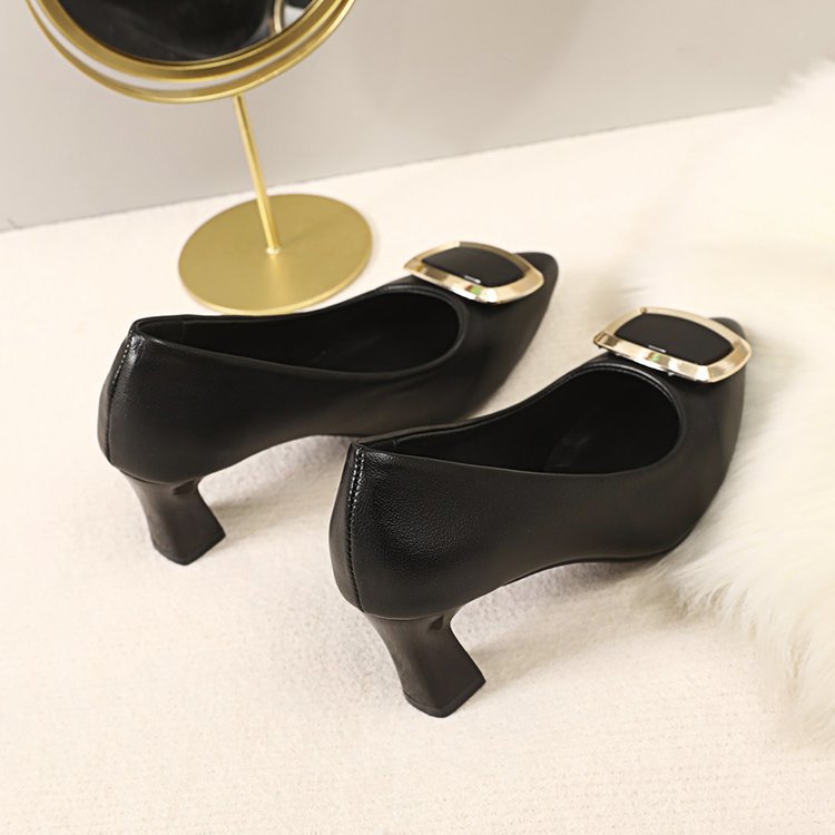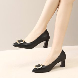 Однослойные туфли на высоком каблуке для женщин 2024 Весна и лето новые маленькие кожаные туфли с мелким ртом женские туфли из лакированной кожи летние осенние кожаные туфли на низком каблуке