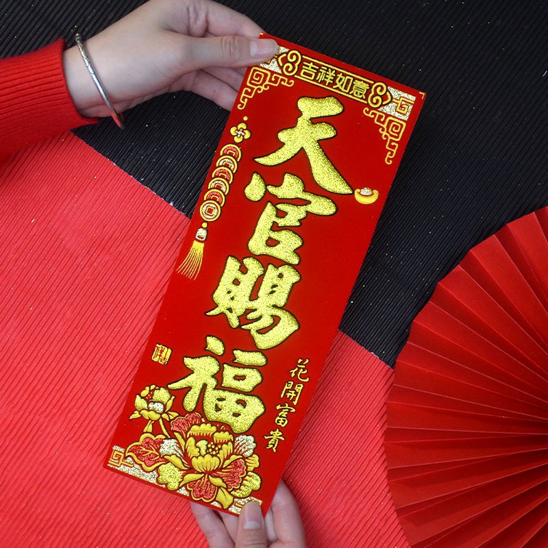 Tiangguan благословение красные нижние Позолоченные фланелевые полосы Hunchun DouFang наклейки новоселье от двери до двери перчатка вертикальное соединение