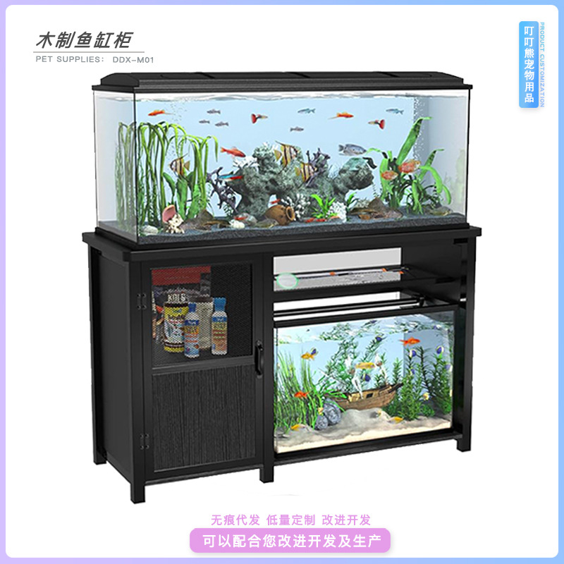 Деревянный шкаф для аквариума из дерева из железа и дерева в сочетании со стойкой для аквариума с высокой нагрузкой для хранения рыболовных снастей Черный трансграничный Amazon