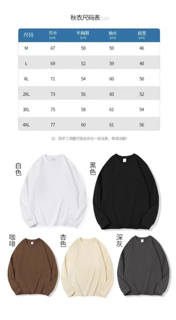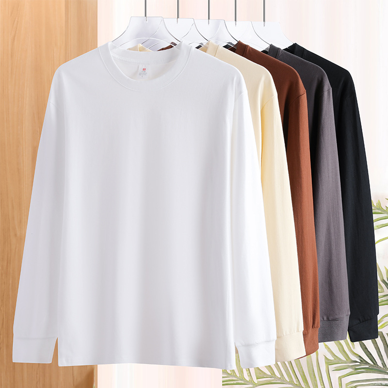 Базовая рубашка 230 г с плотным начесом, хлопковая осенняя одежда Siro, спиннинговая с круглым вырезом, универсальная однотонная Повседневная с длинным рукавом