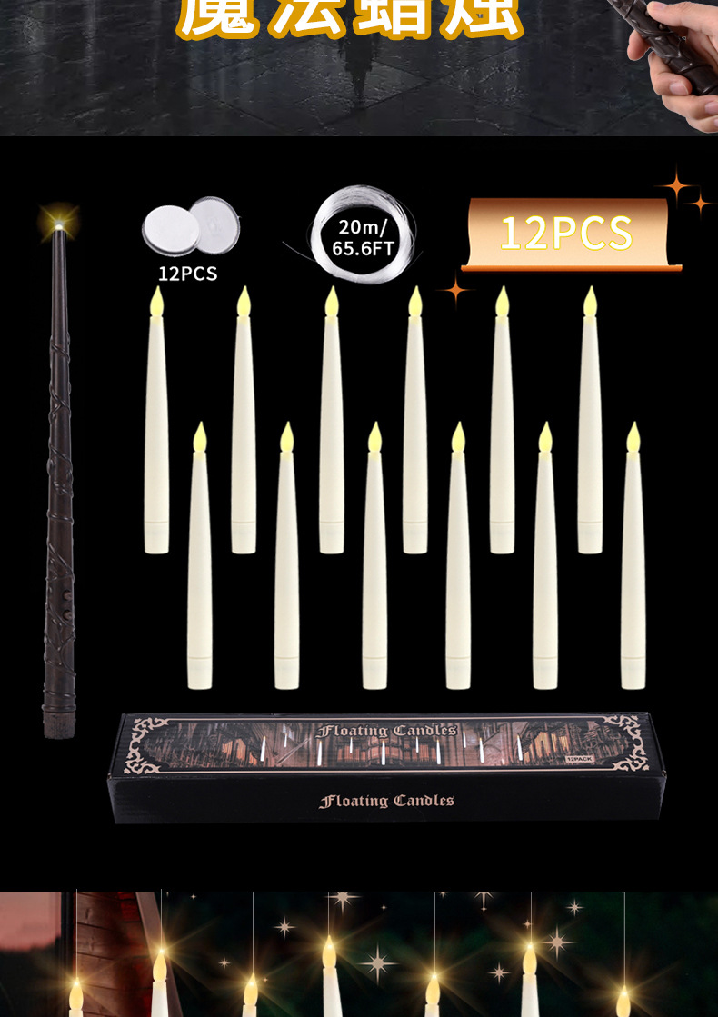 【产品名称】: LED魔法棒悬浮铅笔蜡烛/LED Taper Candles