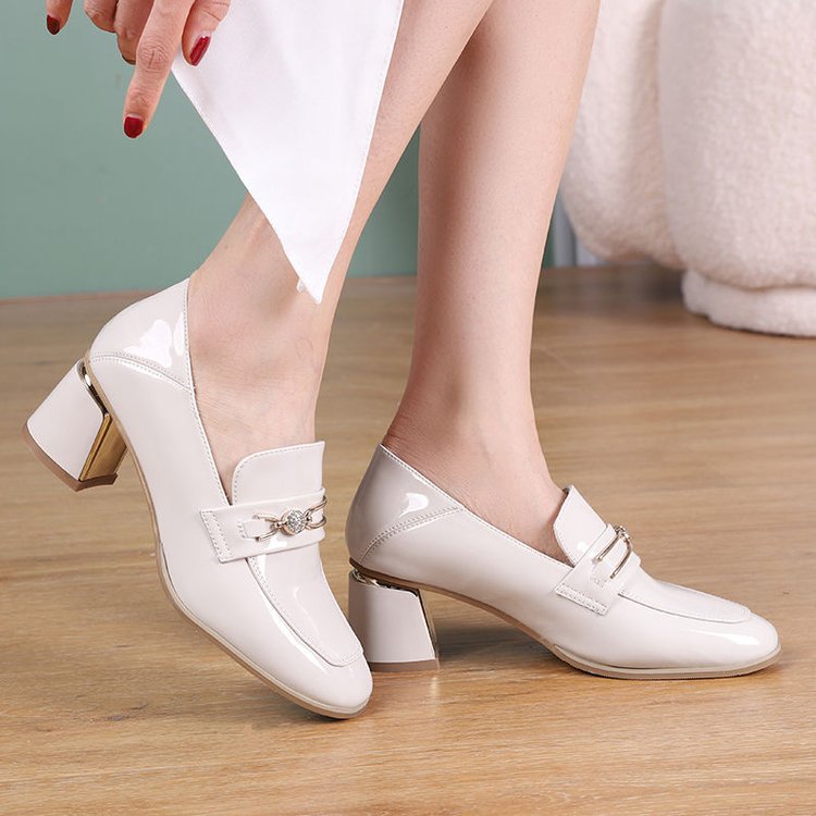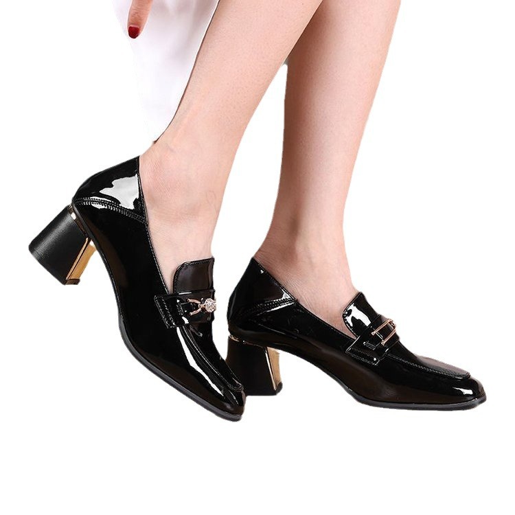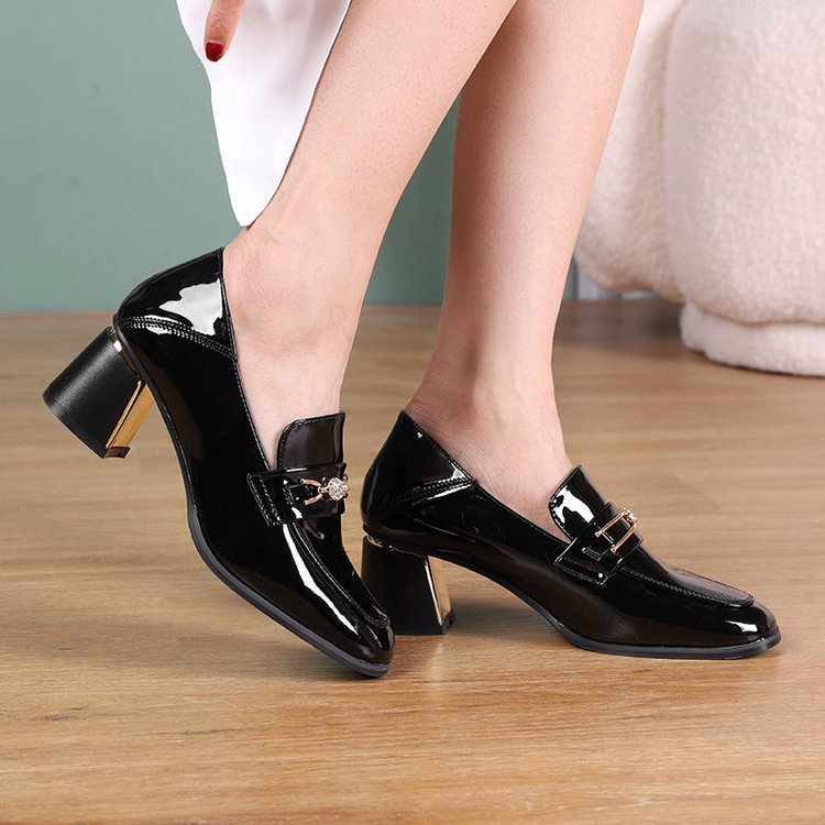 Кожаные туфли ранней весны 2024 года, новые однослойные туфли, женская обувь, Рабочая обувь из лакированной кожи на толстом каблуке, лоферы, повседневная обувь, весенние и осенние туфли для досок