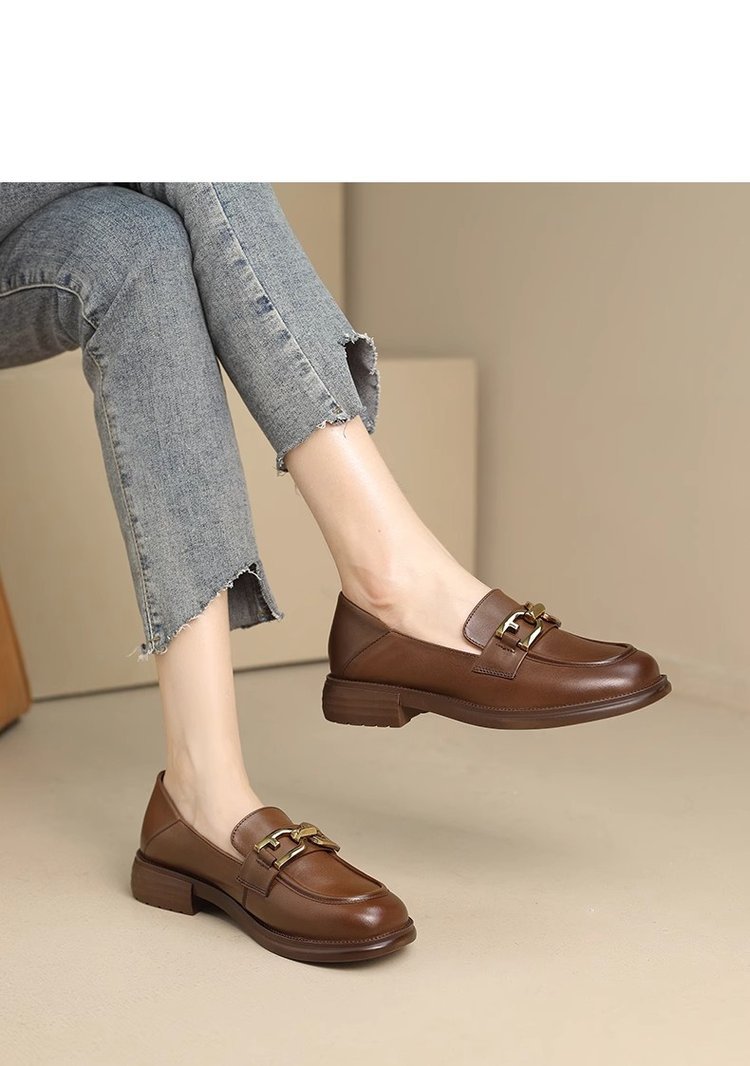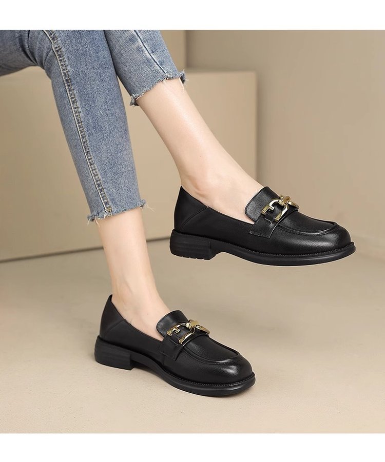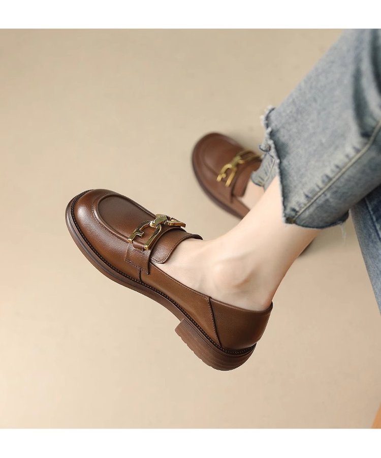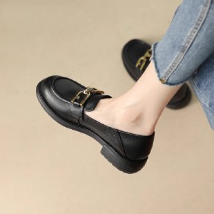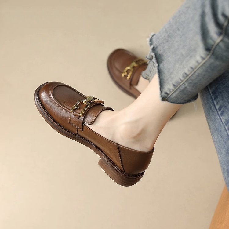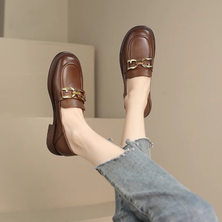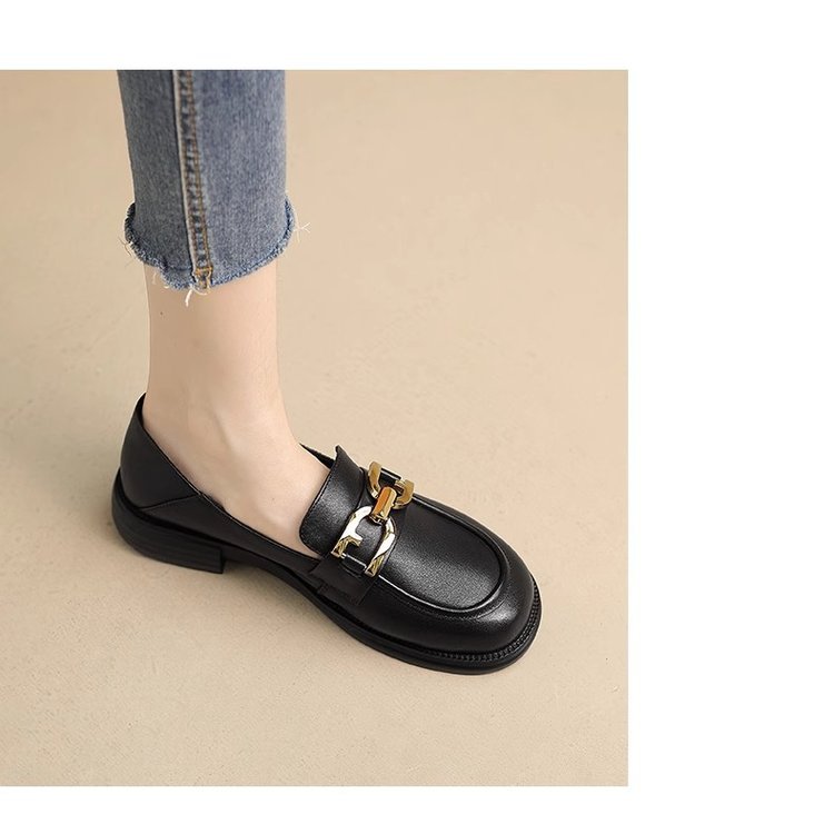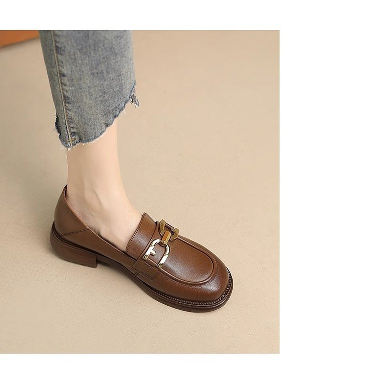 Новинка 2024 года, лоферы без шнуровки, кожаные туфли на плоской подошве в британском стиле, повседневная универсальная обувь для мам, весенне-осенняя Однослойная обувь для женщин