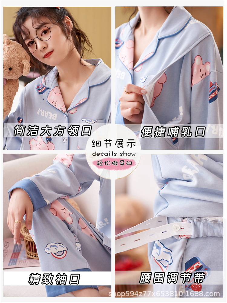 Одежда для родов, пижамы для беременных из чистого хлопка 67 месяцев, весенне-летний тонкий комплект домашней одежды для беременных и грудного вскармливания