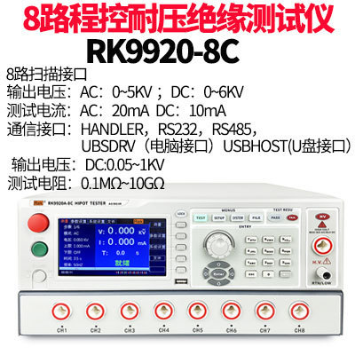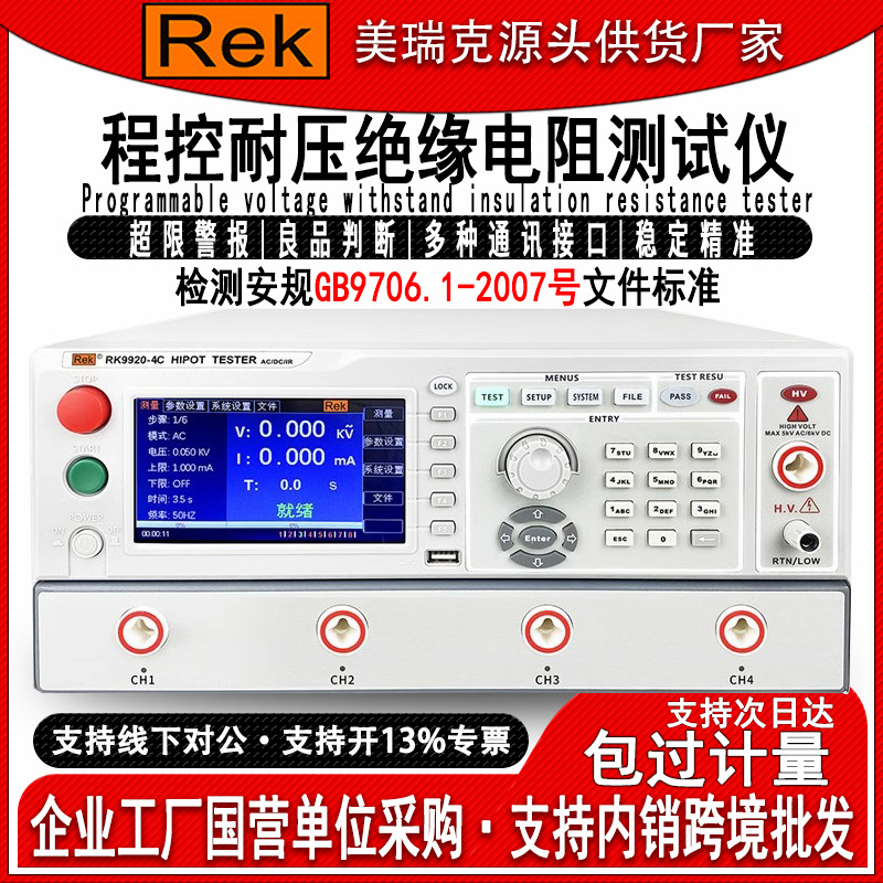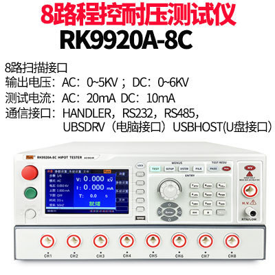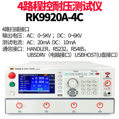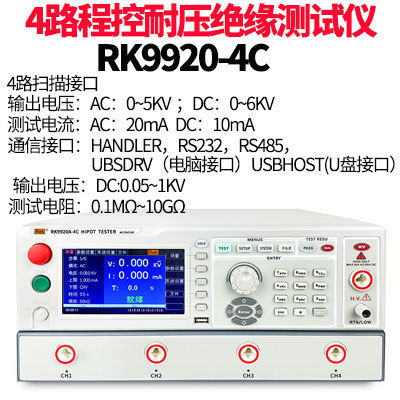 Программируемый тест сопротивления изоляции на выдерживаемое напряжение переменного/постоянного тока Мерика 4-ходовой многоканальный тест безопасности переменного/постоянного тока 5KV20mA
