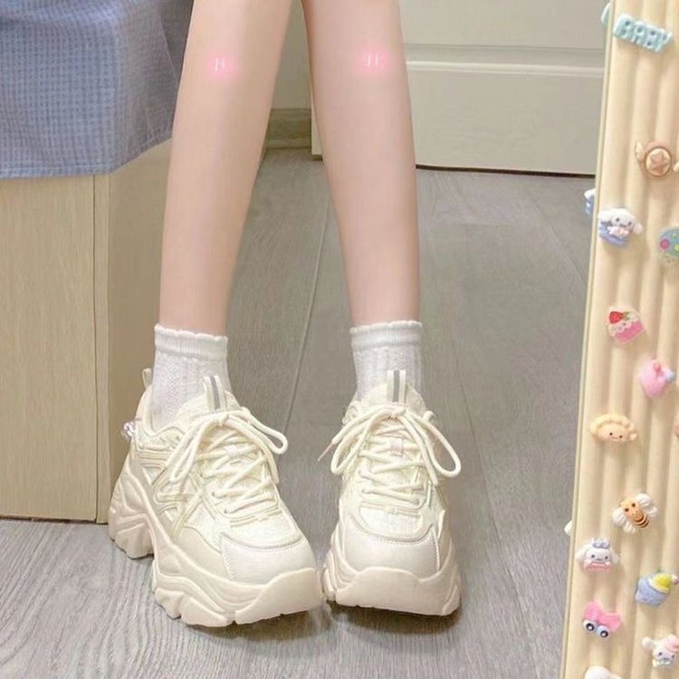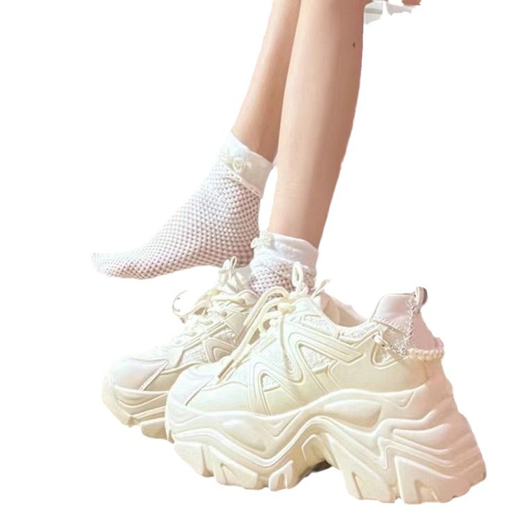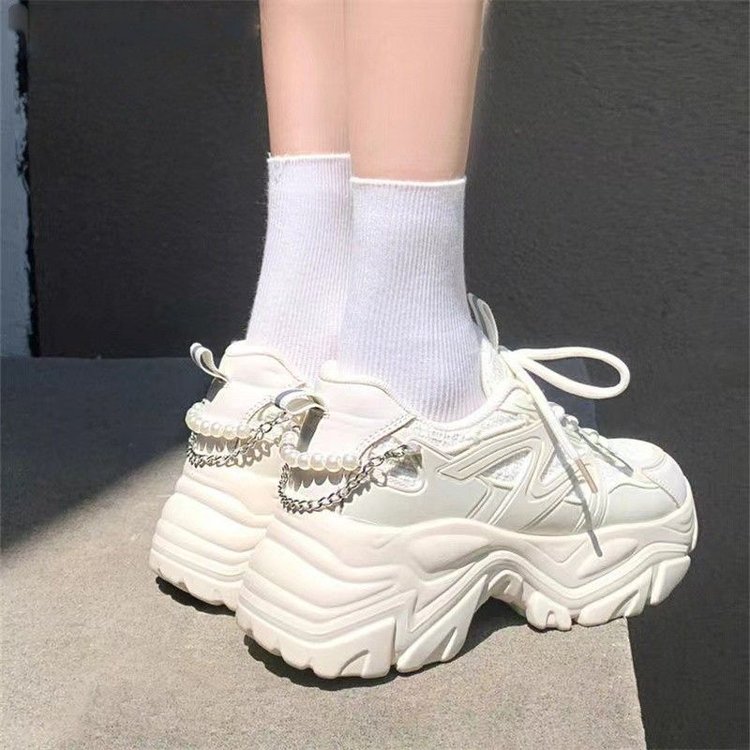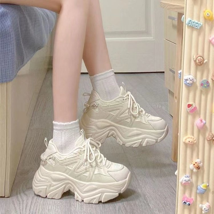 Громоздкая обувь с жемчужной цепочкой для женщин 2024 года, весна и осень, новые дышащие универсальные повседневные кроссовки на платформе