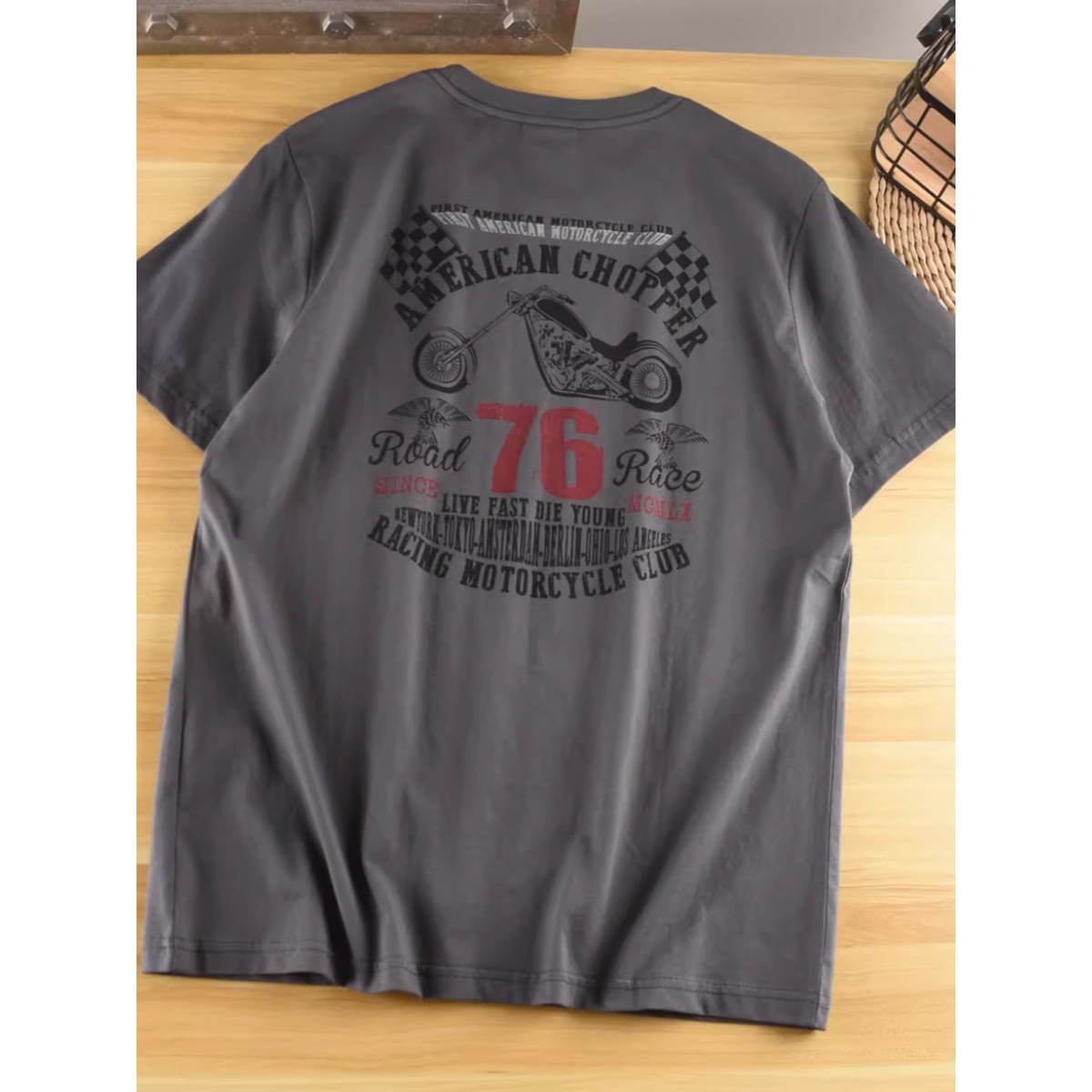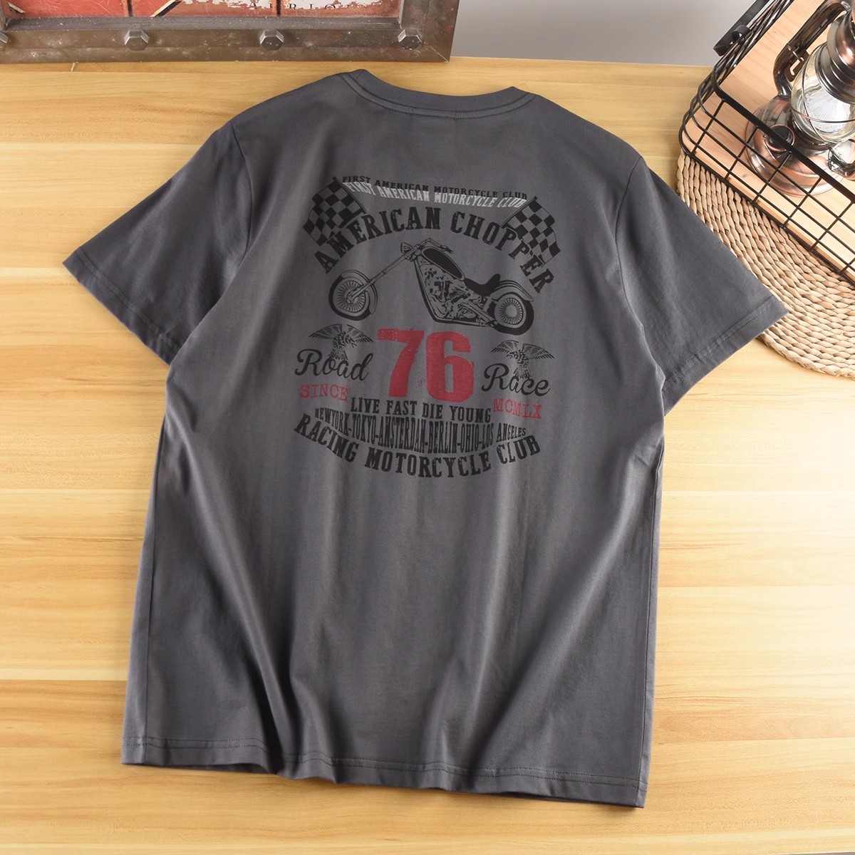 Модный бренд хорошо носить! Ткань является характерной! Стираная ретро с круглым вырезом Мужская старая американская внешняя торговля футболка с коротким рукавом H