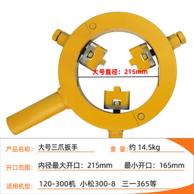 Ключ на два когтя (с винтами); Ключ Tuhao Gold с двумя когтями (с винтами); Высококачественный желтый гаечный ключ с двумя когтями (с винтами); Длинный ключ для масляных сальников; Длинный ключ для масляных сальников; Длинный ключ для масляных сальников; Маленький универсальный трёхгрубый ключ; Средний универсальный трёхсекционный ключ; Большой универсальный трёхгрубый ключ; Один желтый высококачественный инструмент для зубьев ковша; Ключ очень маленького размера с четырьмя когтями; Ключ маленького размера на четыре когтя; Средний ключ на четыре когтя; Четыре-коготь большой четыре-коготь; Очень большой гаечный ключ на четыре когтя; Негабаритный ключ на четыре когтя; Ключ с шестью когтями (специально для интеллекта Шаньхэ); Один вращающийся моторный ключ; Большой двухзахватный гаечный ключ, улучшенная версия с гальваническим покрытием (включая винты); Маленький двухзахватный ключ, обновленный до версии с гальваническим покрытием (включая винты).; Большой гайковерт, специальная модель для Sany Liugong и других отечественных машин.; Специальный гаечный ключ Hitachi, квадратная гайка,
