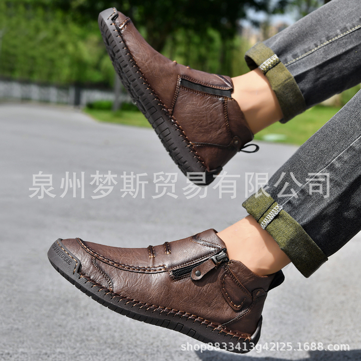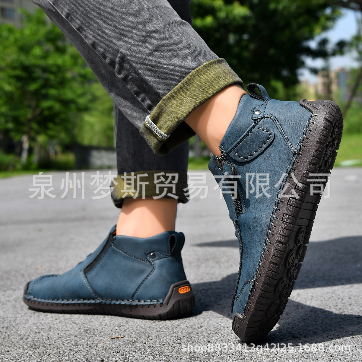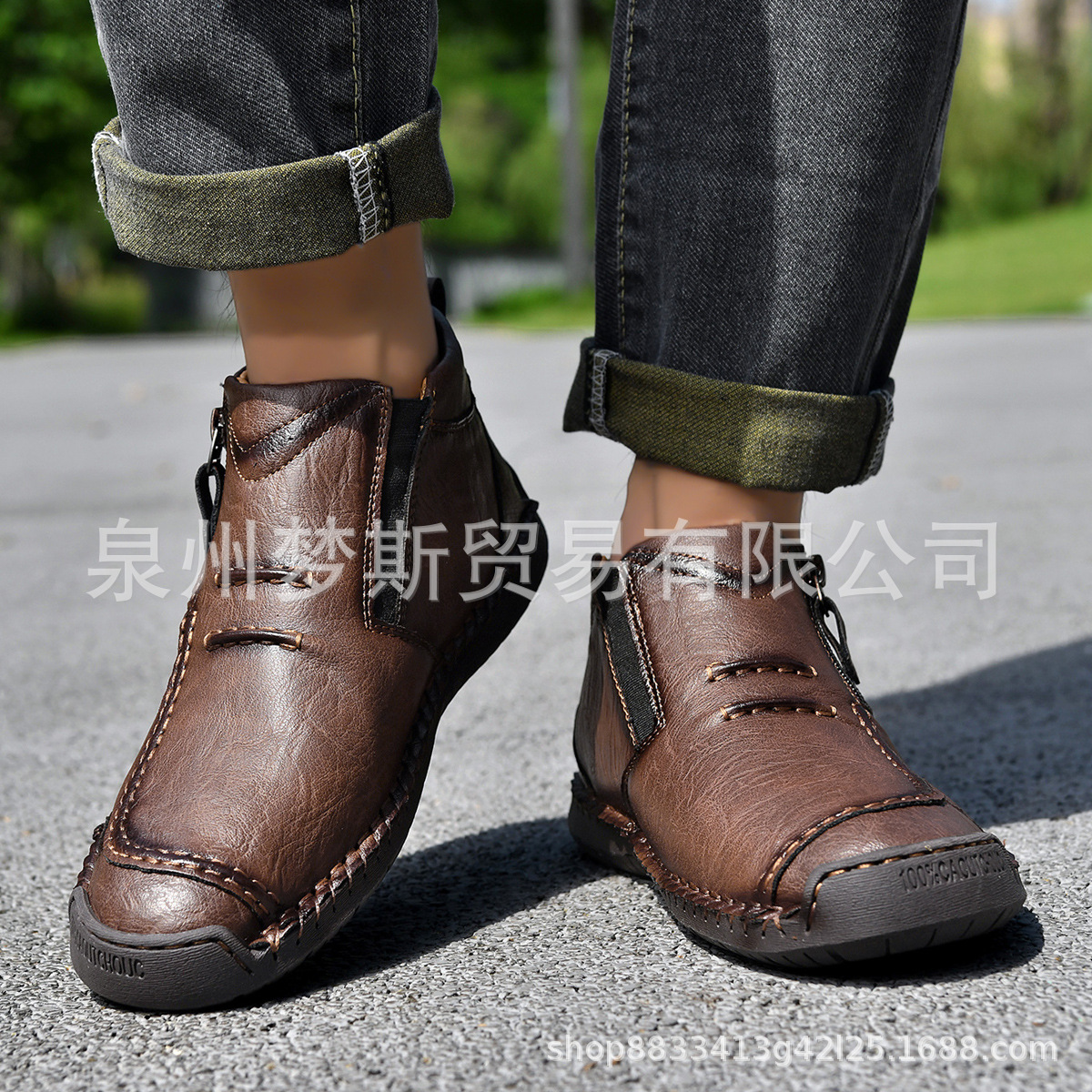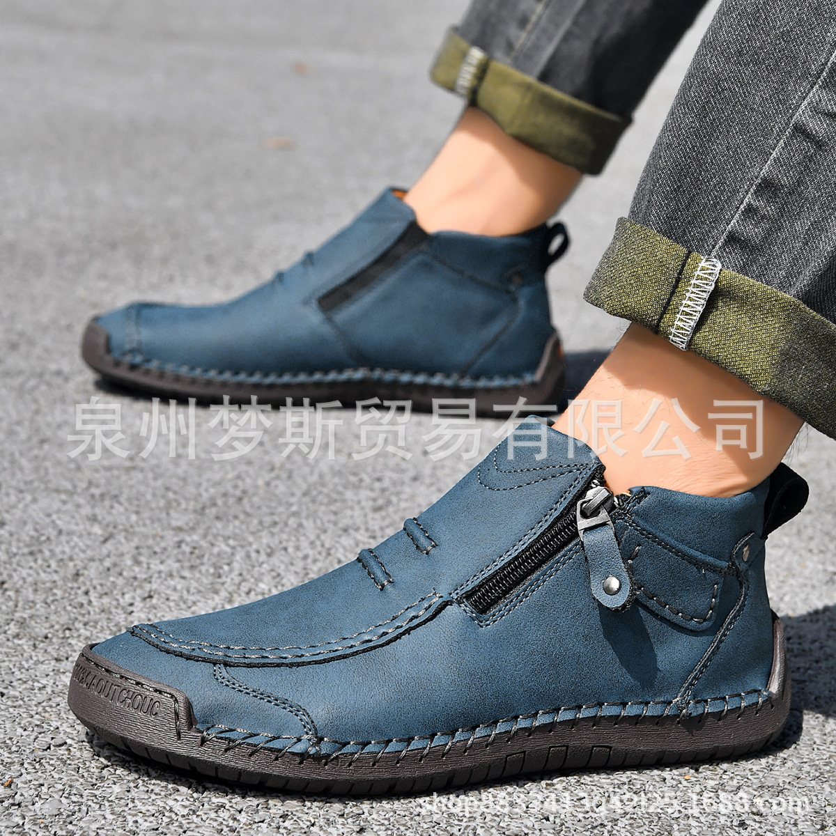 Популярные на Amazon мужские ботинки средней высоты, большие размеры 48, ботинки в стиле Мартин, ретро-мужские повседневные туфли, ботинки ручной работы.