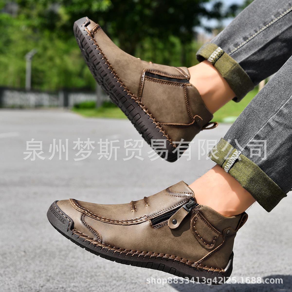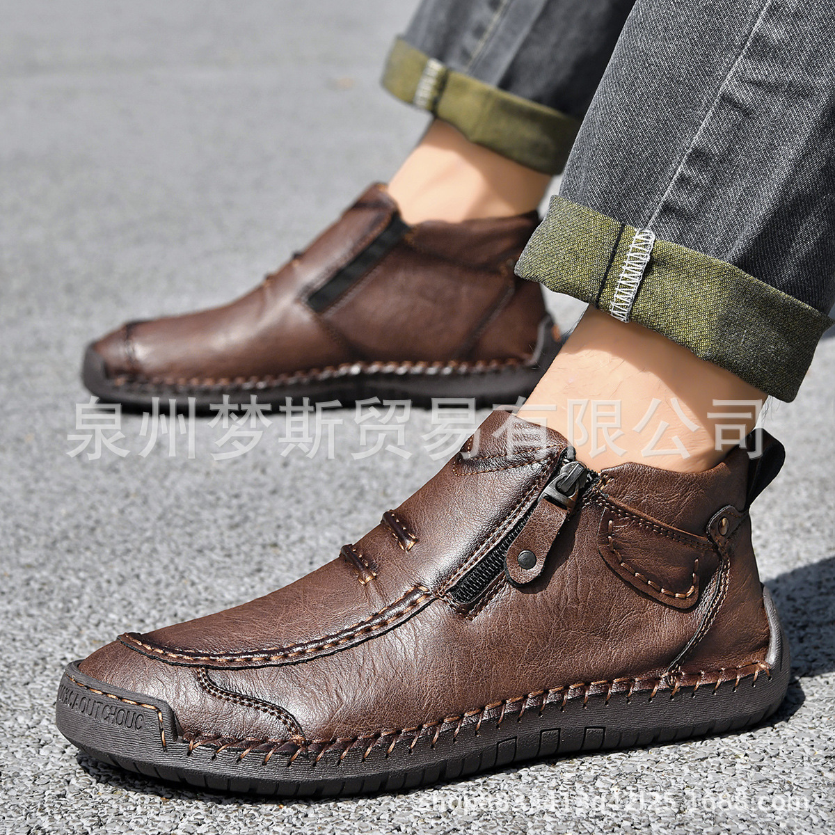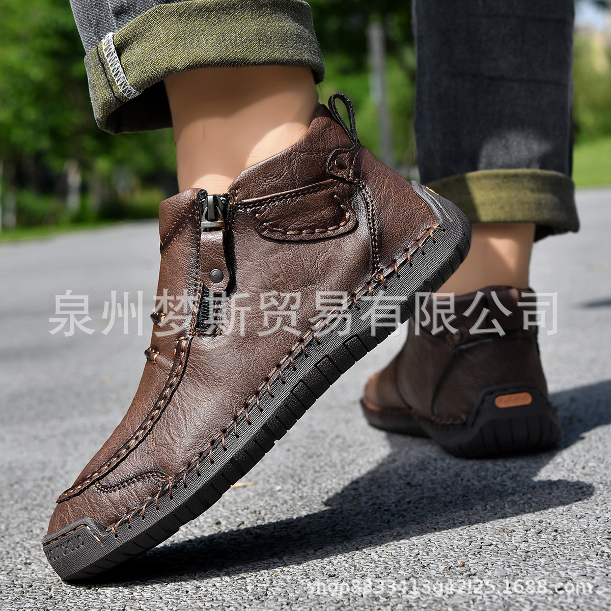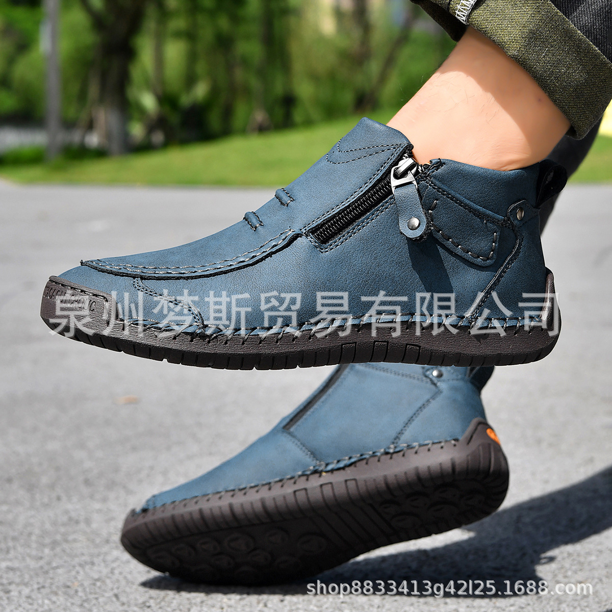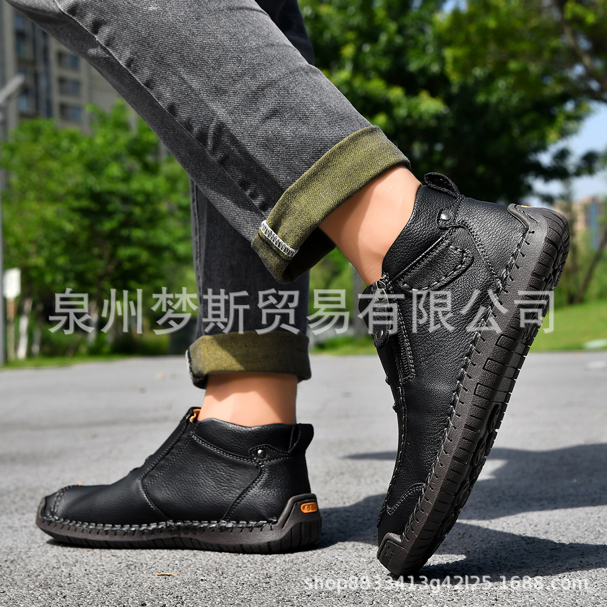 Популярные на Amazon мужские ботинки средней высоты, большие размеры 48, ботинки в стиле Мартин, ретро-мужские повседневные туфли, ботинки ручной работы.
