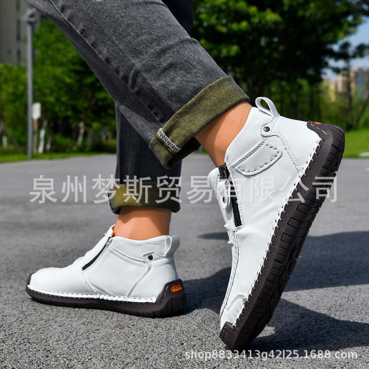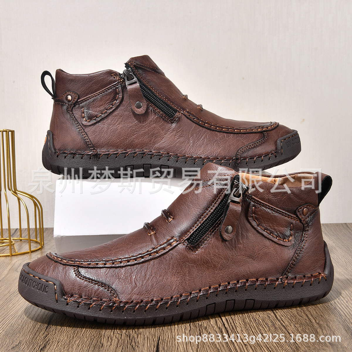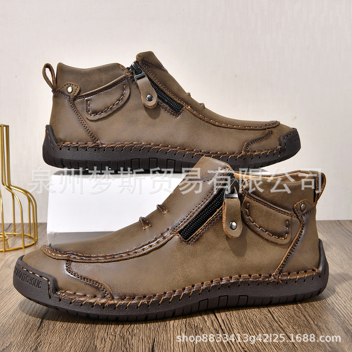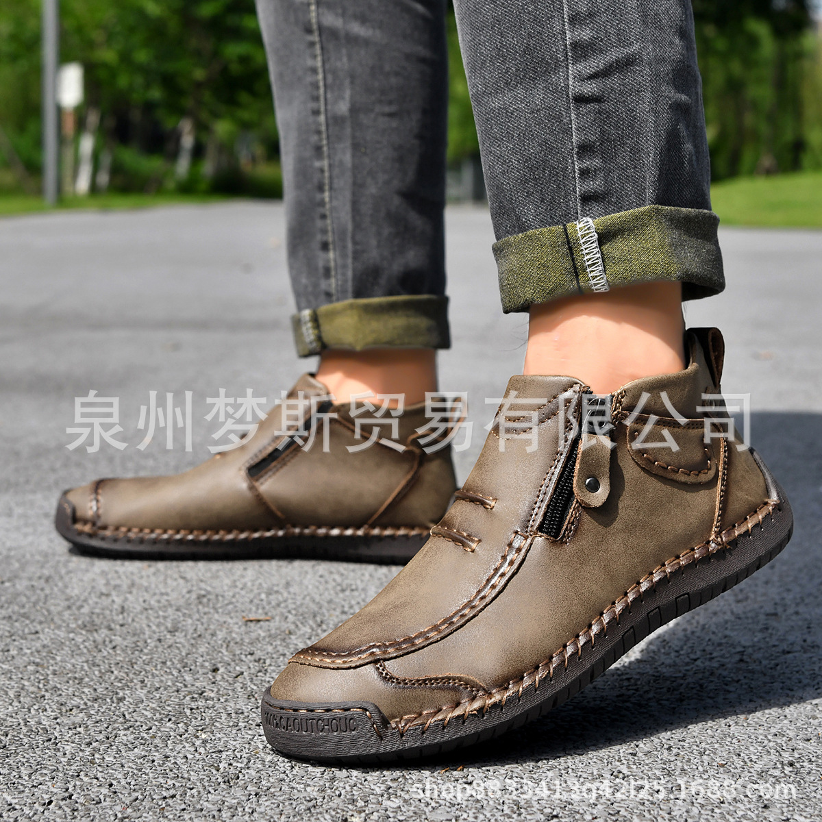 Популярные на Amazon мужские ботинки средней высоты, большие размеры 48, ботинки в стиле Мартин, ретро-мужские повседневные туфли, ботинки ручной работы.