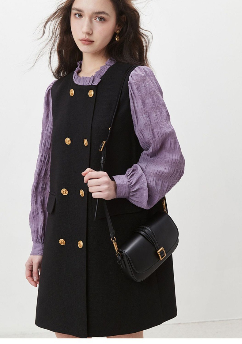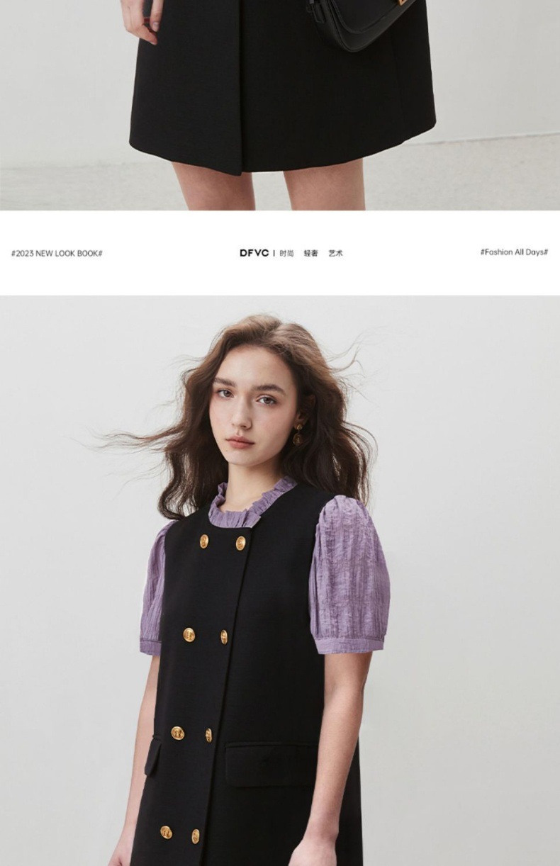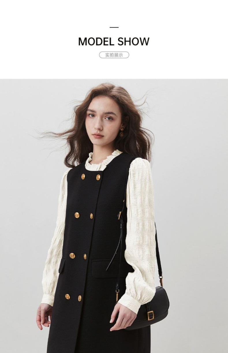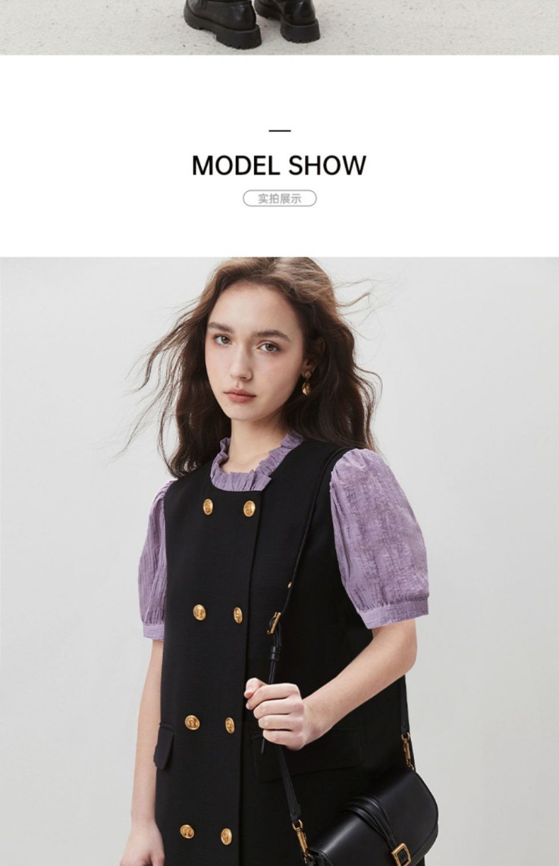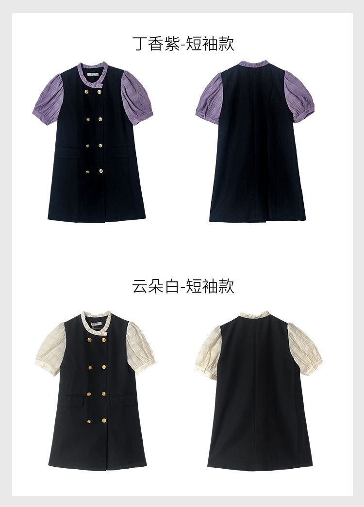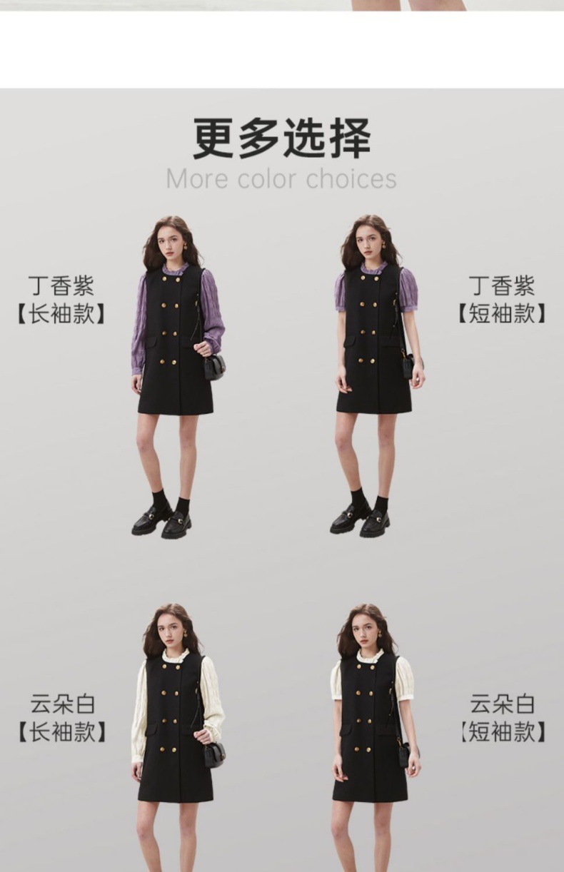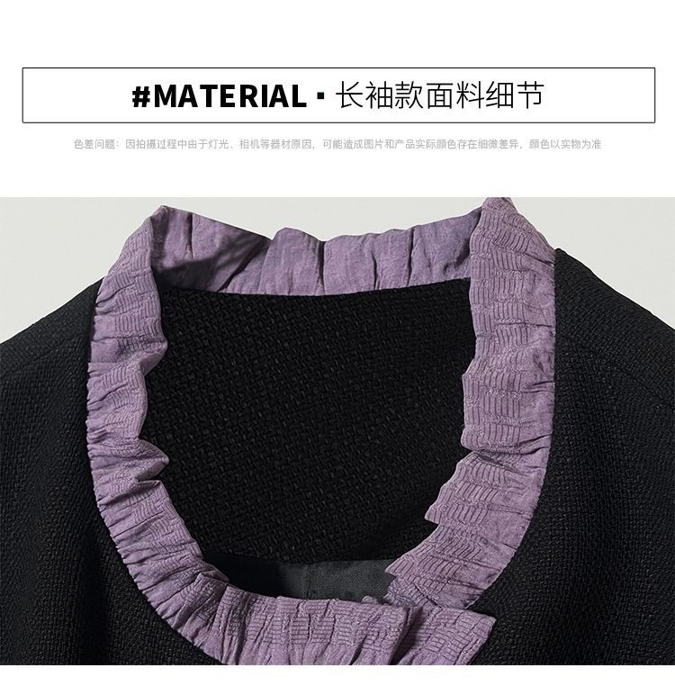 Черное платье А-силуэта с оборками для миниатюрных женщин, новинка 2025 года, винтажное, с лоскутным узором, длинными рукавами, круглым вырезом, короткими рукавами и декором на пуговицах.
