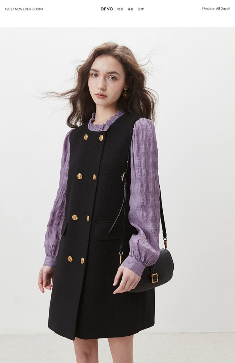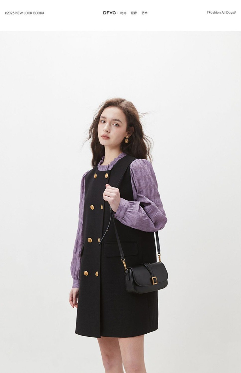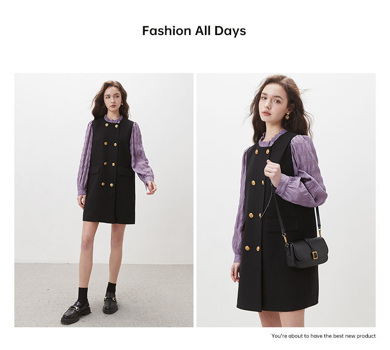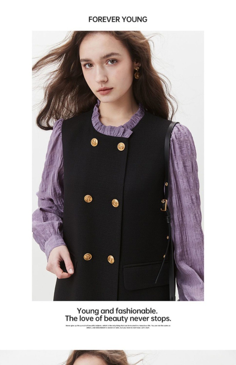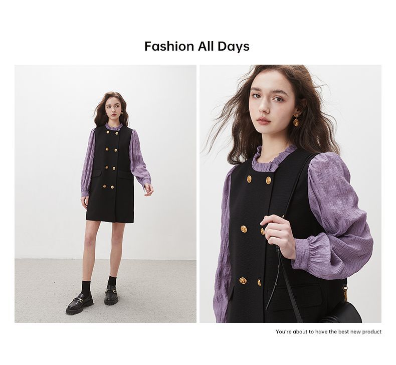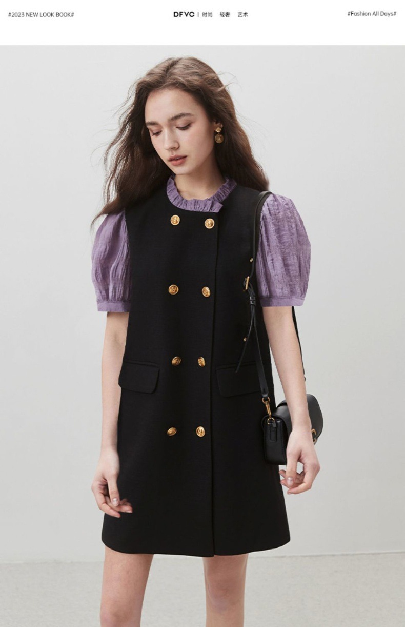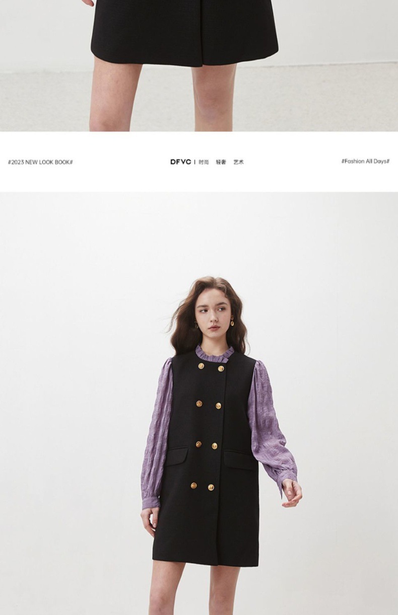 Черное платье А-силуэта с оборками для миниатюрных женщин, новинка 2025 года, винтажное, с лоскутным узором, длинными рукавами, круглым вырезом, короткими рукавами и декором на пуговицах.