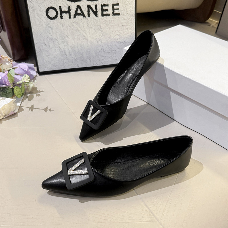 Весна и лето 2024 года, новые простые элегантные однослойные туфли, Женская универсальная рабочая обувь на плоской подошве с квадратной пряжкой и квадратной пряжкой, большие размеры