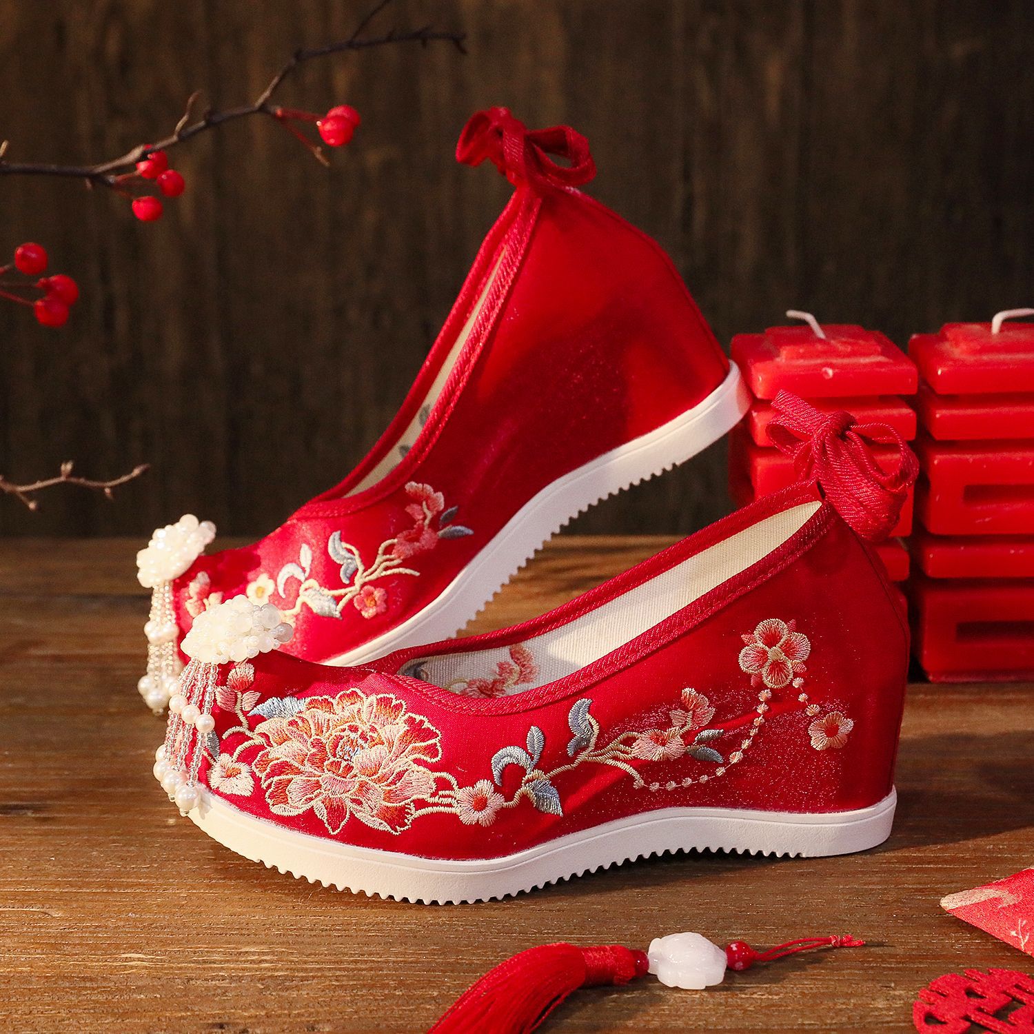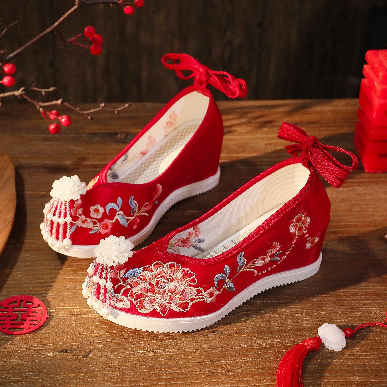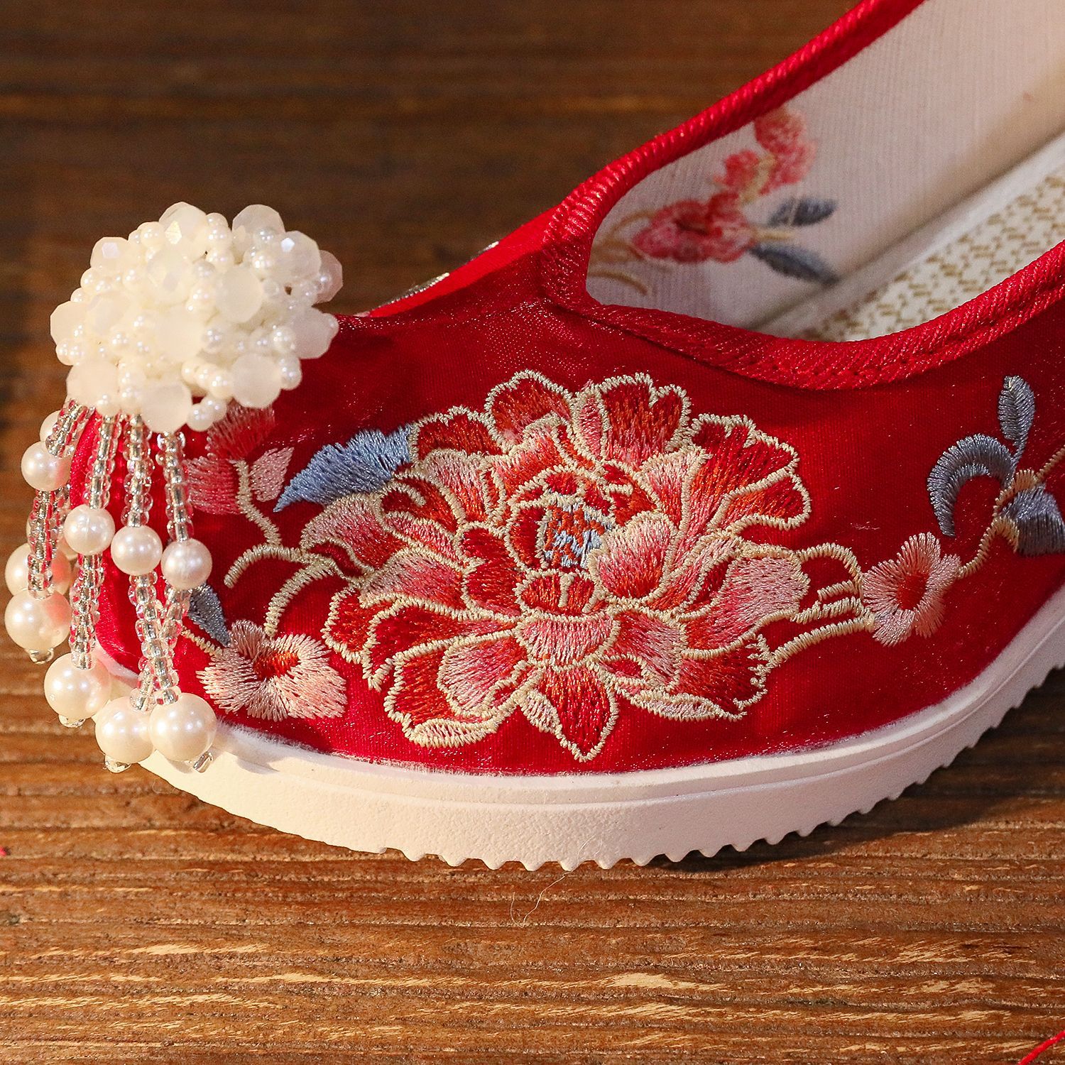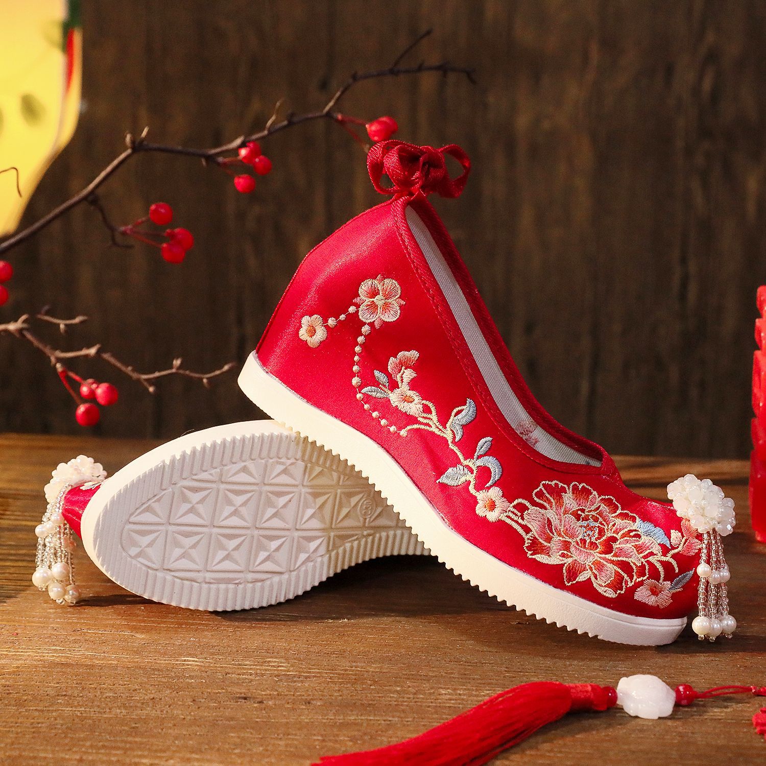 [Пион] Весна и осень Новые туфли ханьфу с кисточками, туфли с вышивкой в старинном стиле, свадебные туфли Xiuhe, китайский стиль, увеличение внутреннего роста