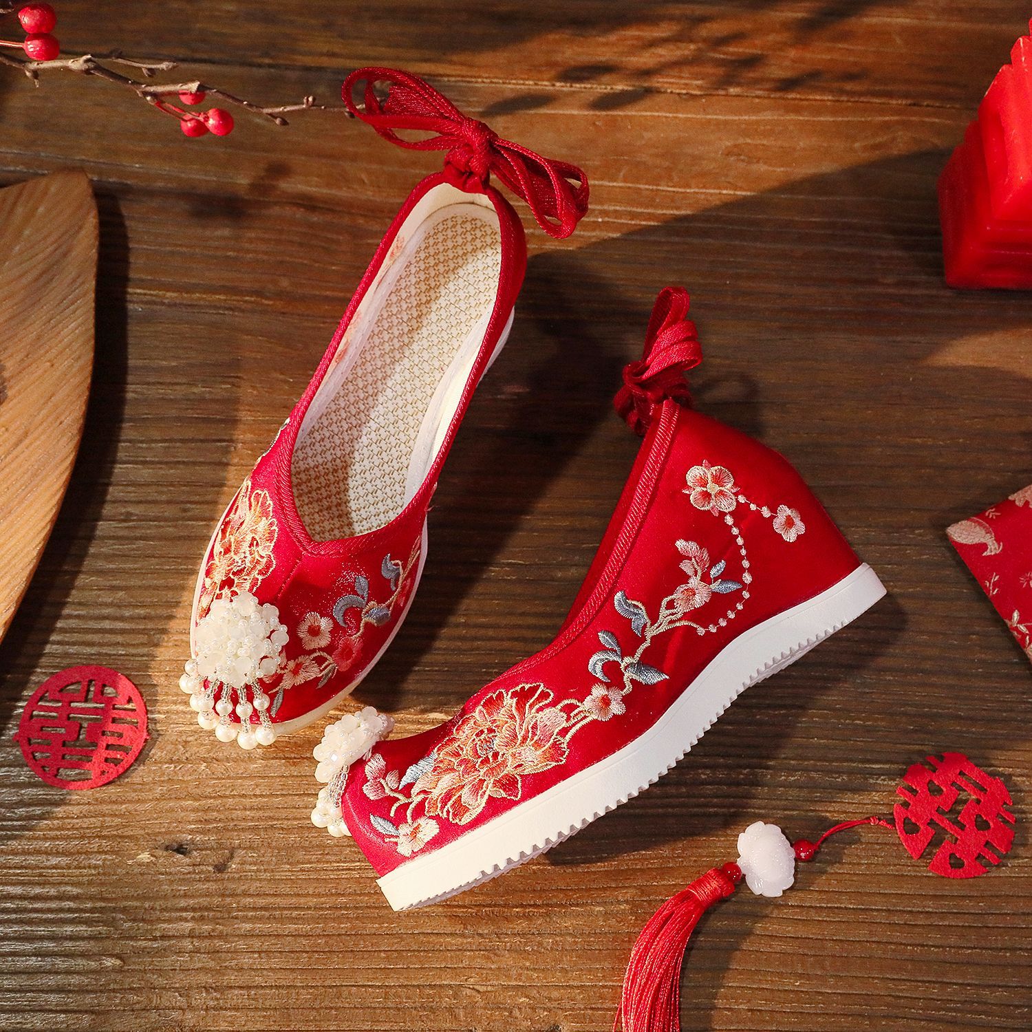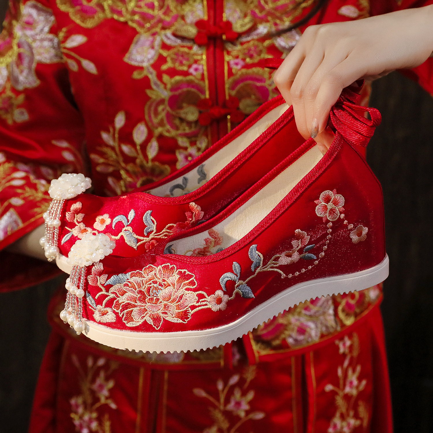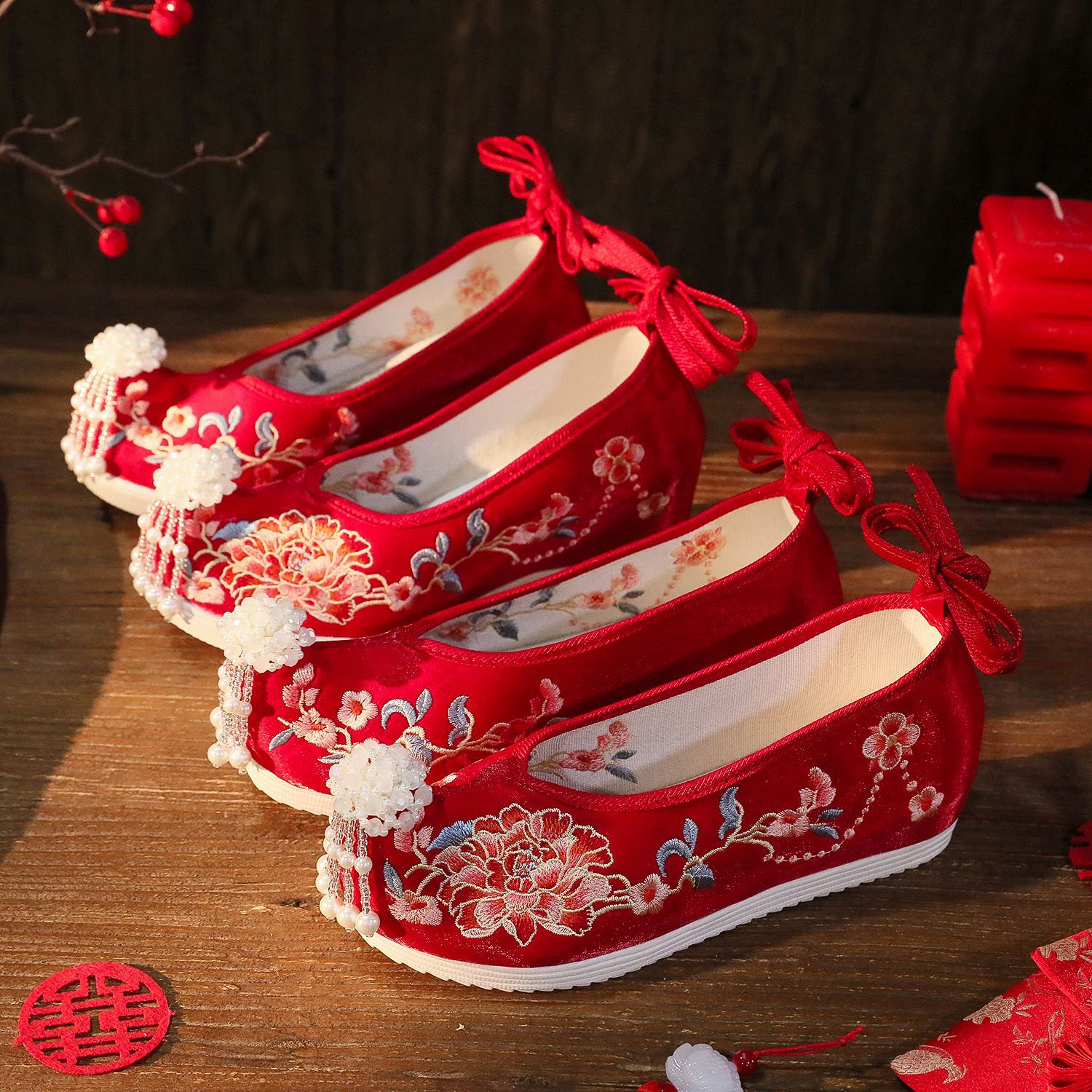 [Пион] Весна и осень Новые туфли ханьфу с кисточками, туфли с вышивкой в старинном стиле, свадебные туфли Xiuhe, китайский стиль, увеличение внутреннего роста
