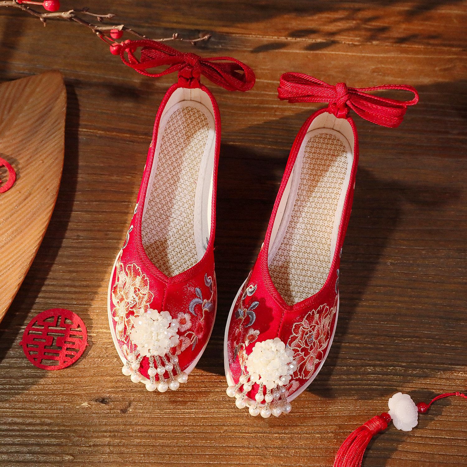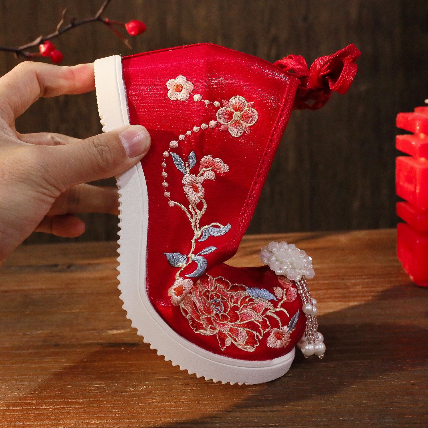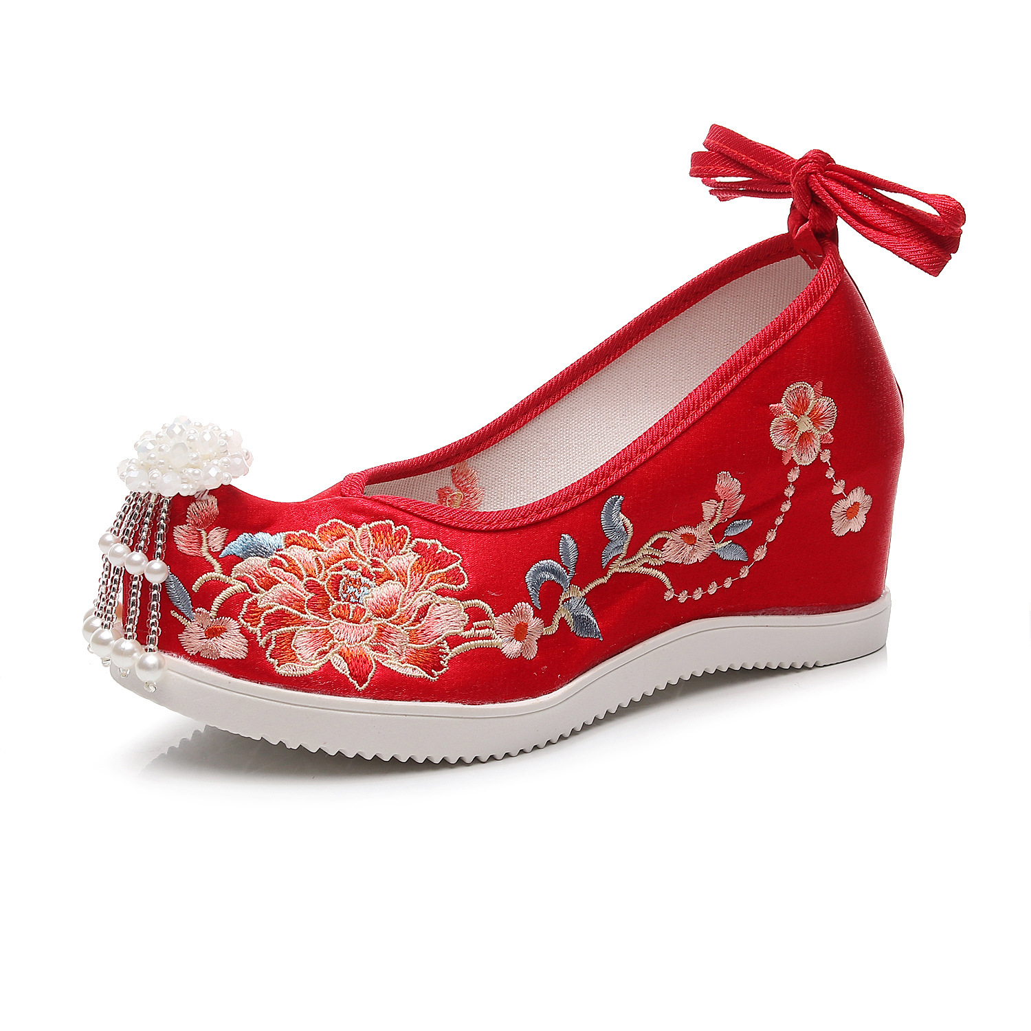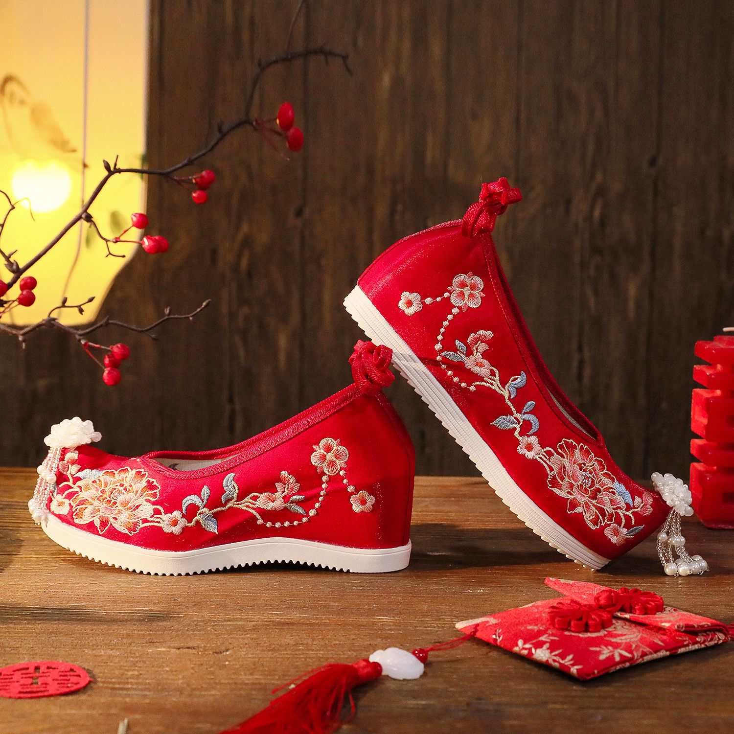 [Пион] Весна и осень Новые туфли ханьфу с кисточками, туфли с вышивкой в старинном стиле, свадебные туфли Xiuhe, китайский стиль, увеличение внутреннего роста