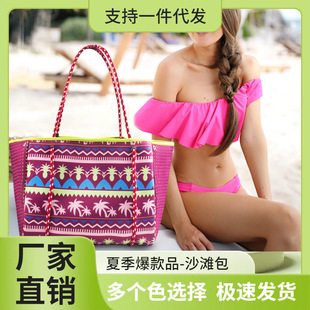 Женская сумка TEMU, новая сетчатая сумка через плечо, сумка из хлопка и льна, трансграничный тренд, соломенные тканые элементы, простые и модные