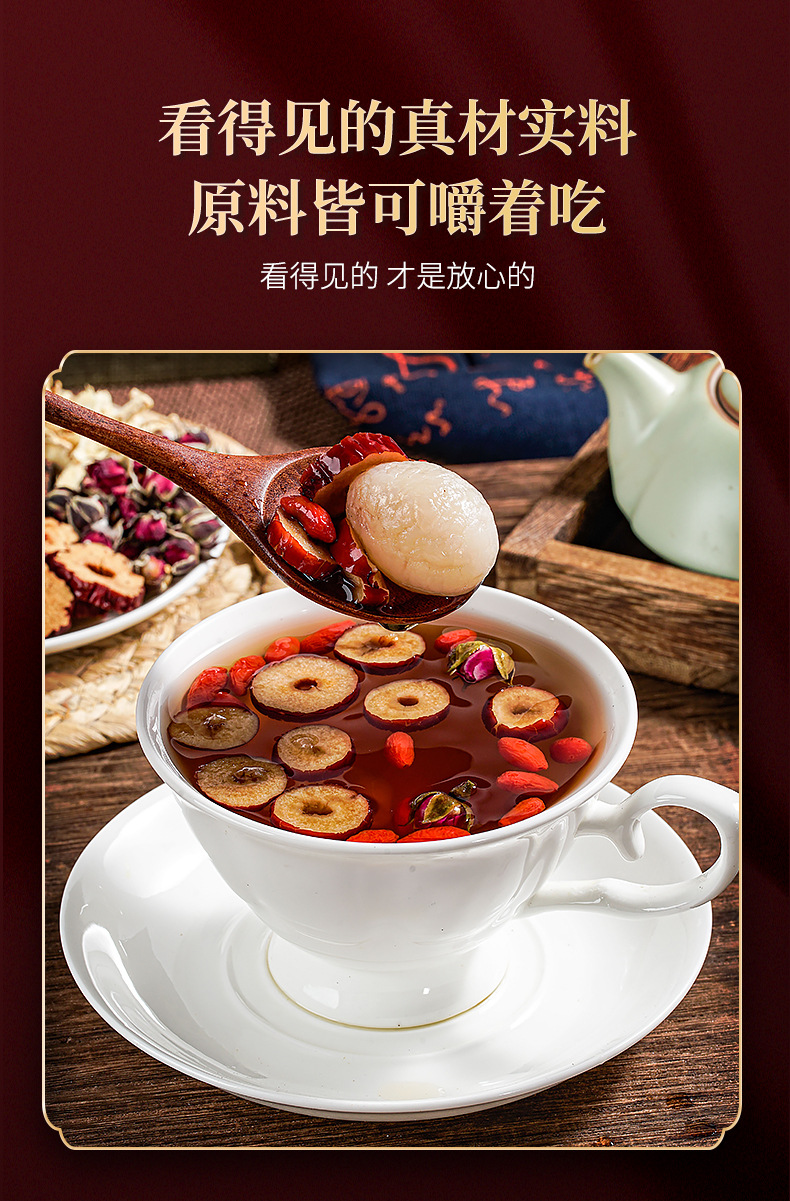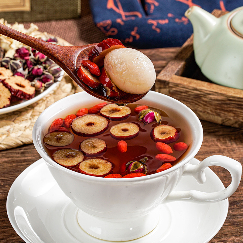Чай из коричневого сахара, имбиря и фиников, осенне-зимний чай с лонганом, ягодами годжи, розовым чаем, чай для менструации, женский чай, оптом и дистрибуция от производителя.