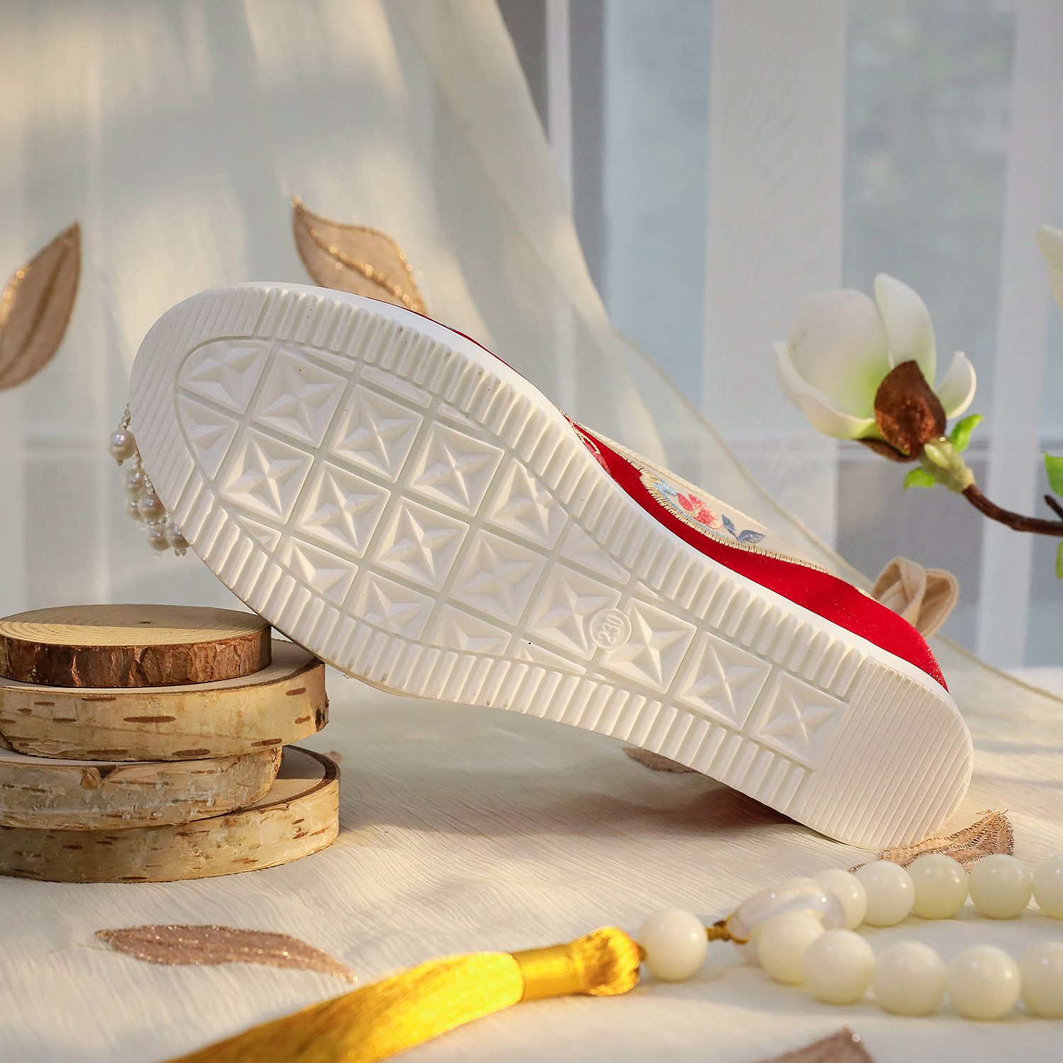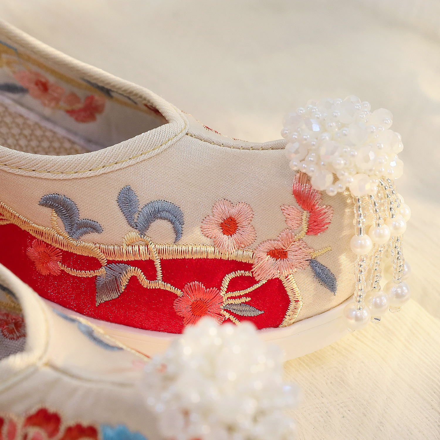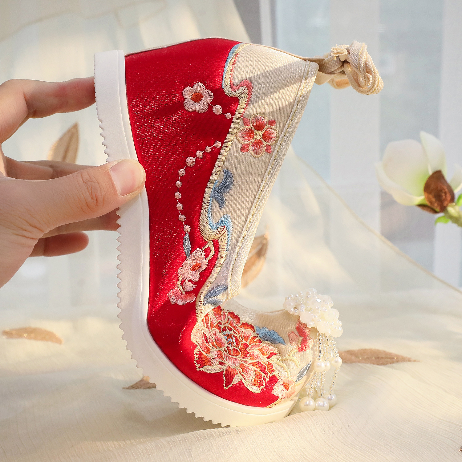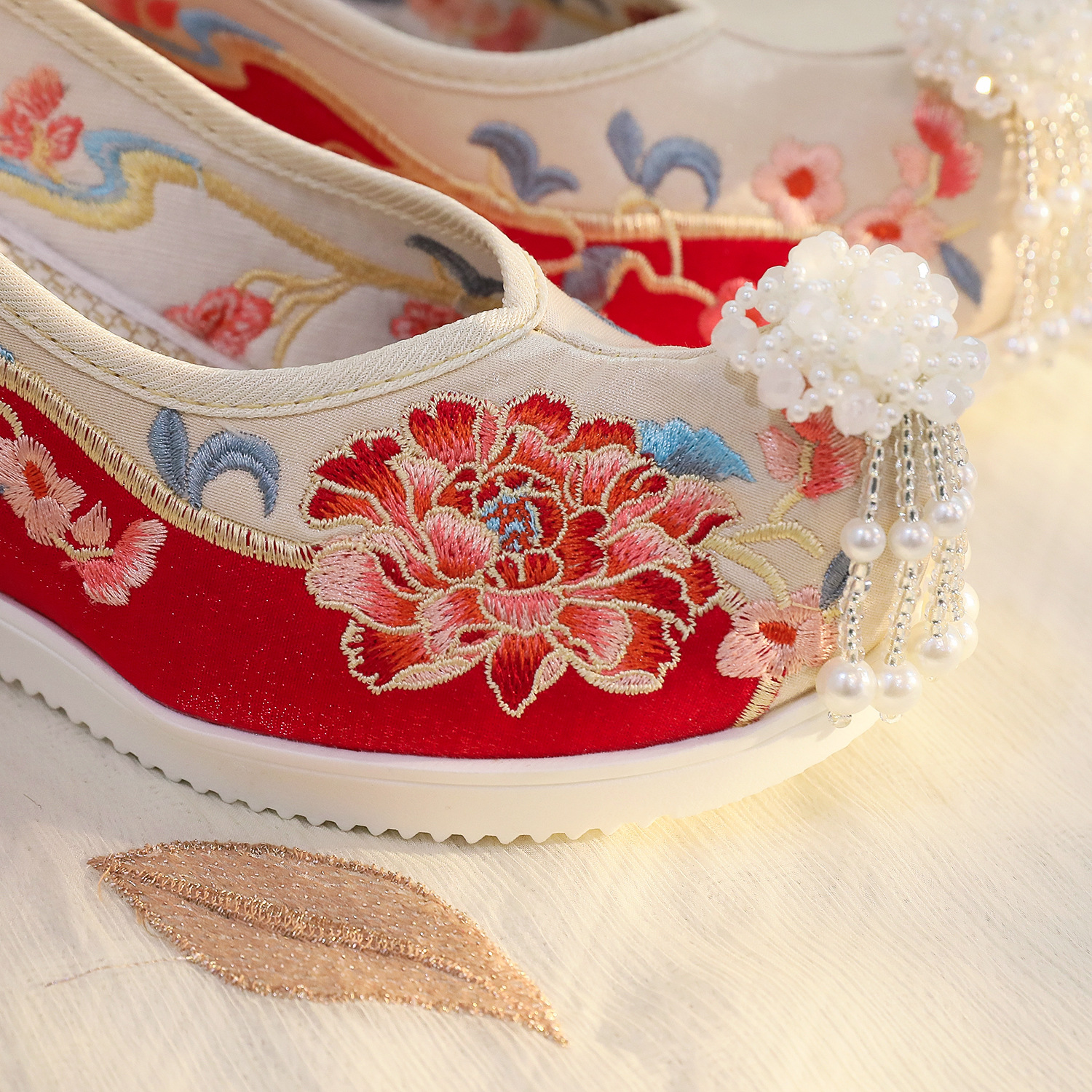 Пэчворк с бусинами пиона 6 см-высокий каблук