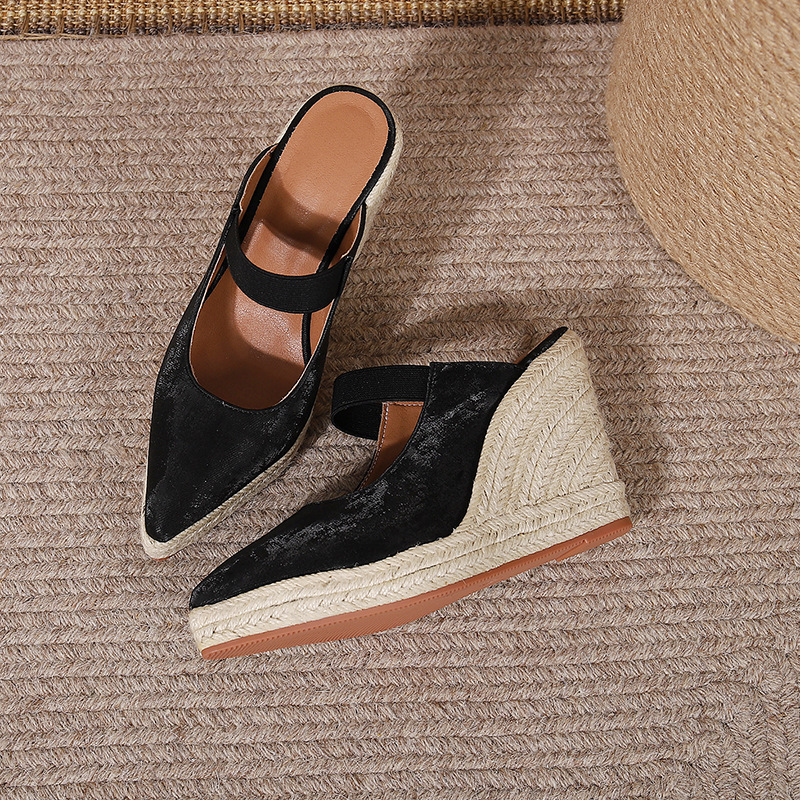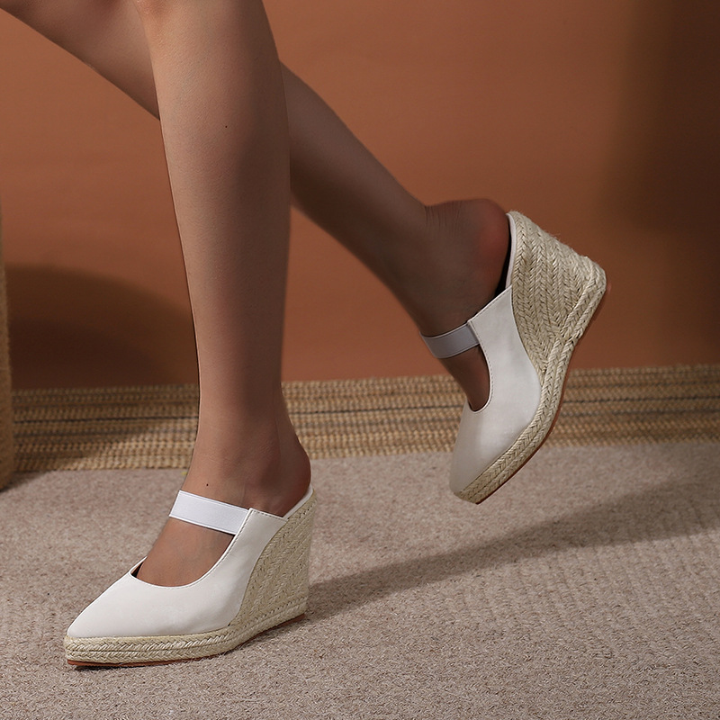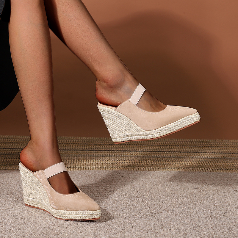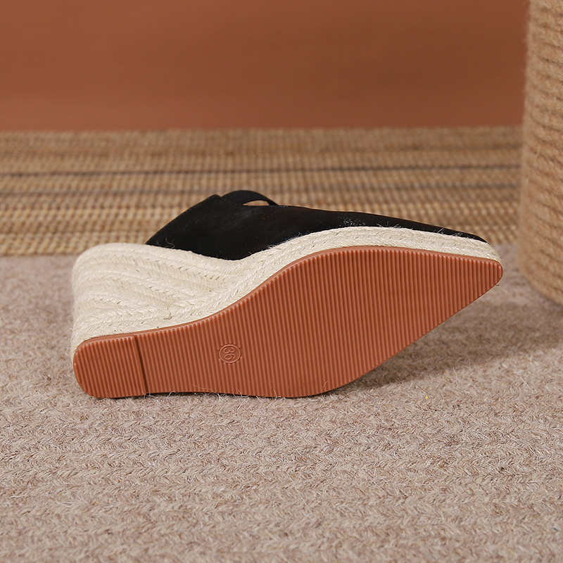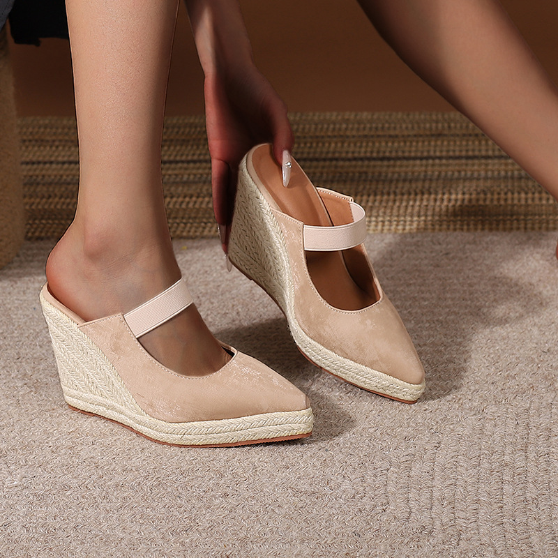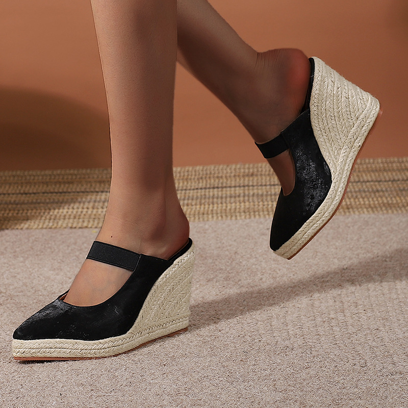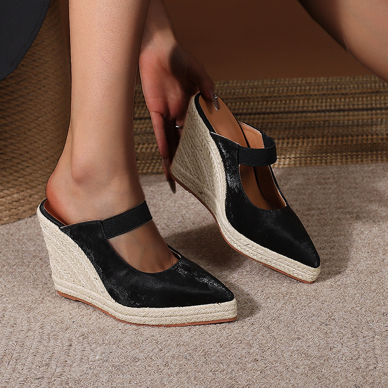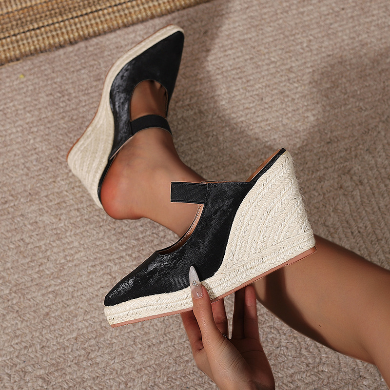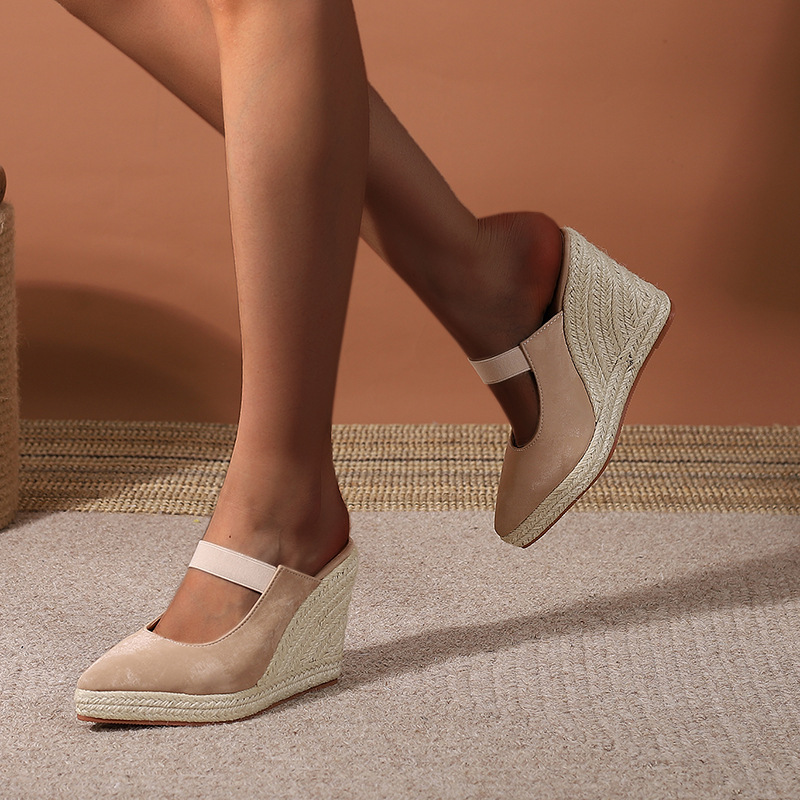 Туфли на танкетке на высоком каблуке с острым носком и закрытым носком, пустые однослойные туфли, соломенная плетеная пеньковая веревка, нижняя часть, трансграничная Внешняя торговля, Женская обувь в наличии