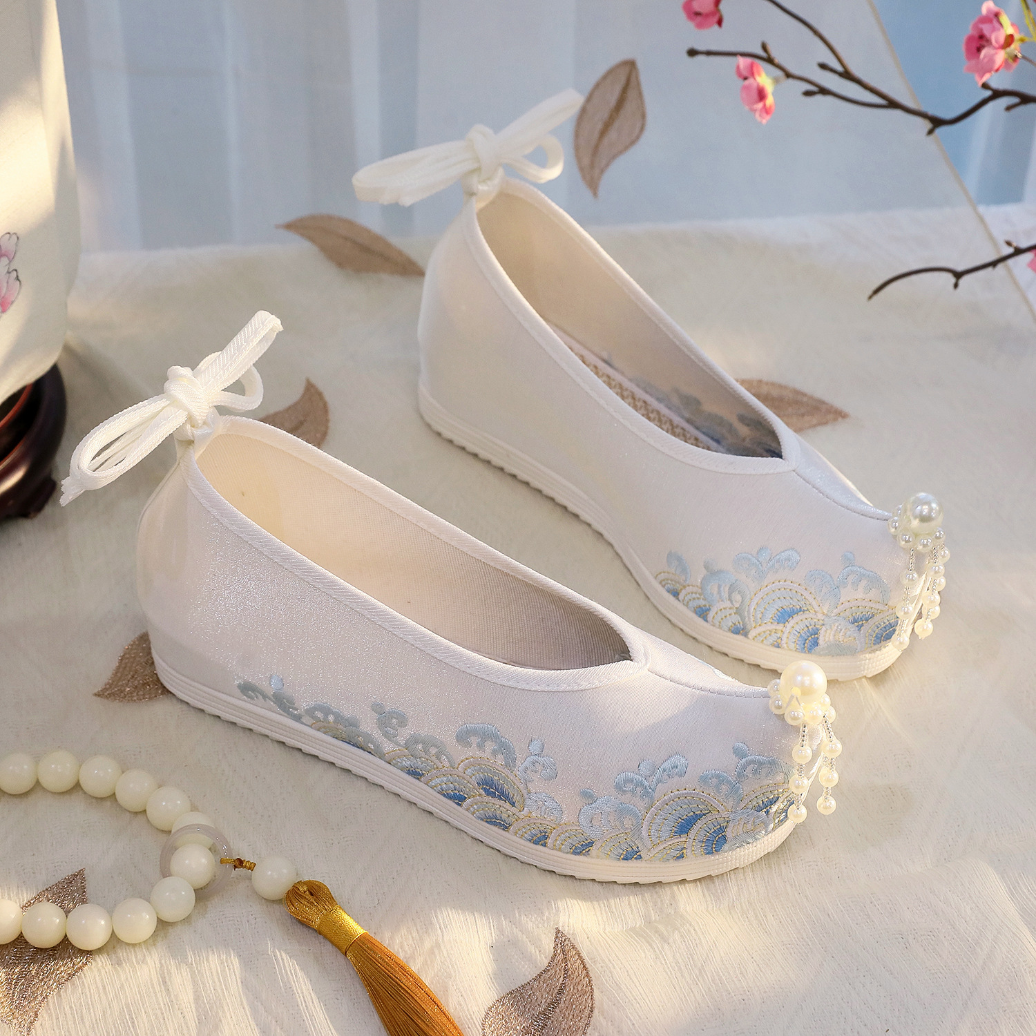 [Waves] 2024 Новая обувь ханьфу для студенток в старинном стиле, Женская подходящая ханьфу, обувь в старинном стиле, увеличивающая внутренний рост, Хань Юань