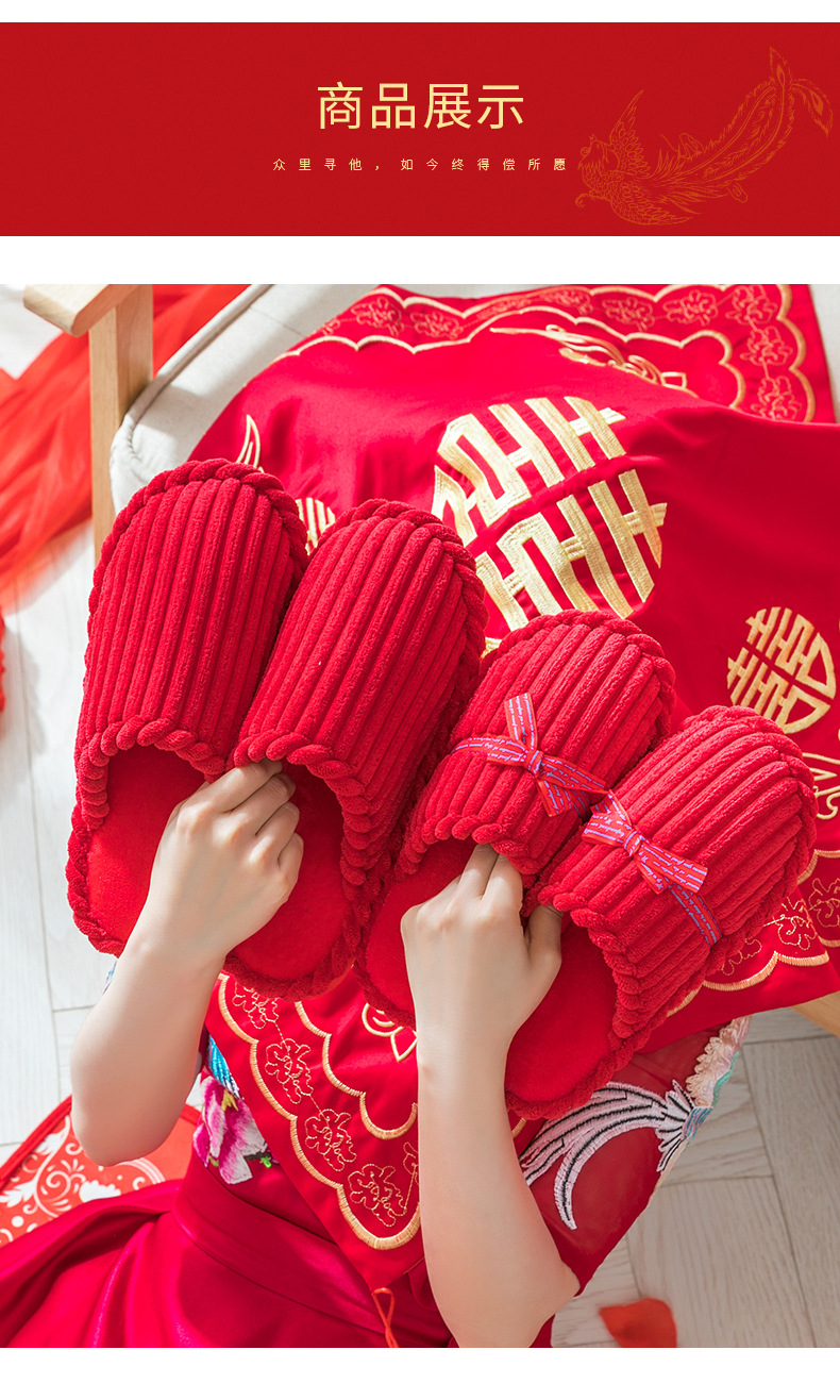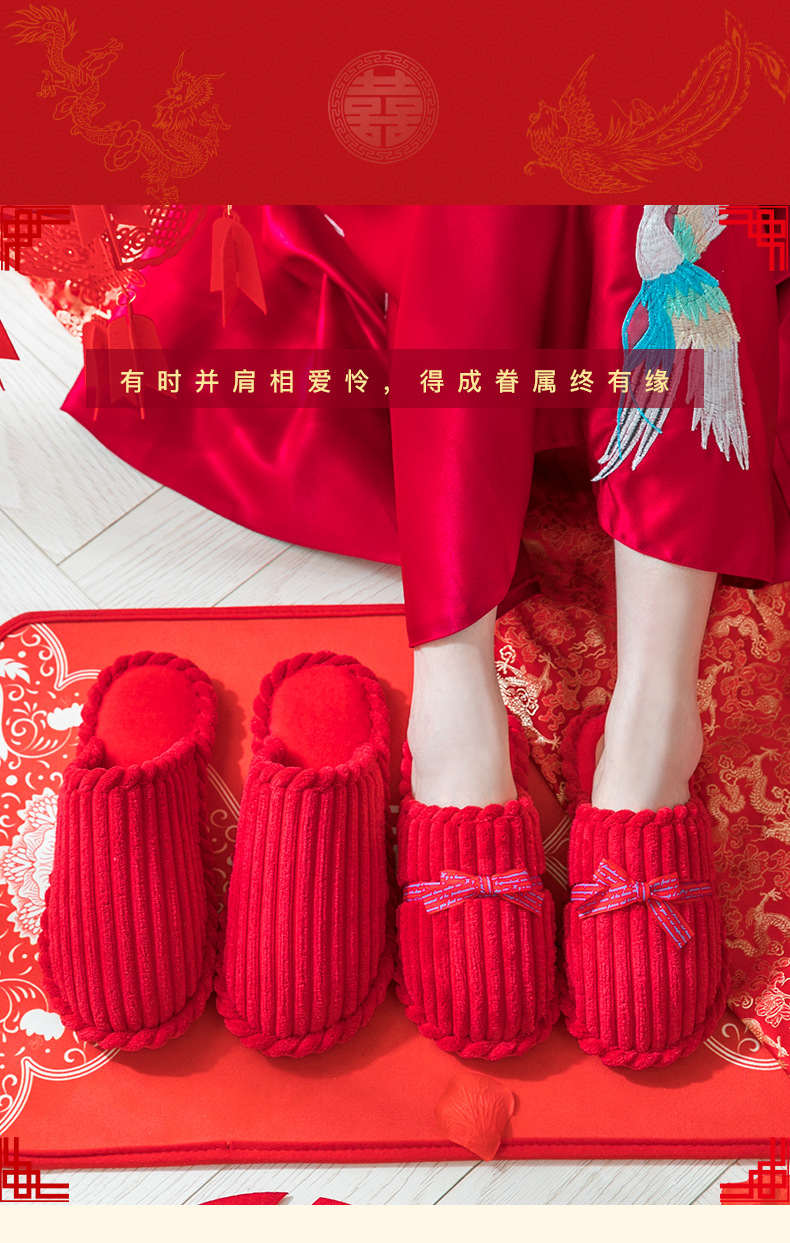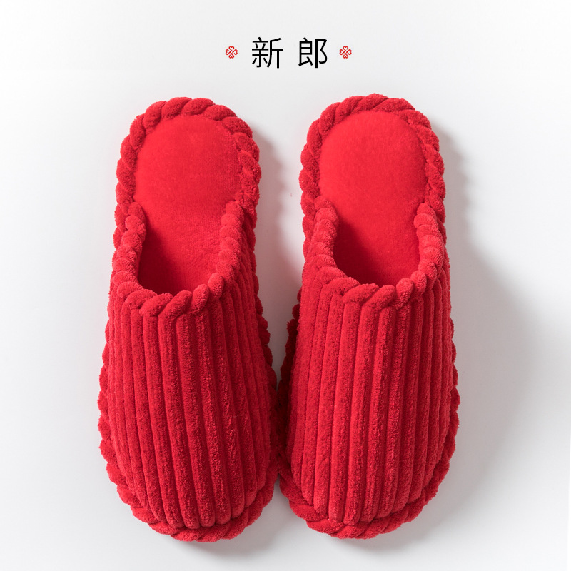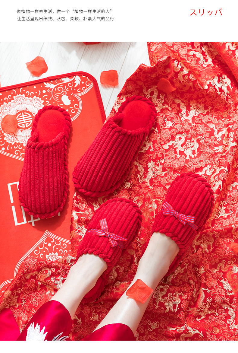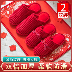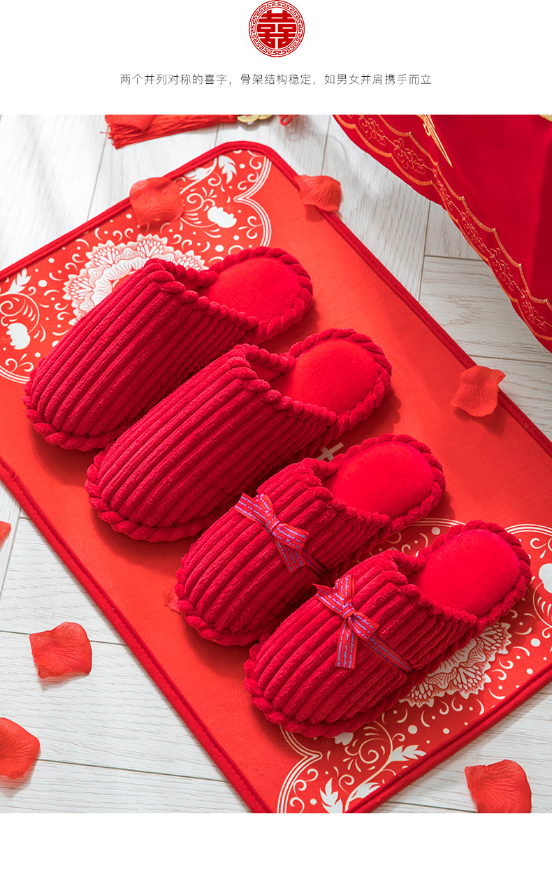 2 пары свадебных тапочек, праздничная красная пара для молодоженов, зимние хлопковые тапочки в тон халату.