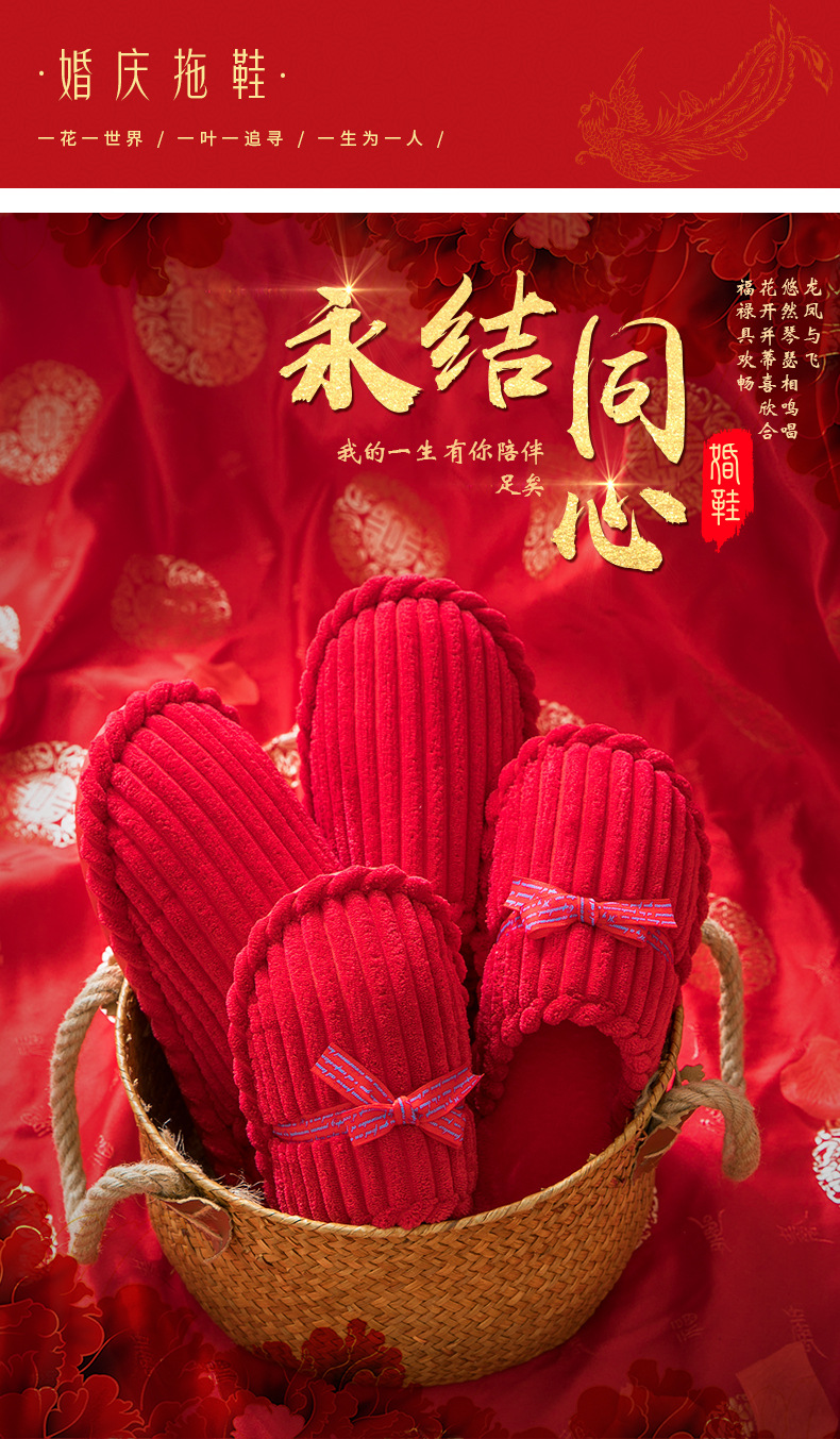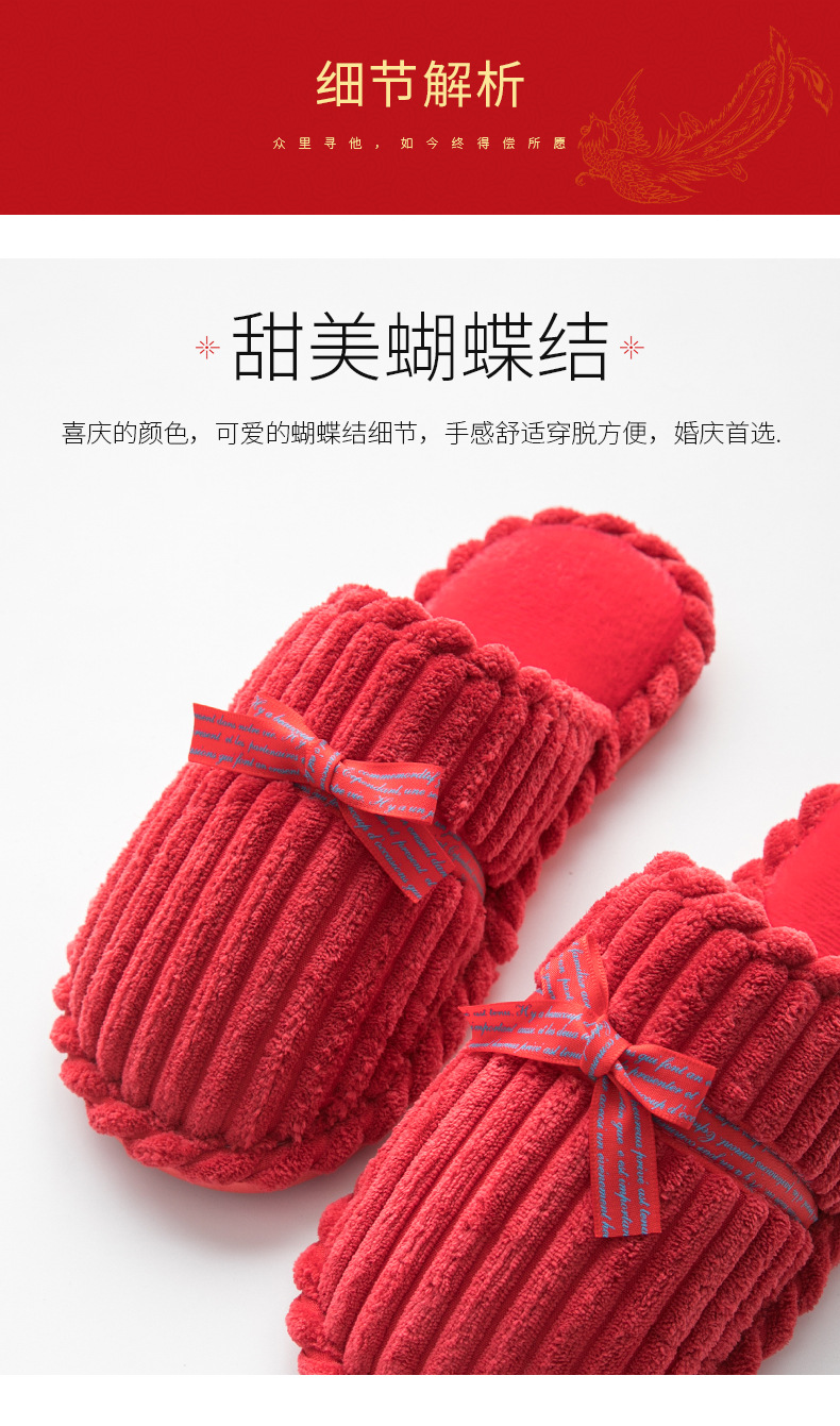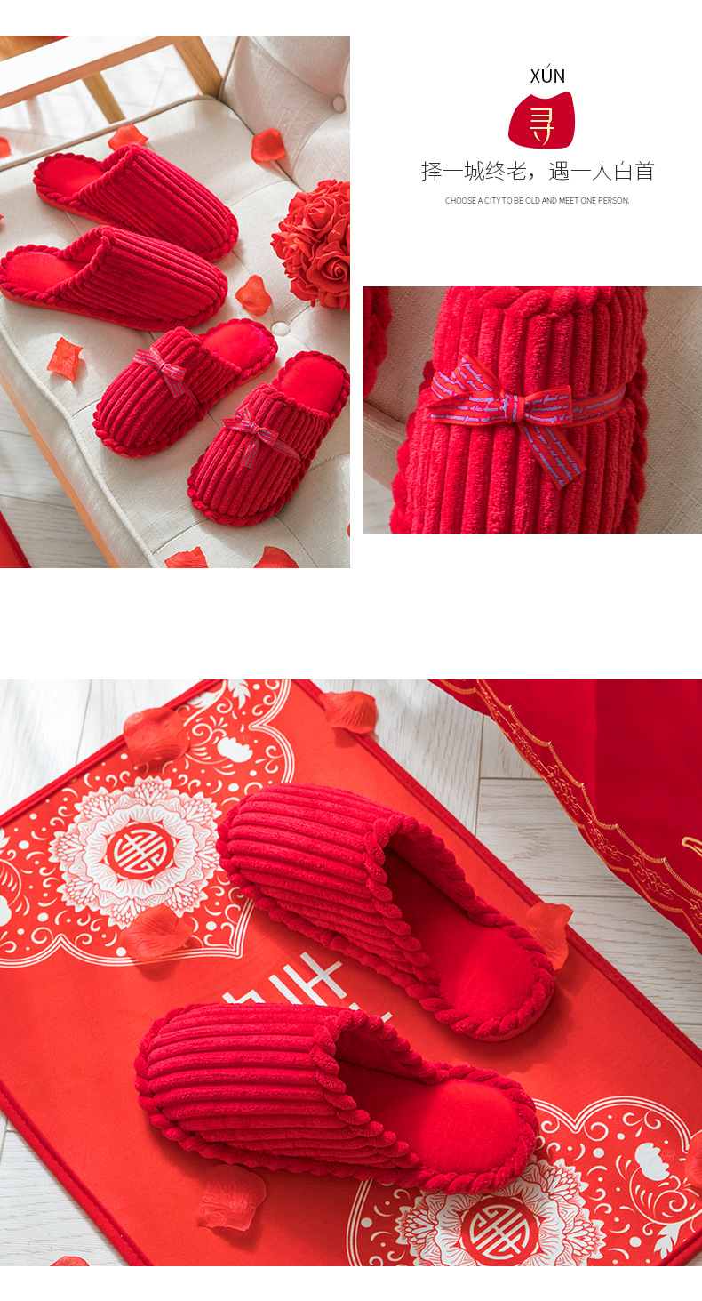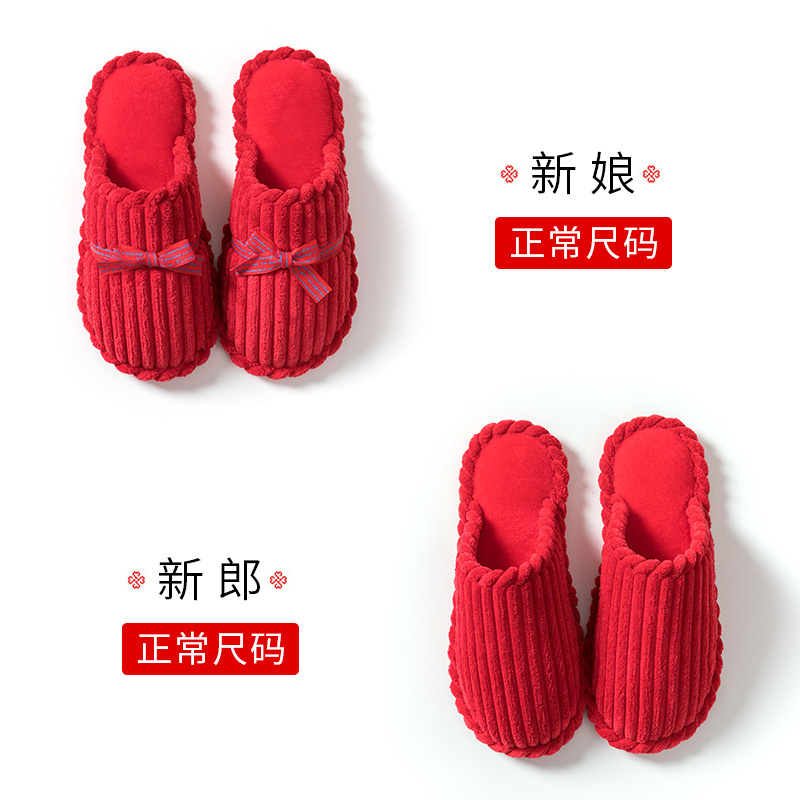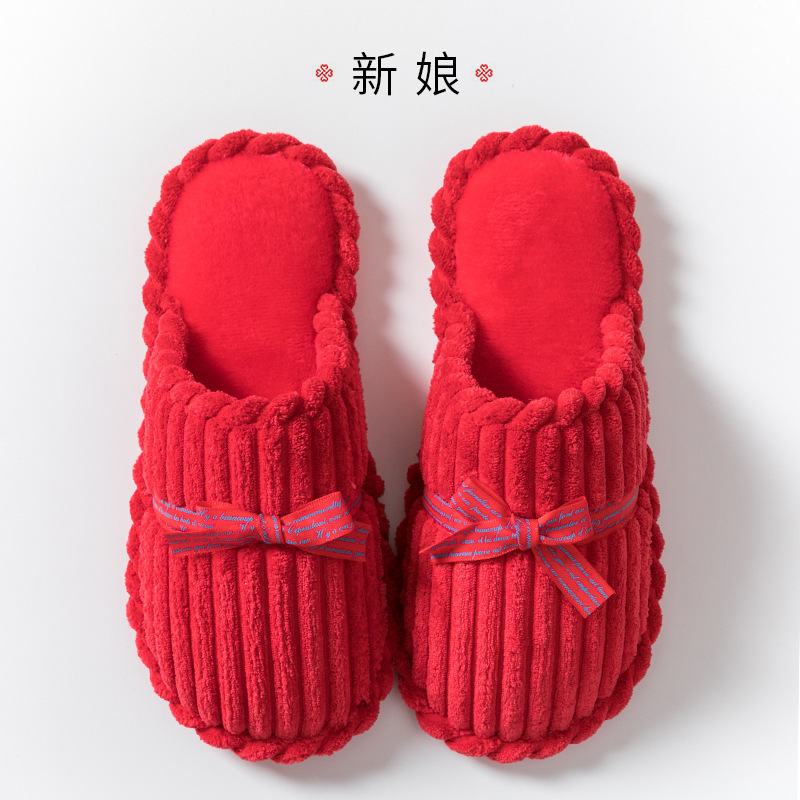 2 пары свадебных тапочек, праздничная красная пара для молодоженов, зимние хлопковые тапочки в тон халату.