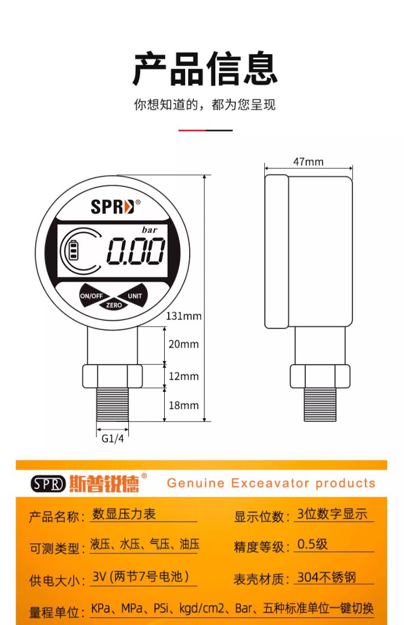 Экскаватор цифровой дисплей манометр батарея низкого высокого давления точности нержавеющей стали вакуумный гидравлический манометр костюм гидравлического давления