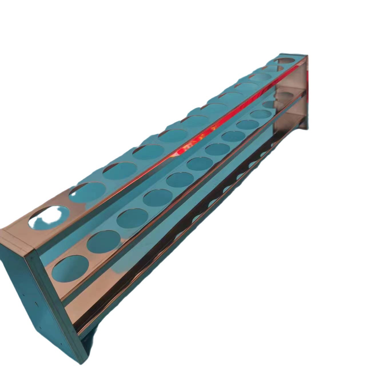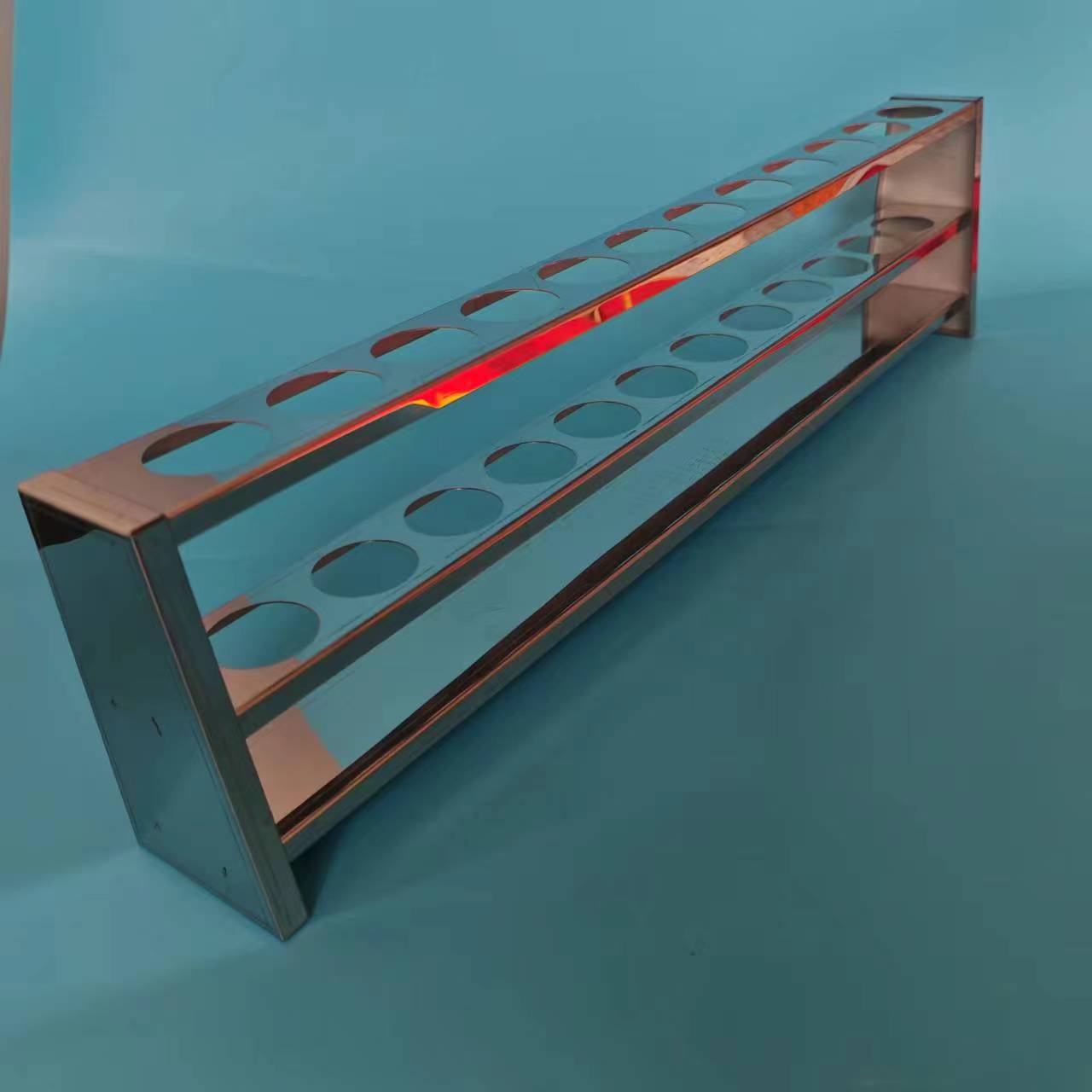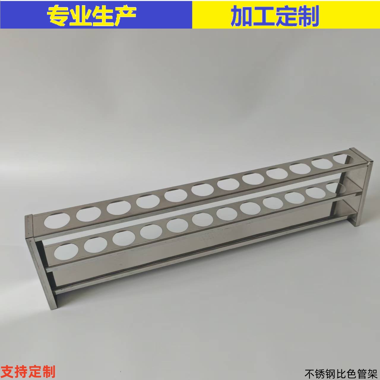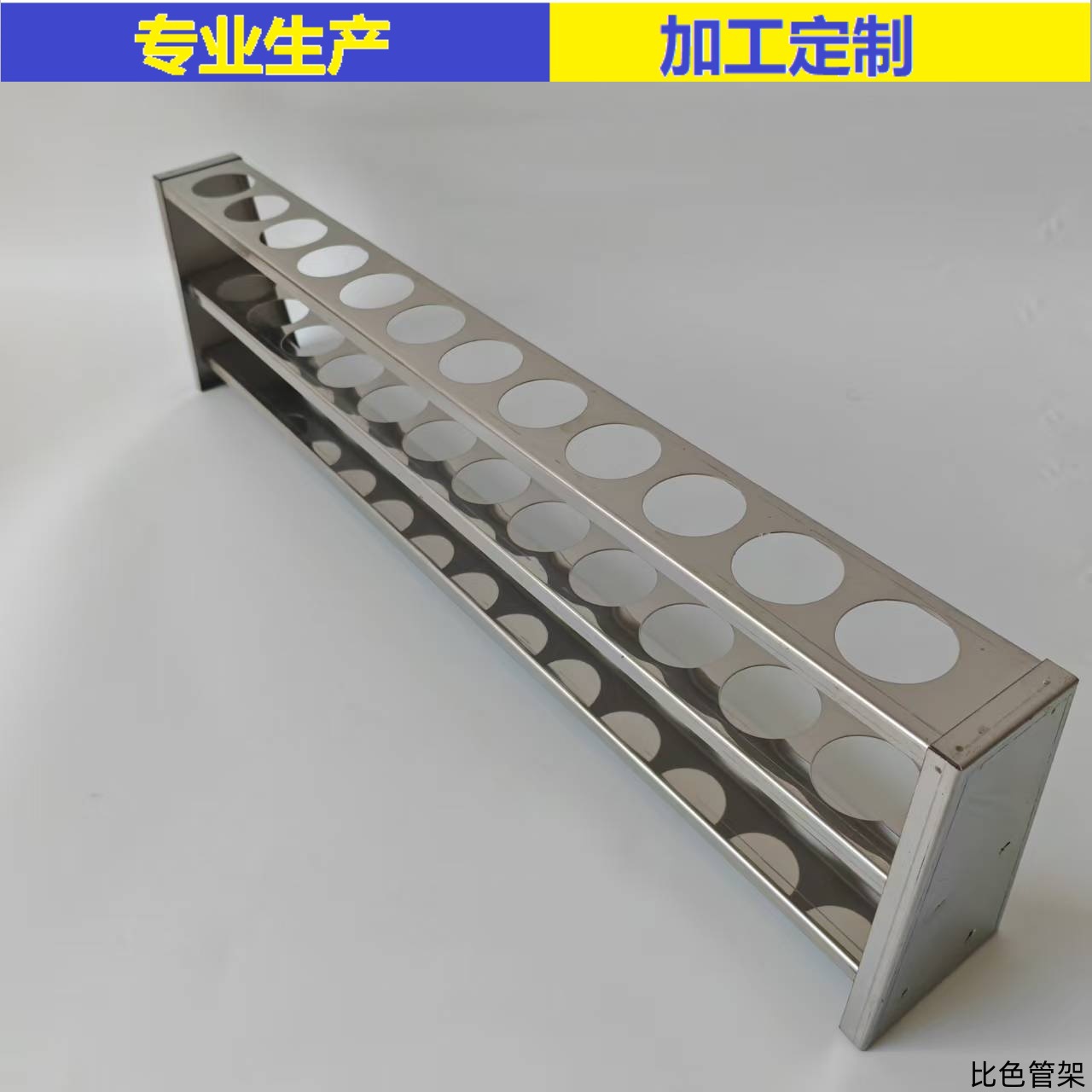 Производитель поставляет стойки для колориметрических пробирок из нержавеющей стали, стойки для центрифужных пробирок, однорядные, на 10, 25, 50, 100 мл.