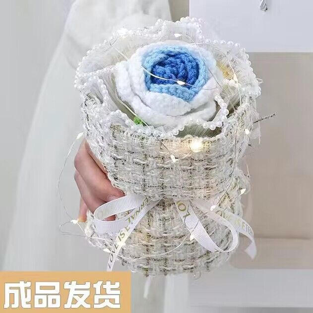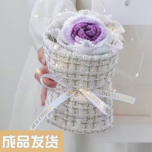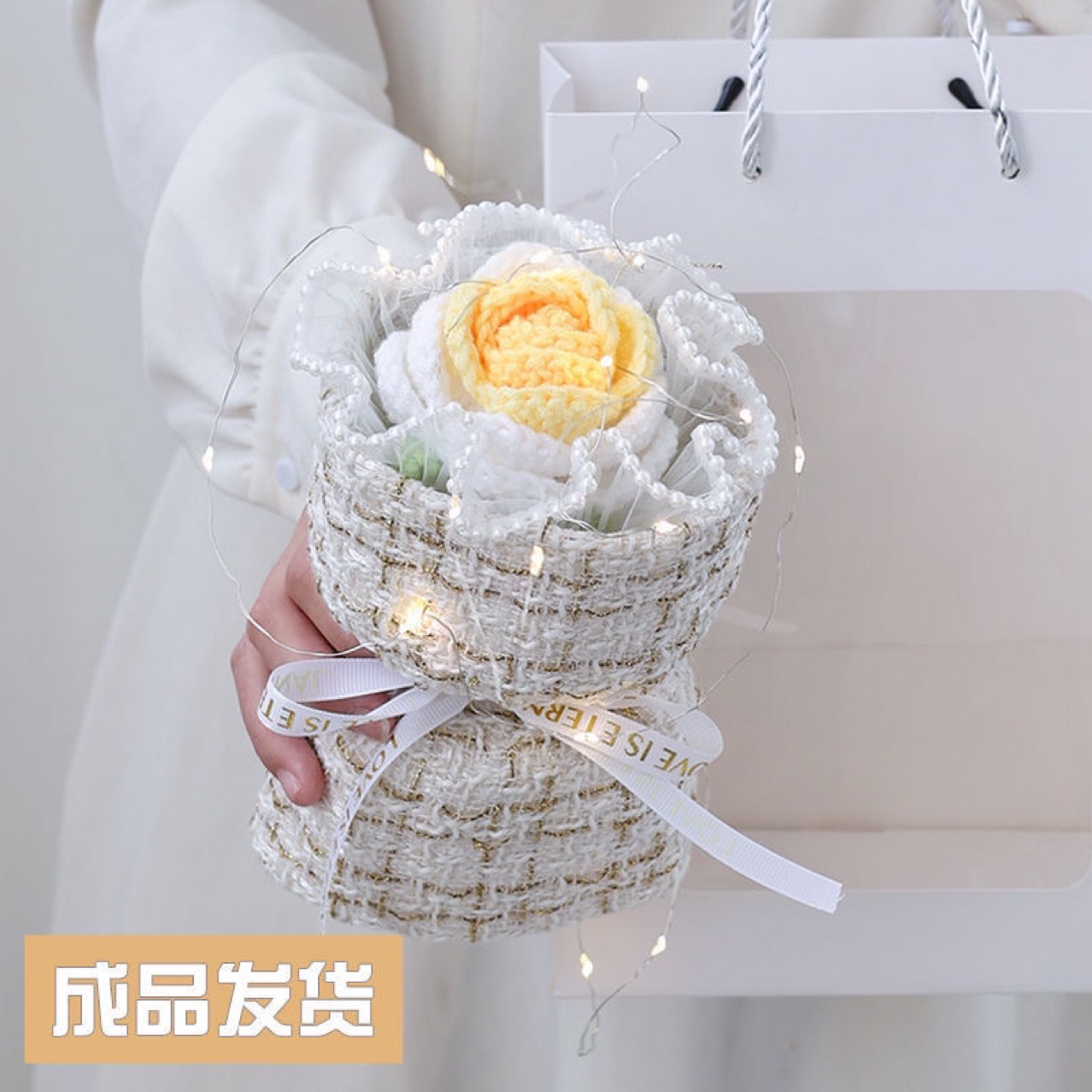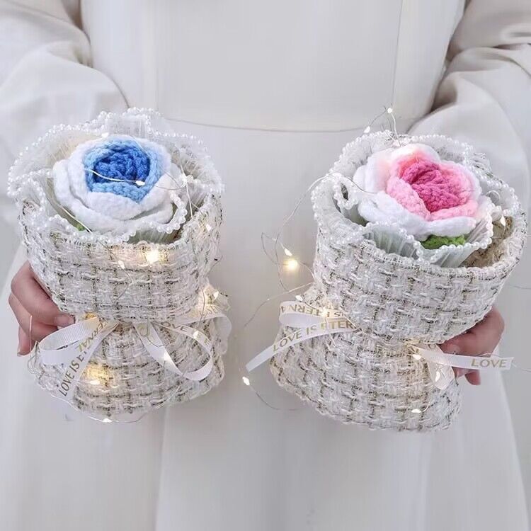 Ручной работы букет из розовой шерсти готовый вязаный крючком День Святого Валентина подруге подарок на день рождения подарок на День учителя