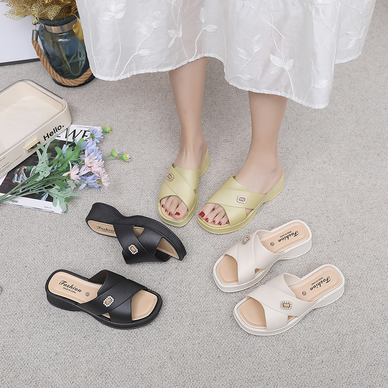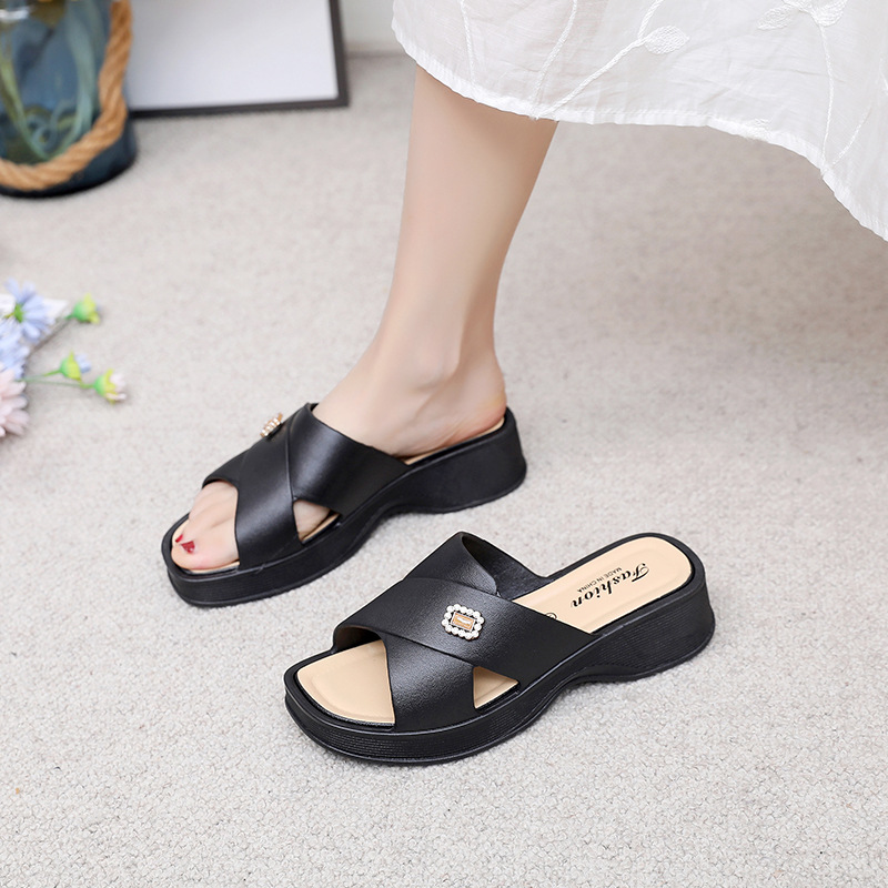 Женские дышащие тапочки на танкетке с пластиковым надувным дном, повседневные модные сандалии с мягкой подошвой, женские Тапочки